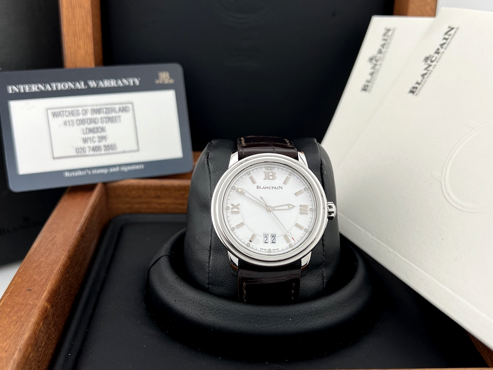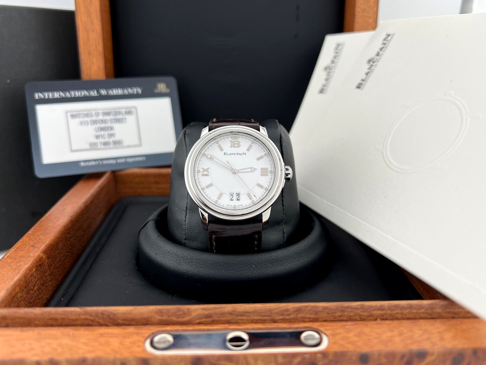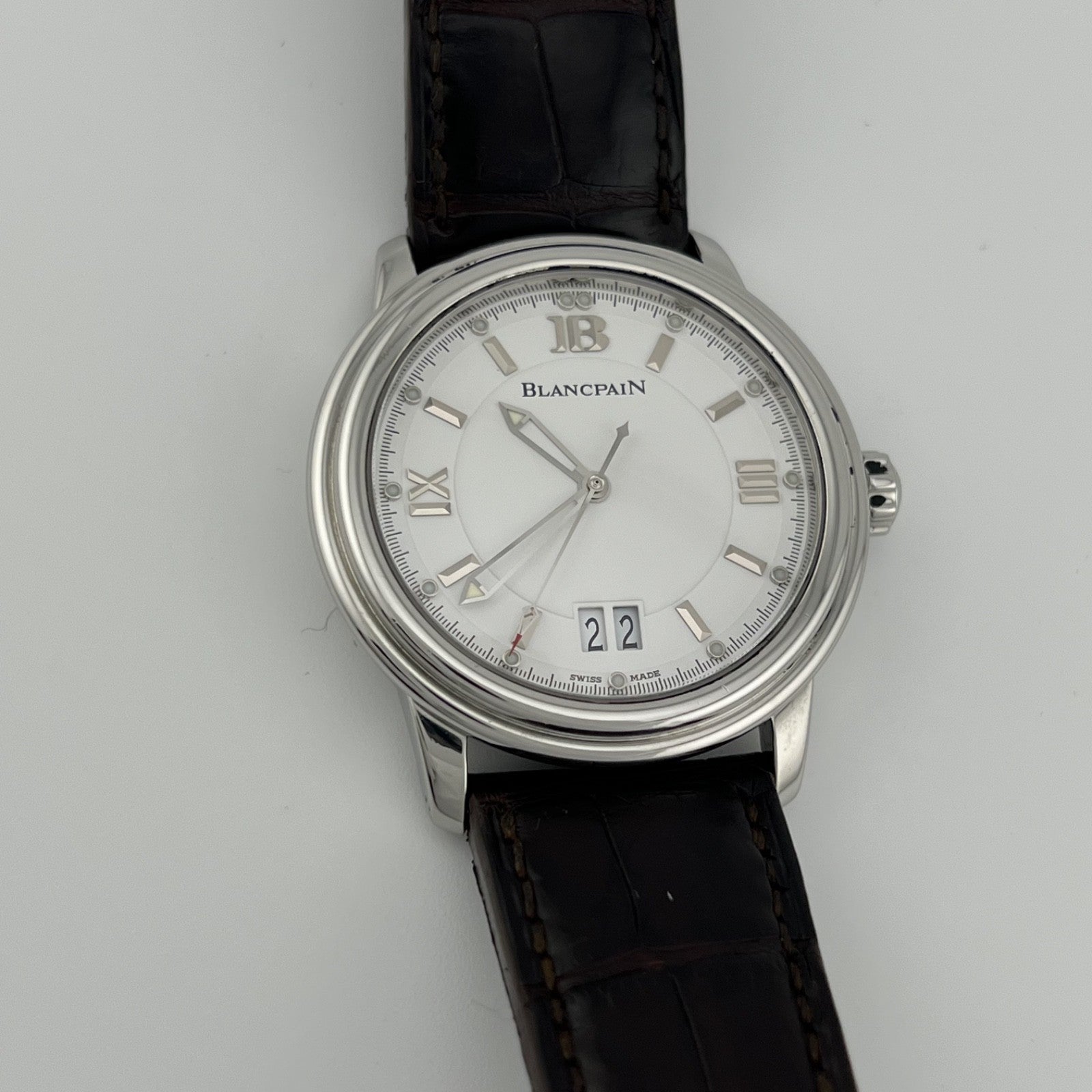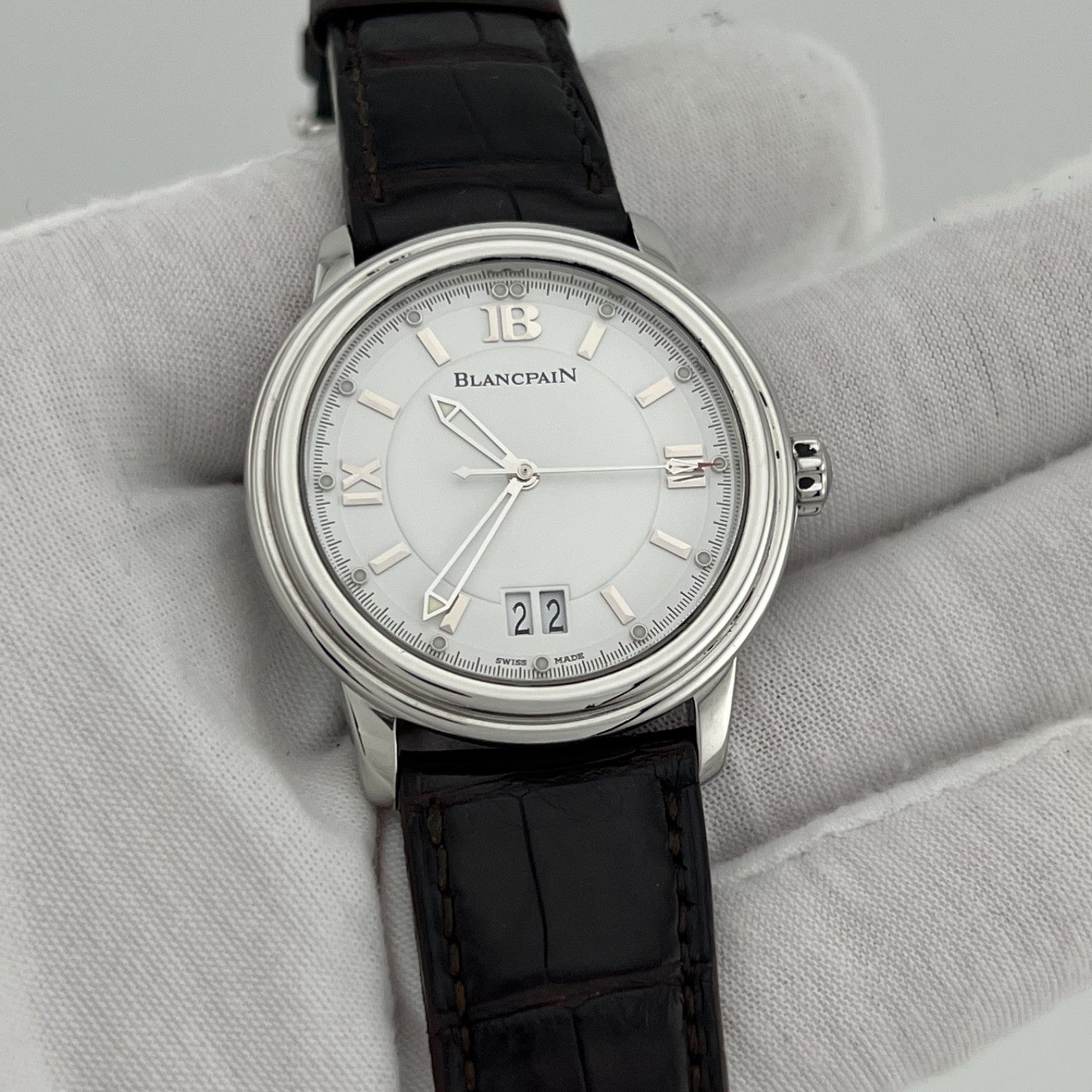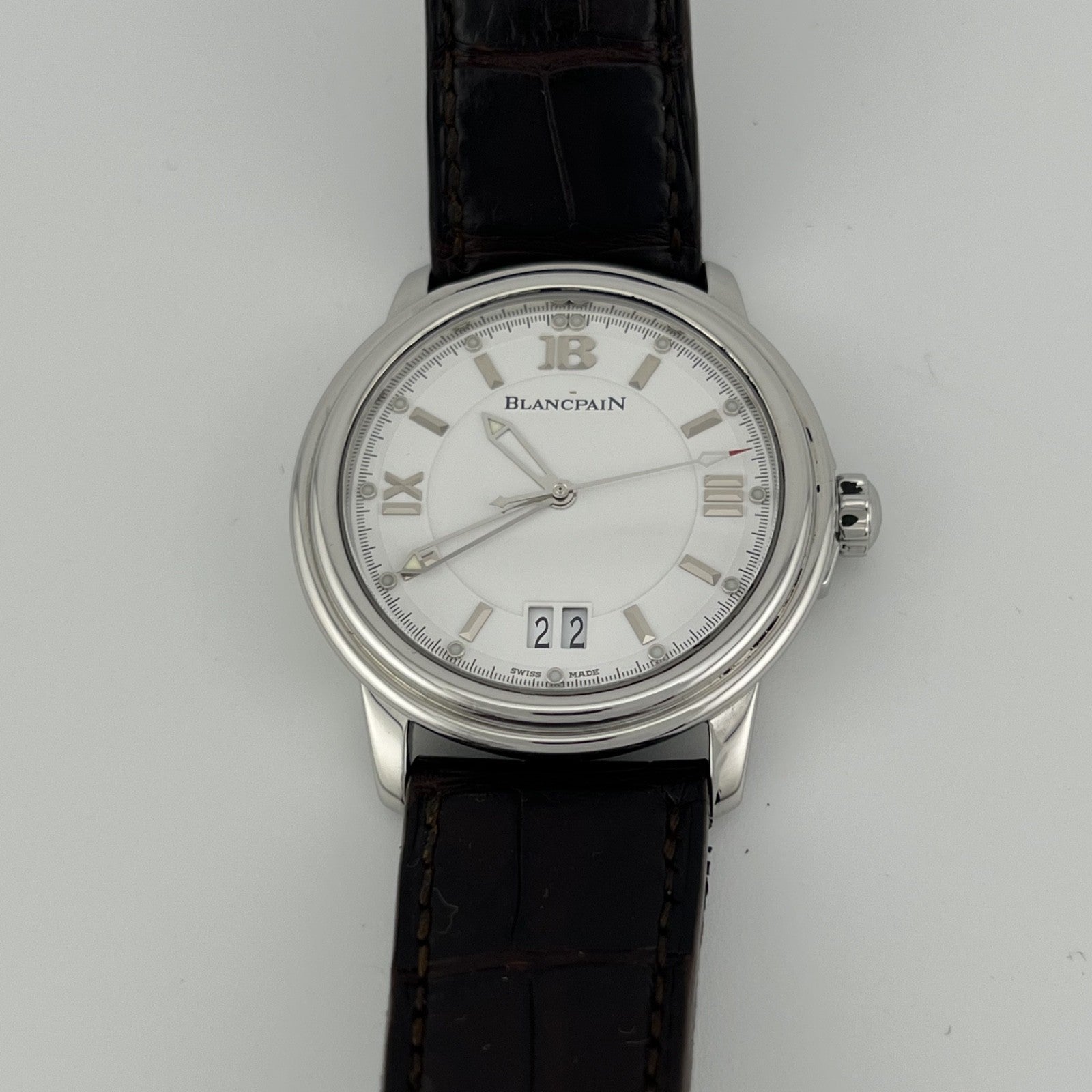 Blancpain Léman Ultra Slim Big Date 2150-1127-53 38mm Stainless Steel Box Papers Blancpain Sale! from 629500 /per This item is a recurring or deferred purchase. By continuing, I agree to the cancellation policy and authorize you to charge my payment method at the prices, frequency and dates listed on this page until my order is fulfilled or I cancel, if permitted. +1 (619) 232-1273 This item is currently on backorder but you can still purchase it now and we'll ship as soon as more become available. Style Number: 2150-1127-53Serial: No1** Model: Blancpain Leman Ultra Slim Big Date Case Material: Stainless Steel Band: Leather Bezel: Stainless Steel Dial: White Crystal: Sapphire Case Size: 38mm Includes: - Blancpain Box & Papers- Certified Appraisal - 1 Year WarrantySKU 22394 / 17470TSTADEN041725