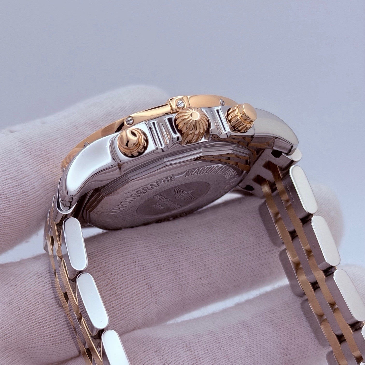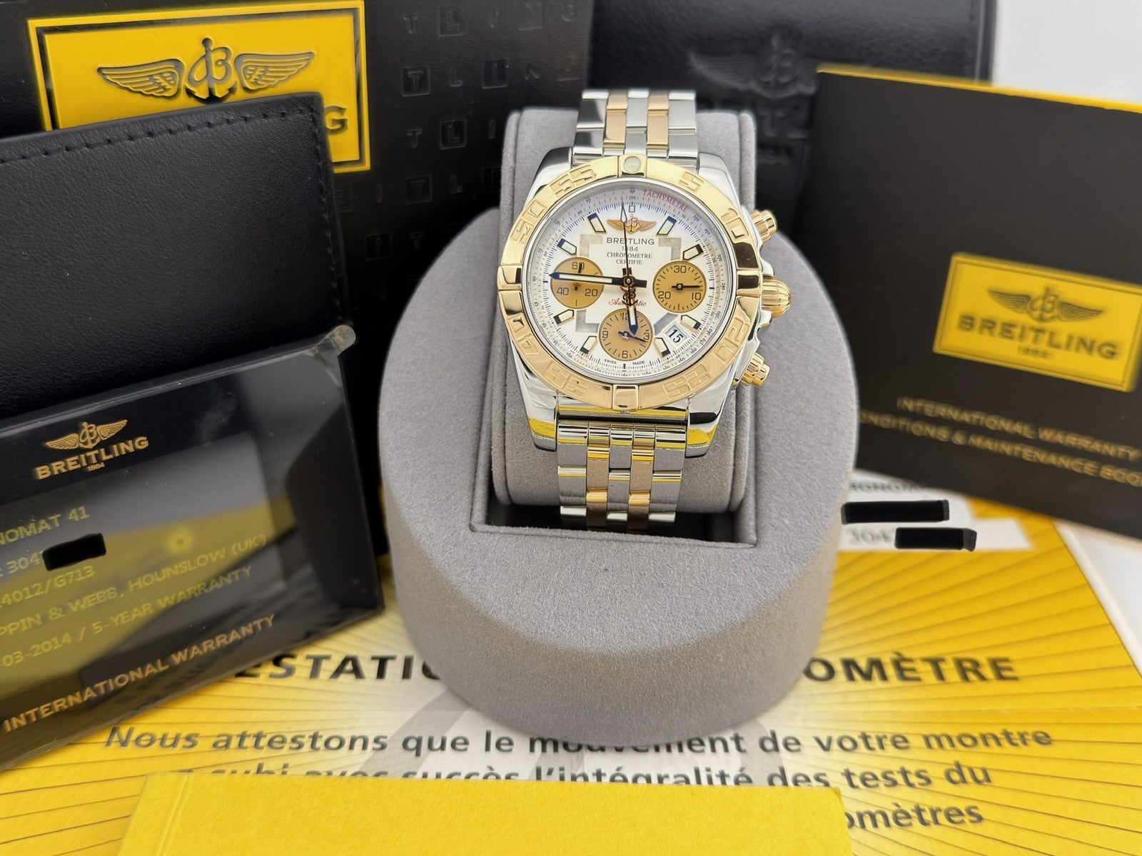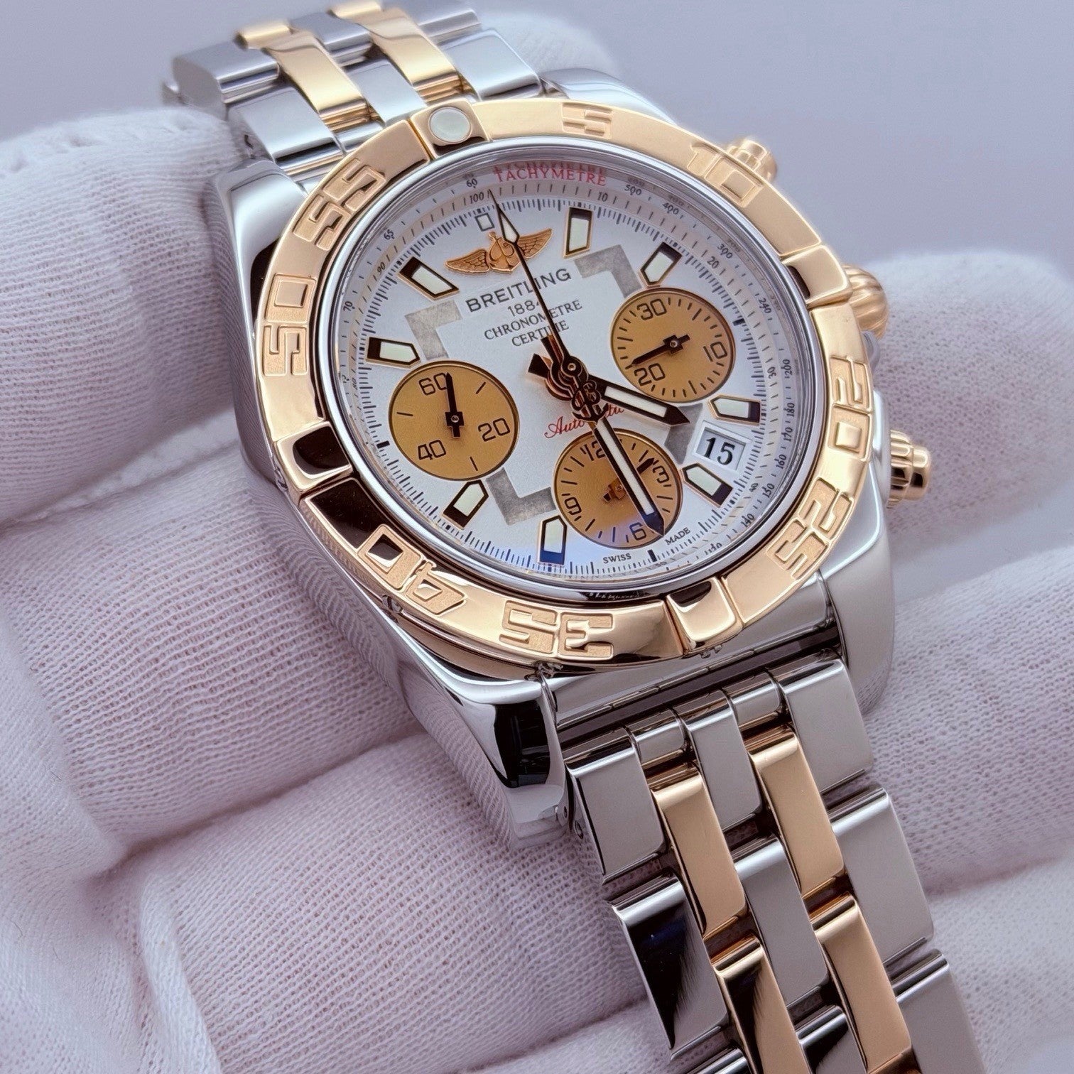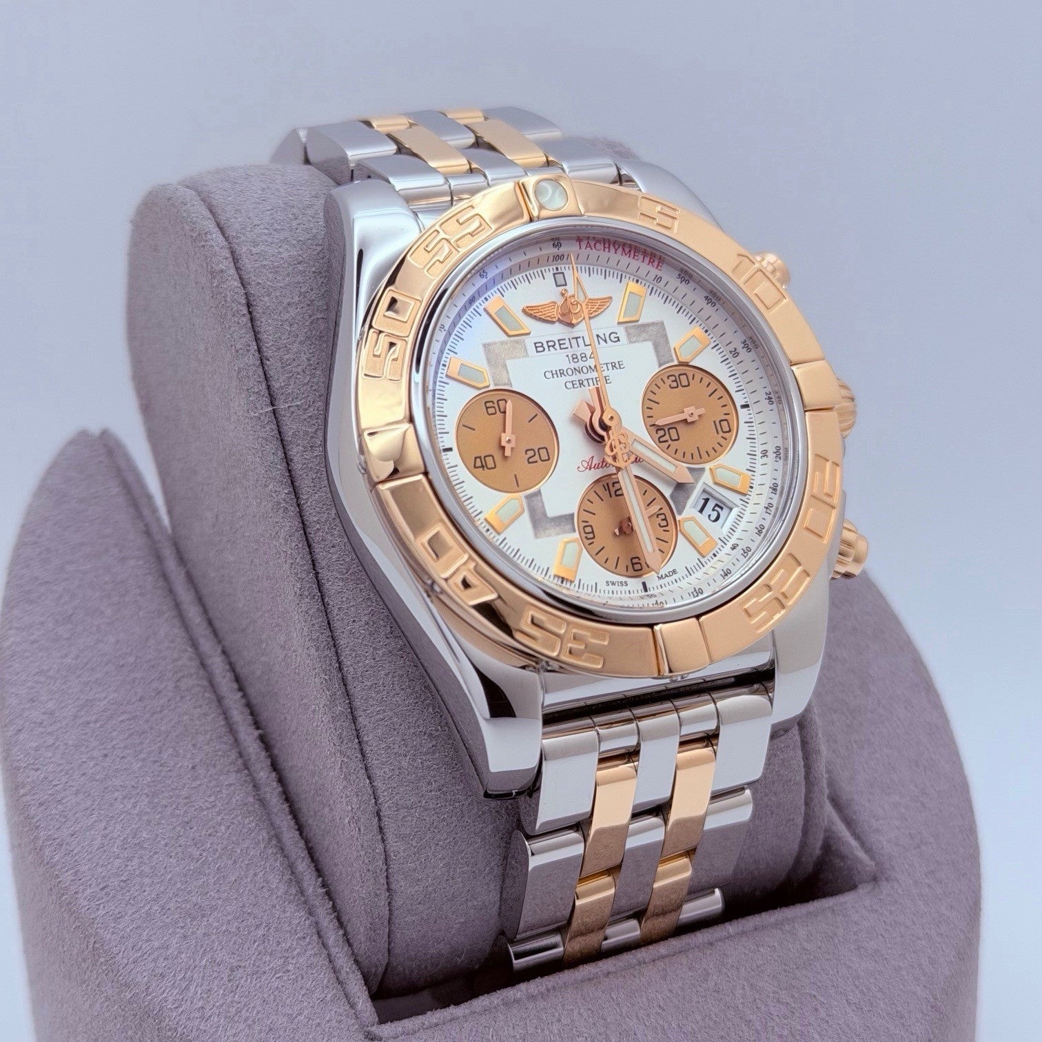 Breitling Chronomat 41 CB014012 Silver Dial 18K Rose Gold Steel Box Papers