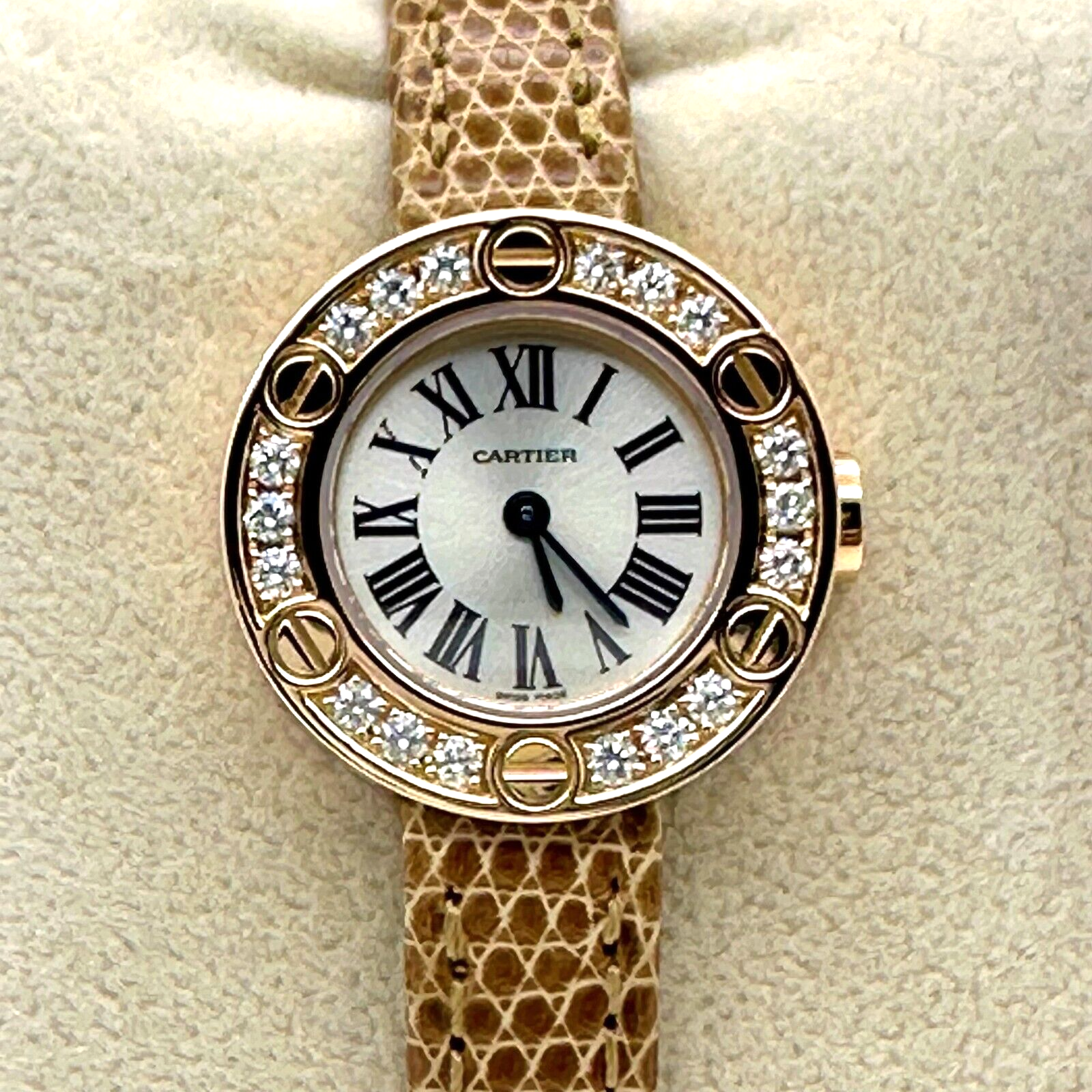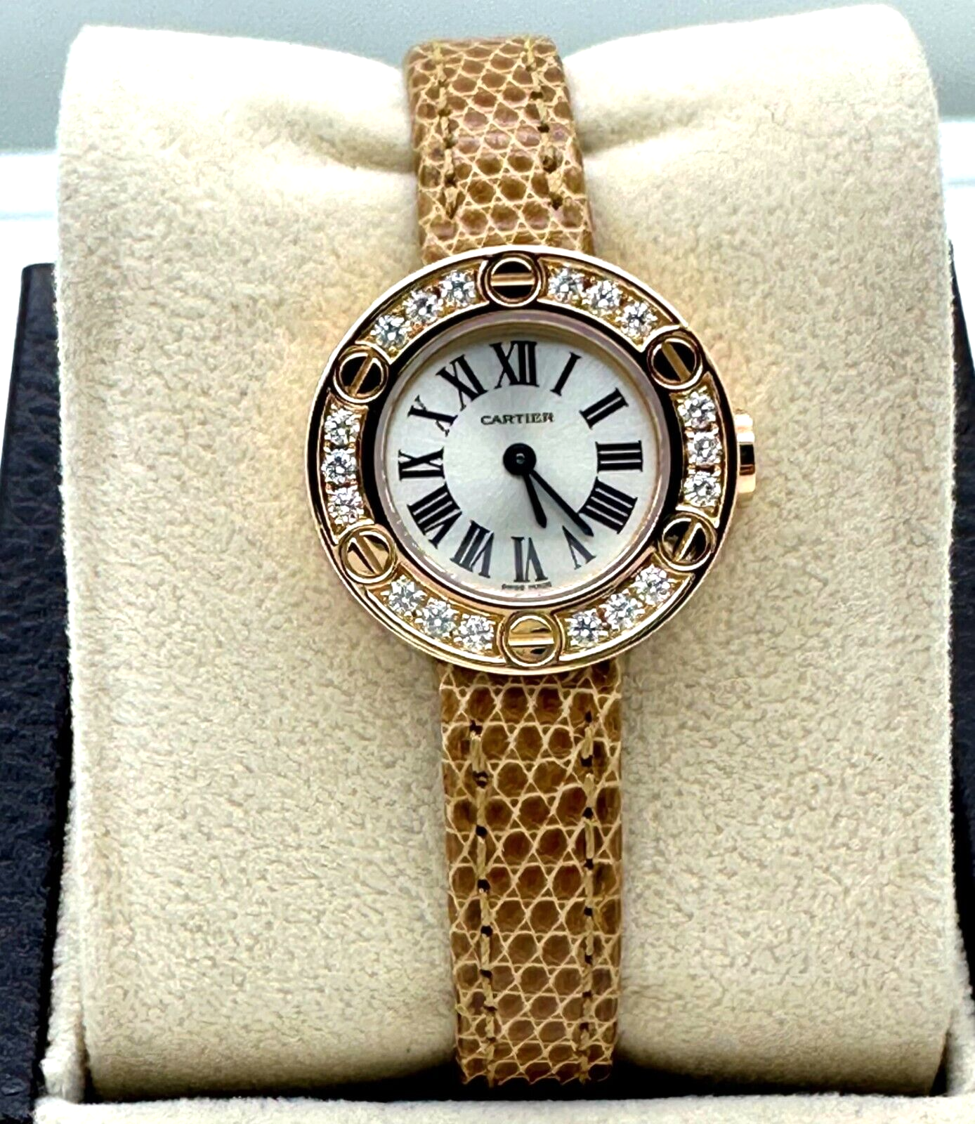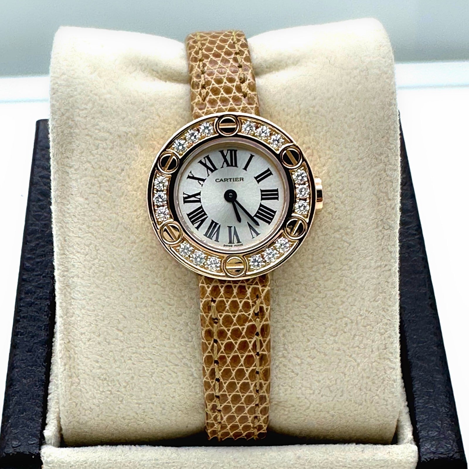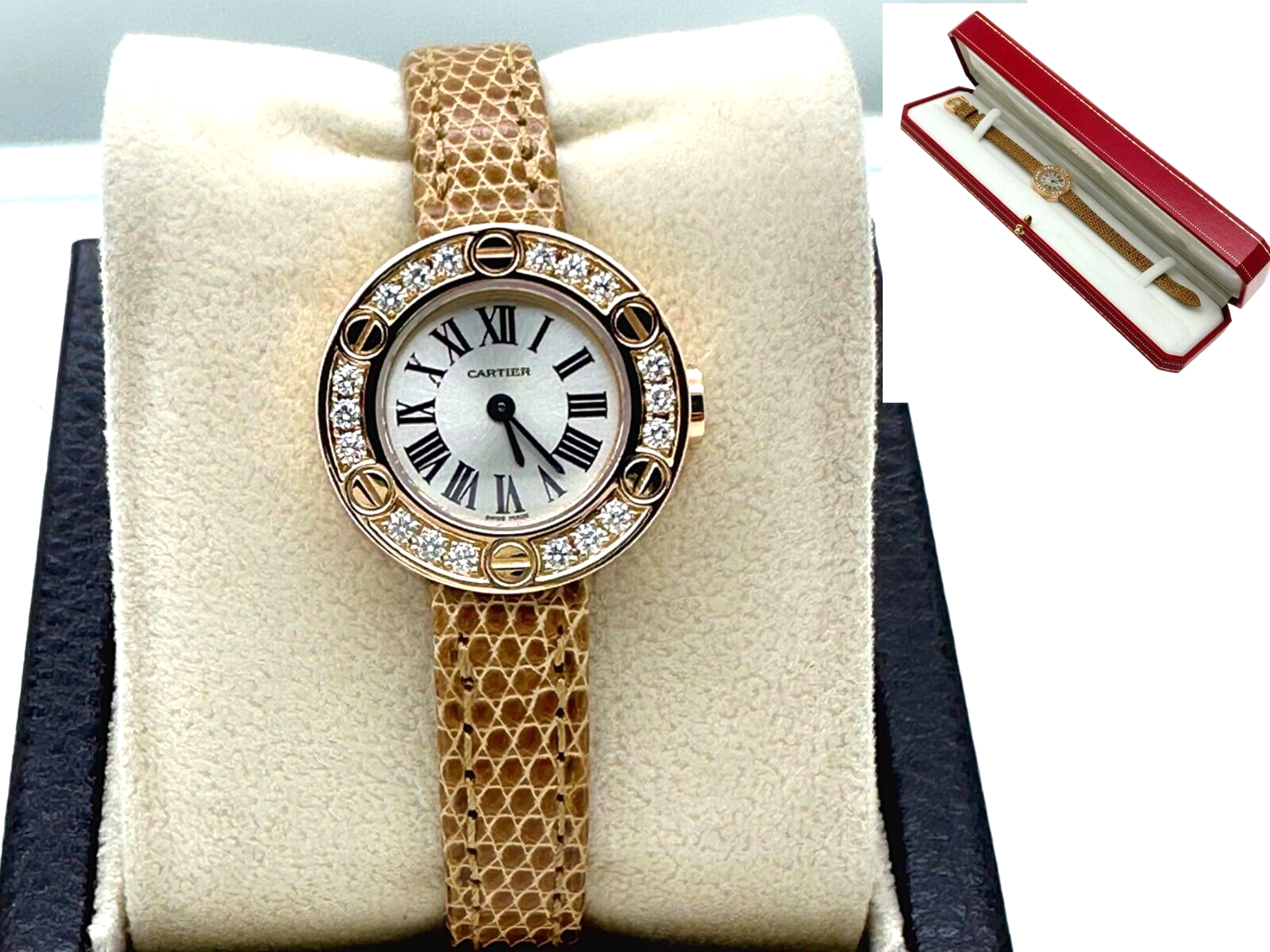 Cartier Love Ref 2977 Ladies Diamond Bezel 18K Rose Gold Leather Strap Box Cartier Sale! from 499500 /per This item is a recurring or deferred purchase. By continuing, I agree to the cancellation policy and authorize you to charge my payment method at the prices, frequency and dates listed on this page until my order is fulfilled or I cancel, if permitted. +1 (619) 232-1273 This item is currently on backorder but you can still purchase it now and we'll ship as soon as more become available. Style Number: 2977 Model: Cartier Love Case Material: 18K Rose Gold Band: Leather Bezel: 18K Rose Gold Diamond Bezel Dial: Silver Face: Sapphire Crystal Case Size: 18K Rose Gold Includes: -Cartier Box-Certified Appraisal -1 Year WarrantySKU 20542 / 17350TSD092623