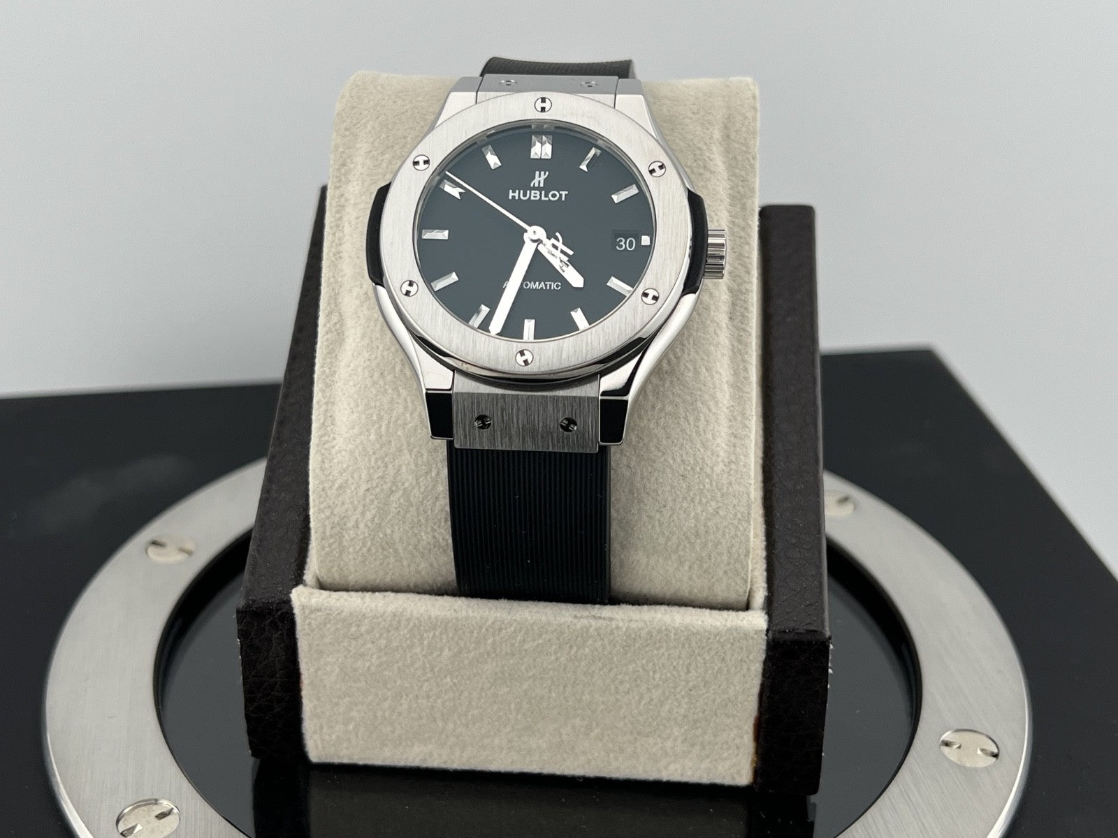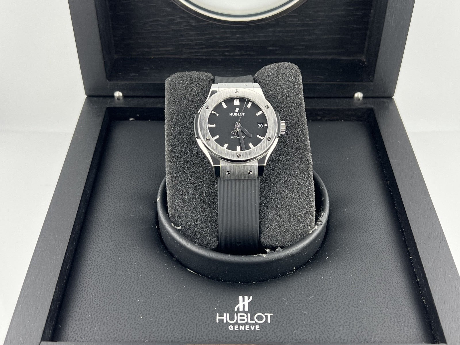 Hublot Classic Fusion Automatic 565.NX.1470.RX 38mm Titanium Box Hublot Sale! from 619500 /per This item is a recurring or deferred purchase. By continuing, I agree to the cancellation policy and authorize you to charge my payment method at the prices, frequency and dates listed on this page until my order is fulfilled or I cancel, if permitted. +1 (619) 232-1273 This item is currently on backorder but you can still purchase it now and we'll ship as soon as more become available. Style Number: 565.NX.1470.RXSerial: 150****Year: 2023-Present Model: Hublot Classic Fusion Titanium Case Material: Titanium Band: Rubber Bezel: Titanium Dial: Black Crystal: Sapphire Case Size: 38mm Includes: - Hublot Box- Certified Appraisal - 1 Year WarrantySKU 20866 / 14542TCF011224