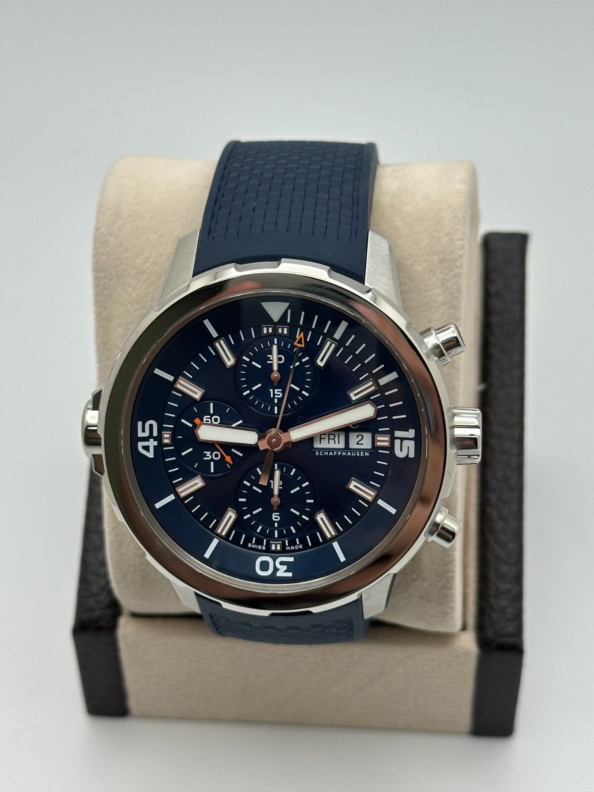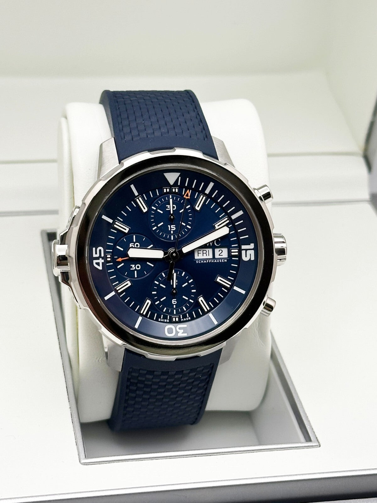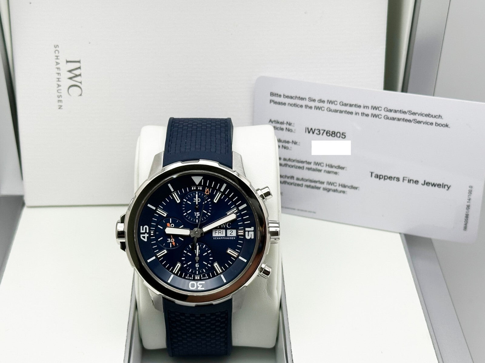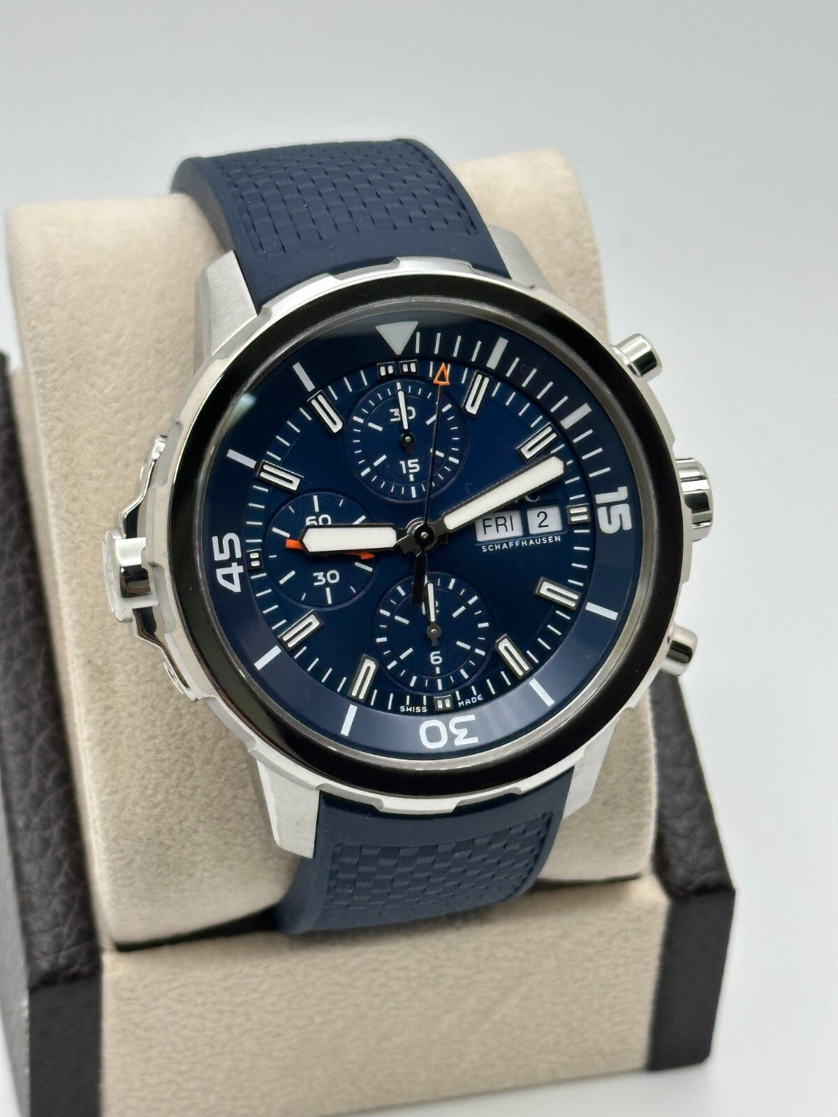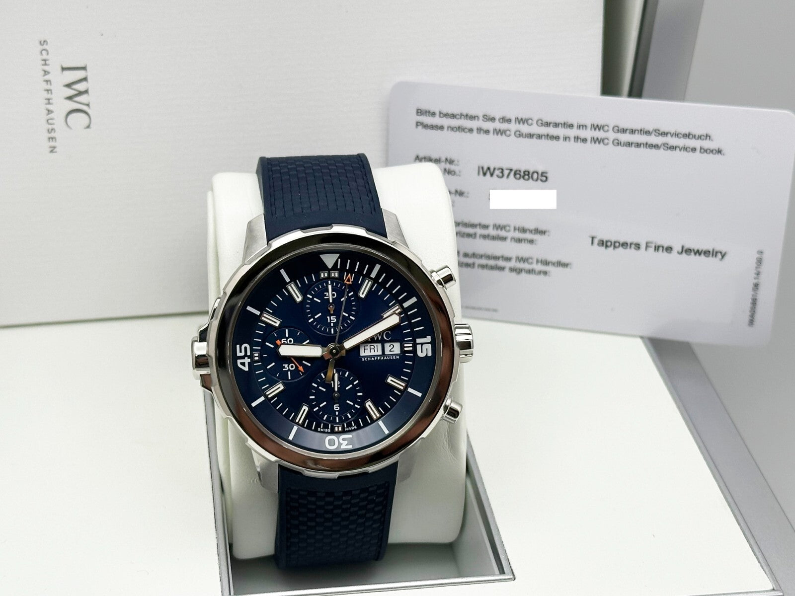 IWC Aquatimer Chronograph IW376805 44mm Stainless Steel Rubber Strap Box Paper IWC Sale! from 489500 /per This item is a recurring or deferred purchase. By continuing, I agree to the cancellation policy and authorize you to charge my payment method at the prices, frequency and dates listed on this page until my order is fulfilled or I cancel, if permitted. +1 (619) 232-1273 This item is currently on backorder but you can still purchase it now and we'll ship as soon as more become available. Style Number: IW376805 Model: IWC Aquatimer Chronograph Year: 2014 - 2021 Case Material: Stainless Steel Band: Rubber Bezel: Stainless Steel Dial: Blue Face: Sapphire Crystal Case Size: 44mm Includes: -IWC Box & Paper-Certified Appraisal -1 Year WarrantySKU 21566 / 15820TSH073124