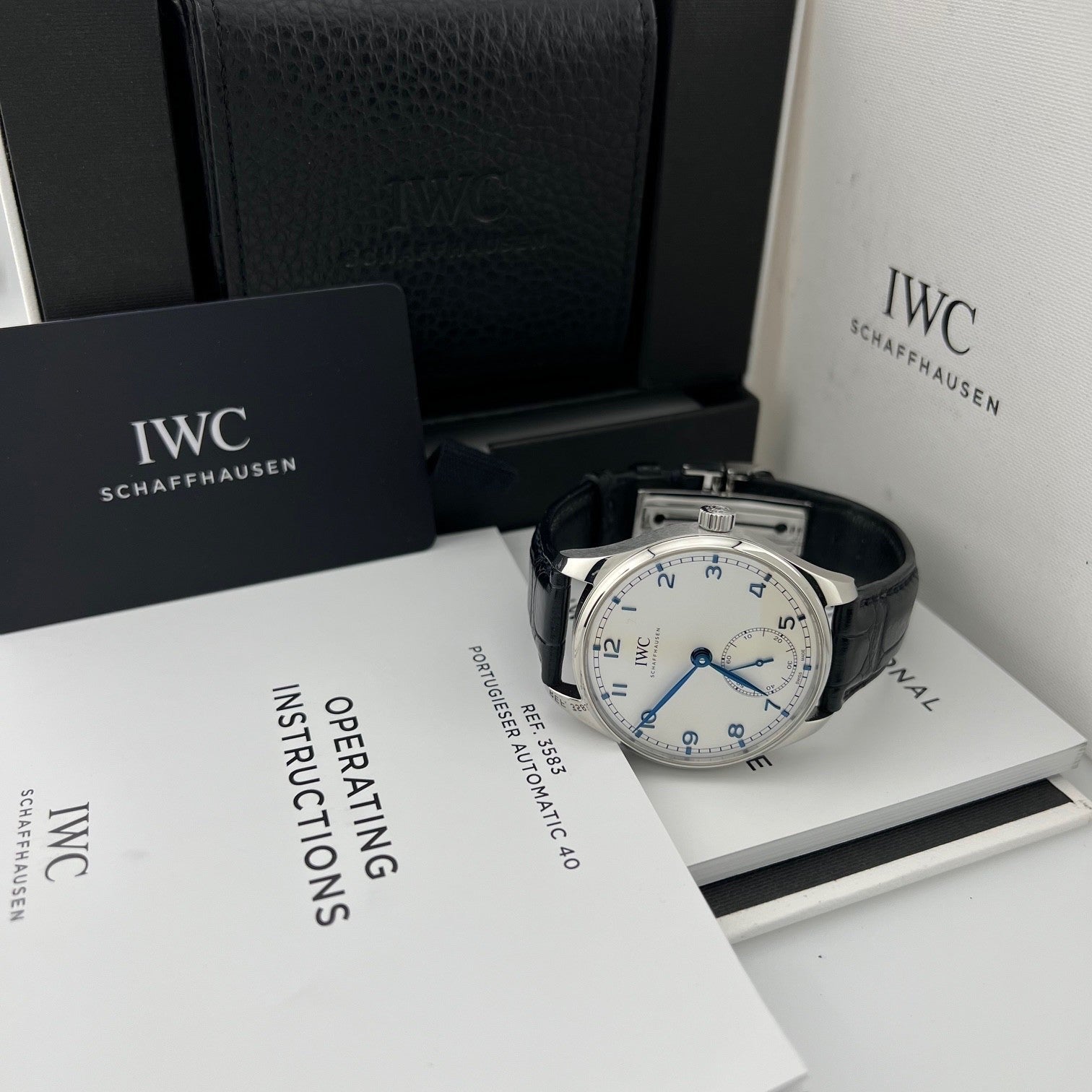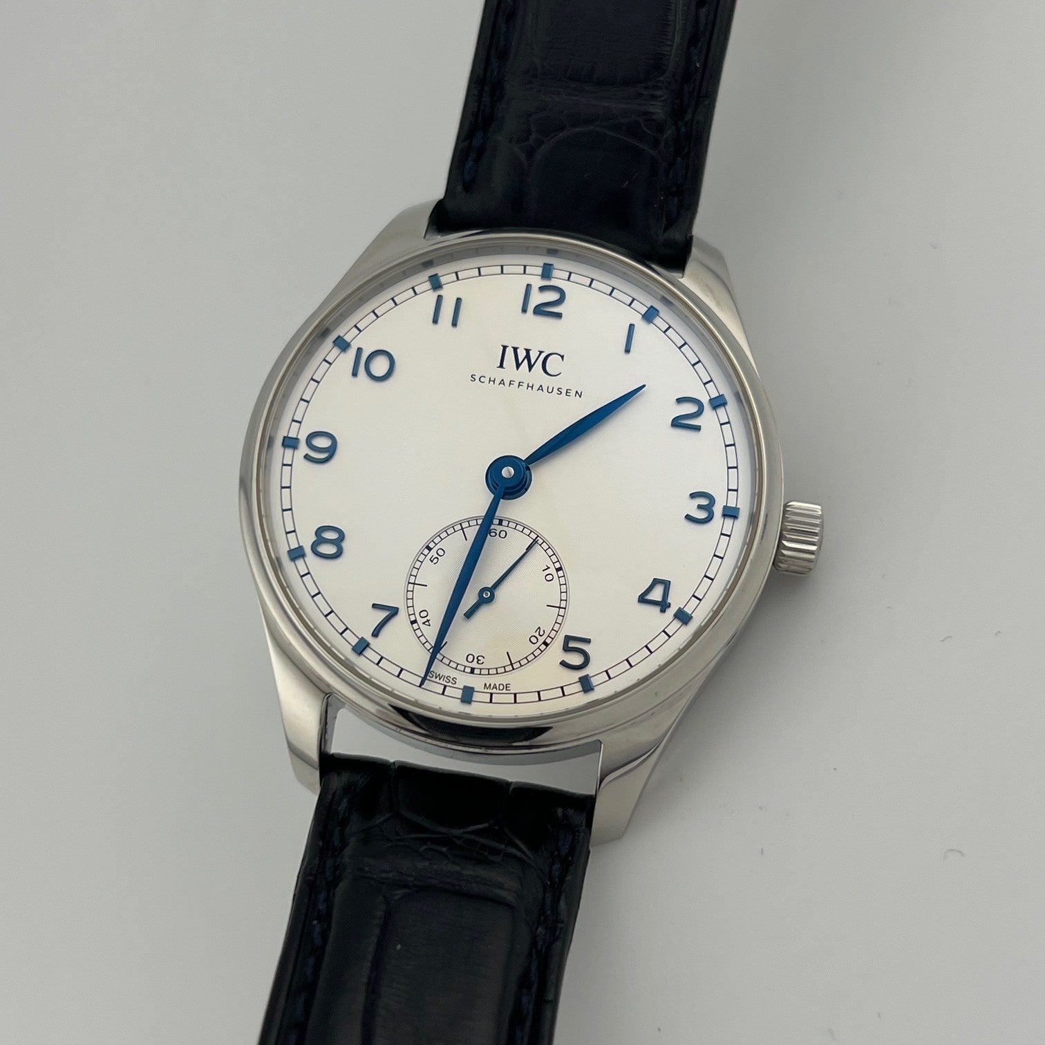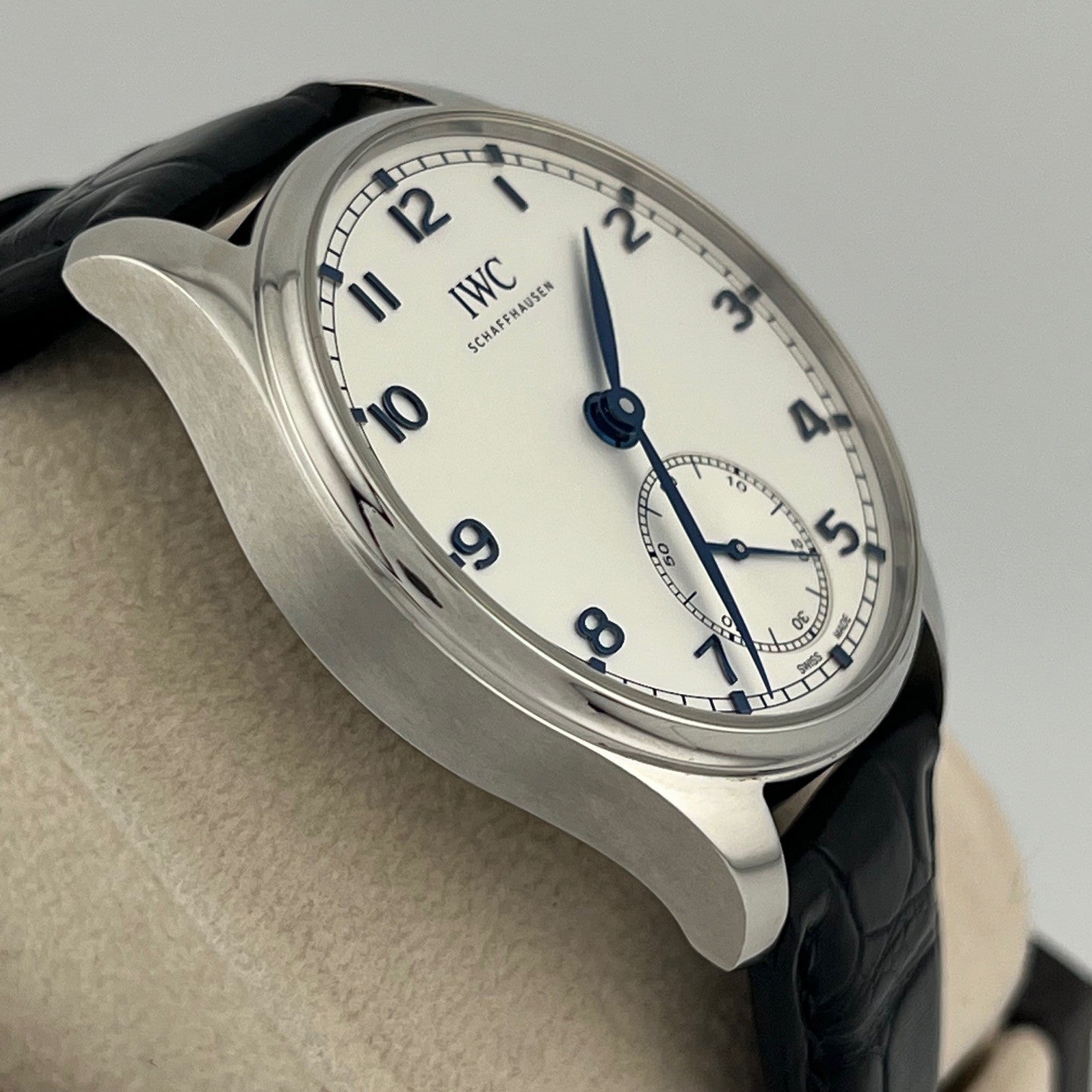IWC Portugieser Automatic 40.4 IW358304 40.4mm White Dial Box Papers IWC Sale! from 599500 /per This item is a recurring or deferred purchase. By continuing, I agree to the cancellation policy and authorize you to charge my payment method at the prices, frequency and dates listed on this page until my order is fulfilled or I cancel, if permitted. +1 (619) 232-1273 This item is currently on backorder but you can still purchase it now and we'll ship as soon as more become available. Style Number: IW358304Serial: 587****Year: 2021 Model: IWC Portugieser Automatic 40.4 Case Material: Stainless Steel Band: Black Leather Bezel: Stainless Steel Dial: White Case Size: 40.4mm Includes: -IWC Box & Papers -Certified Appraisal -1 Year WarrantySKU 20748 / 17470TSH120923