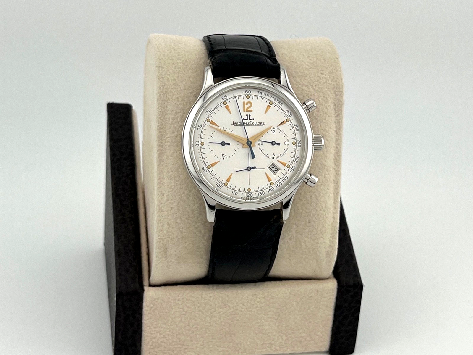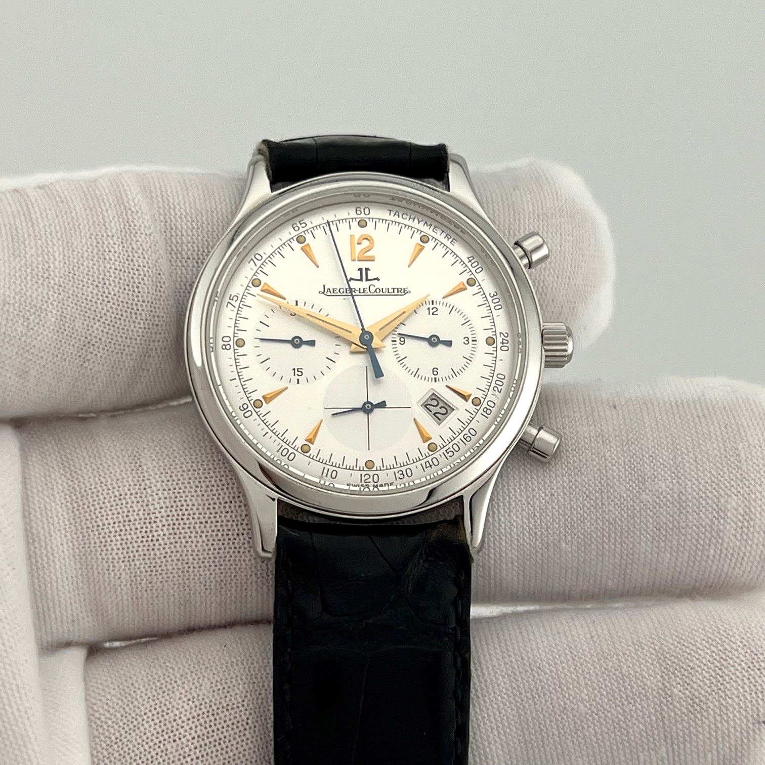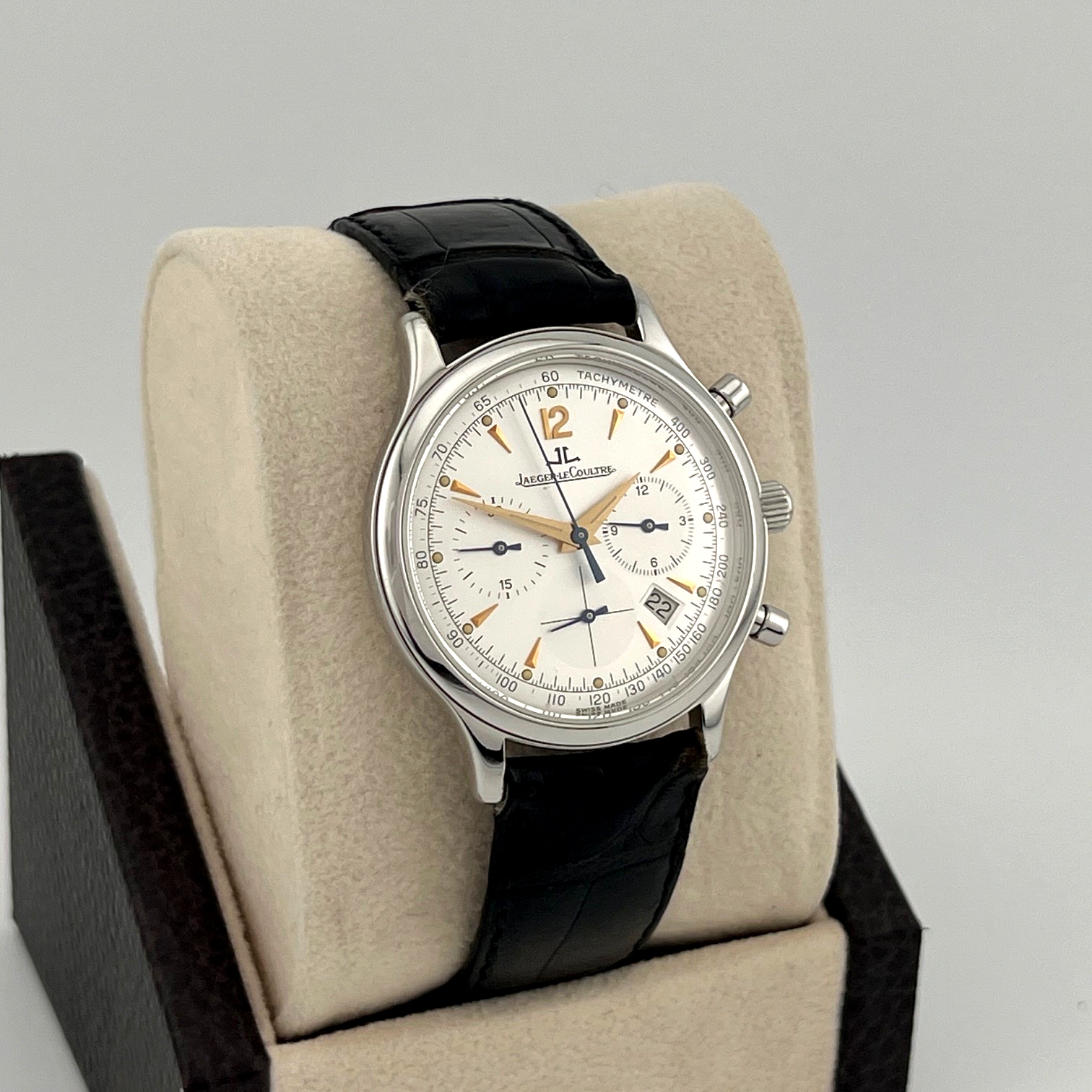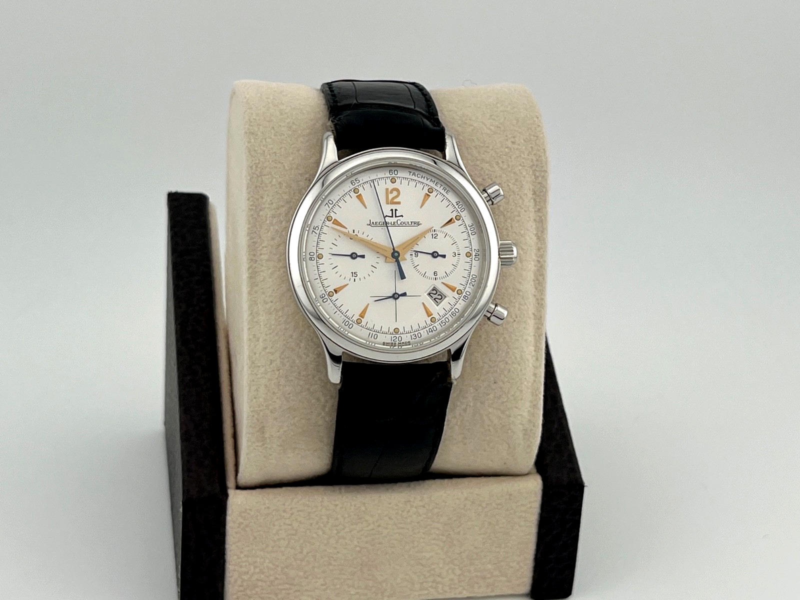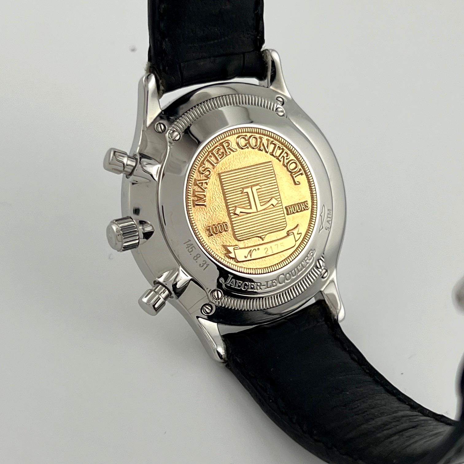 Jaeger LeCoultre Master Control Chronograph 145.8.31 34mm Silver Dial Steel Jaeger-LeCoultre Sale! from 329500 /per This item is a recurring or deferred purchase. By continuing, I agree to the cancellation policy and authorize you to charge my payment method at the prices, frequency and dates listed on this page until my order is fulfilled or I cancel, if permitted. +1 (619) 232-1273 This item is currently on backorder but you can still purchase it now and we'll ship as soon as more become available. Style Number: 145.8.31 Model: Jaeger LeCoultre Master Control Chronograph Case Material: Stainless Steel Band: Leather Bezel: Stainless Steel Dial: Silver Crystal: Sapphire Case Size: 34mm Includes: - Elegant Watch Box - Certified Appraisal - 1 Year WarrantySKU 19647 / 12130TBB112322