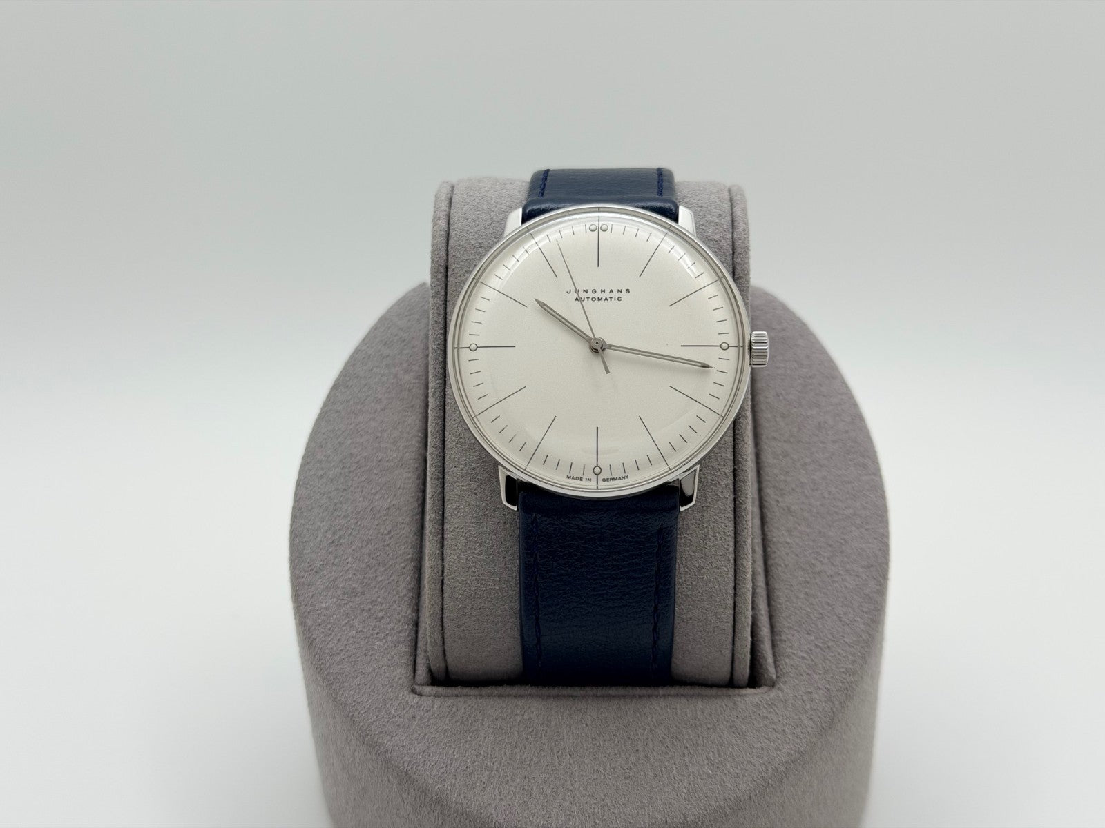 Junghans Max Bill Automatic 27/3501.02 38mm White Dial Steel Blue Leather Strap Junghans Sale! from 119500 /per This item is a recurring or deferred purchase. By continuing, I agree to the cancellation policy and authorize you to charge my payment method at the prices, frequency and dates listed on this page until my order is fulfilled or I cancel, if permitted. +1 (619) 232-1273 This item is currently on backorder but you can still purchase it now and we'll ship as soon as more become available. Style Number: 27/3501.02 Model: Junghans Max Bill Case Material: Stainless Steel Band: Blue Leather Bezel: Stainless Steel Dial: White Crystal: Sapphire Case Size: 38mm Includes: - Elegant Watch Box- Certified Appraisal - 1 Year WarrantySKU 23128 / 1675TOC093025