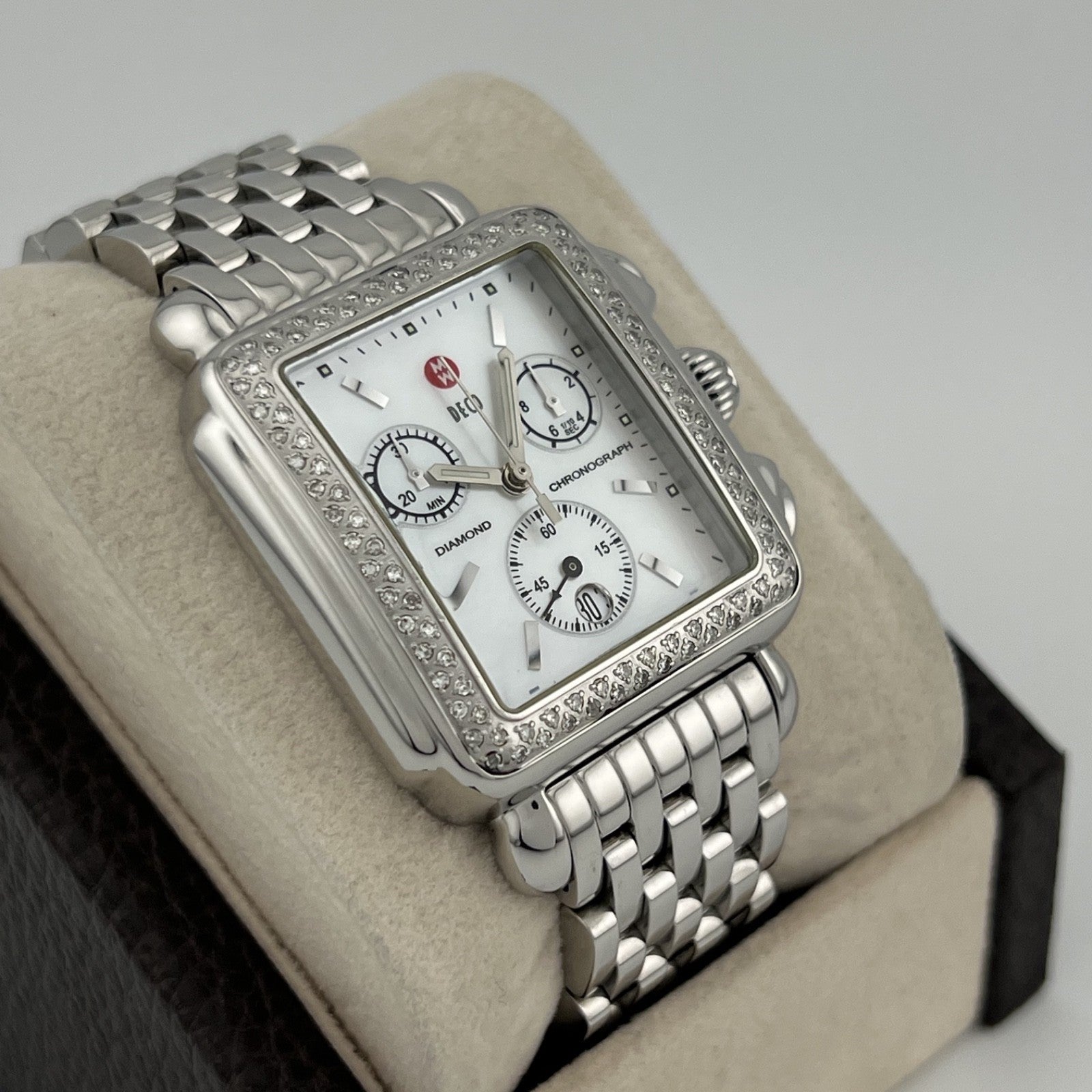 Michele Deco Women's Watch 716000 33mm Diamond Bezel Mother Of Pearl Dial Steel MICHELE Sale! from 69500 /per This item is a recurring or deferred purchase. By continuing, I agree to the cancellation policy and authorize you to charge my payment method at the prices, frequency and dates listed on this page until my order is fulfilled or I cancel, if permitted. +1 (619) 232-1273 This item is currently on backorder but you can still purchase it now and we'll ship as soon as more become available. Style Number: 71-6000 Model: Michele Deco Women's Watch Case Material: Stainless Steel Band: Stainless Steel Bezel: Factory Diamond Bezel Dial: Mother of Pearl Crystal: Sapphire Case Size: 33mm Includes: - Elegant Watch Box- Certified Appraisal - 1 Year WarrantySKU 20448 / 1396TKL060623