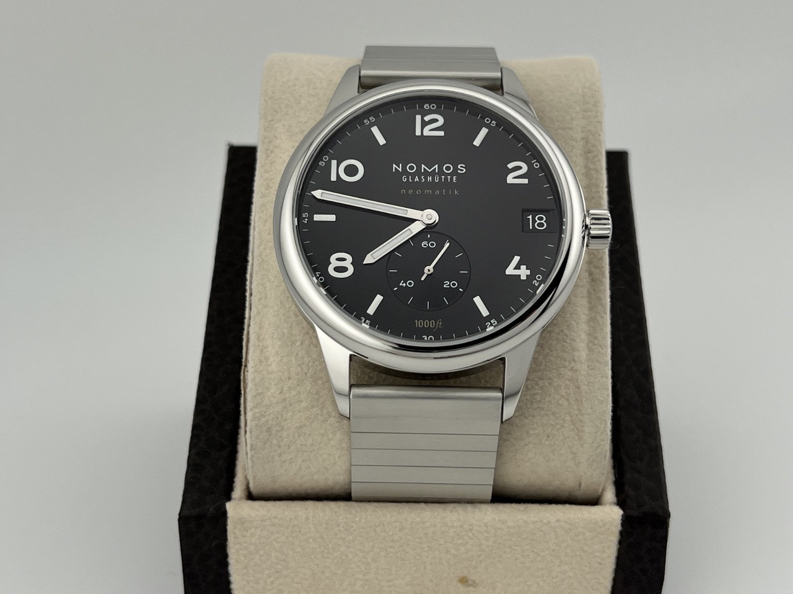 Nomos Glasshütte Club Sport Neomatik Ref. 781 42mm Black Dial Steel Box NOMOS Sale! from 279500 /per This item is a recurring or deferred purchase. By continuing, I agree to the cancellation policy and authorize you to charge my payment method at the prices, frequency and dates listed on this page until my order is fulfilled or I cancel, if permitted. +1 (619) 232-1273 This item is currently on backorder but you can still purchase it now and we'll ship as soon as more become available. Style Number: 781Serial: 77******* Model: Nomos Club Sport Neomatik Case Material: Stainless Steel Band: Stainless Steel Bezel: Stainless Steel Dial: Black Crystal: Sapphire Case Size: 42mm Includes: - NOMOS Box & Booklets- Certified Appraisal - 1 Year WarrantySKU 20410 / 13885TSD071023
