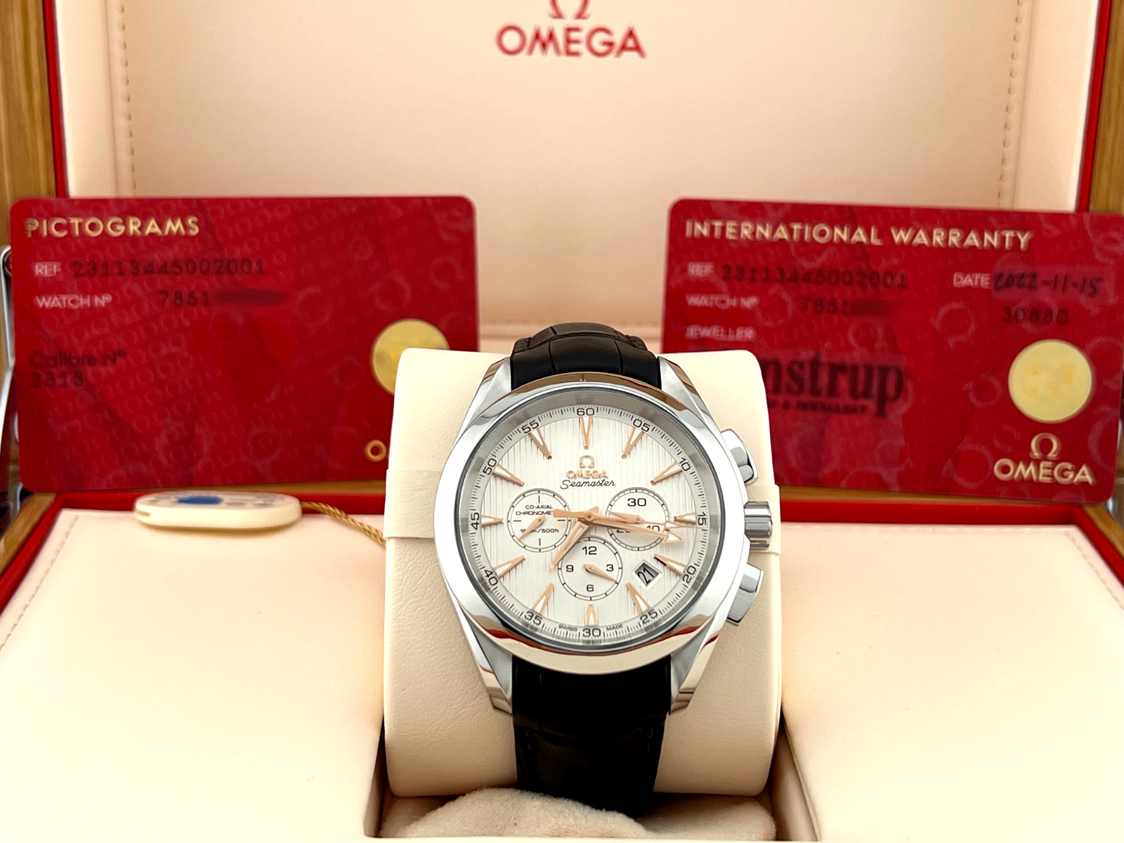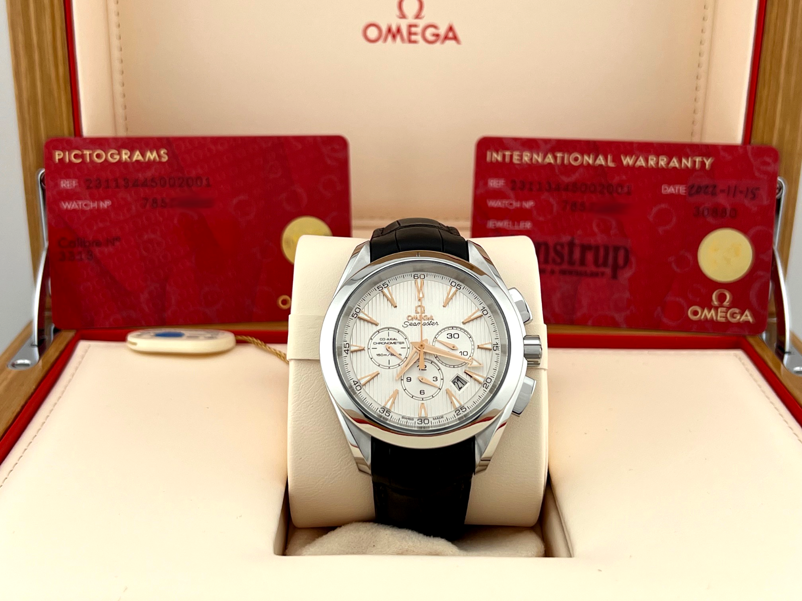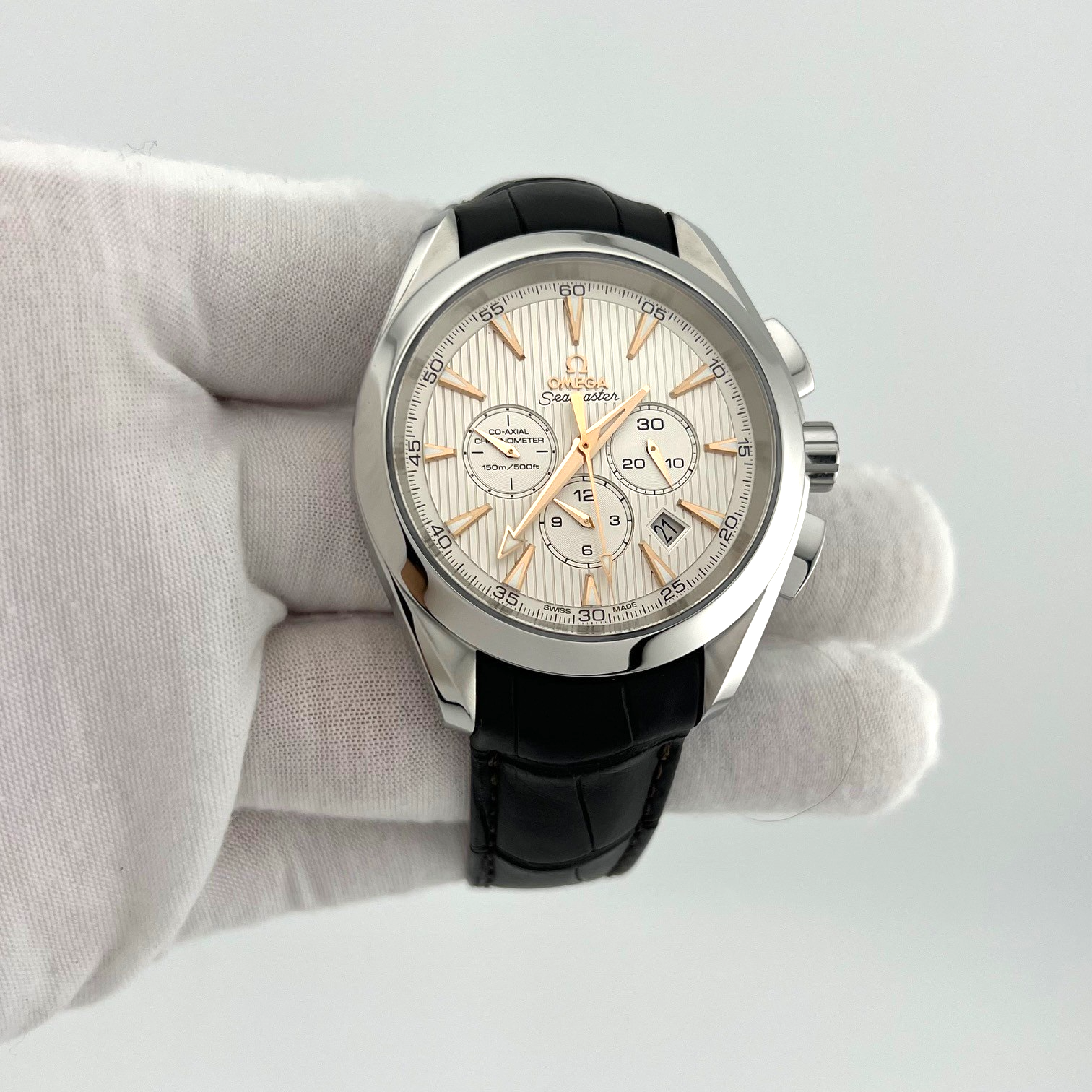 Omega Seamaster Aqua Terra 231.13.44.50.02.001 44mm Stainless Steel Box Papers OMEGA Sale! from 639500 /per This item is a recurring or deferred purchase. By continuing, I agree to the cancellation policy and authorize you to charge my payment method at the prices, frequency and dates listed on this page until my order is fulfilled or I cancel, if permitted. +1 (619) 232-1273 This item is currently on backorder but you can still purchase it now and we'll ship as soon as more become available. Style Number: 231.13.44.50.02.001Serial: 7851****Year: 2022 Model: OMEGA Seamaster Aqua Terra Chronograph Case Material: Stainless Steel Band: Leather Bezel: Stainless Steel Dial: Silver Crystal: Sapphire Case Size: 44mm Includes: -Omega Box & Papers-Certified Appraisal -5 Year Factory Warranty from Original Purchase DateSKU 22114 / 111130TBJ011325