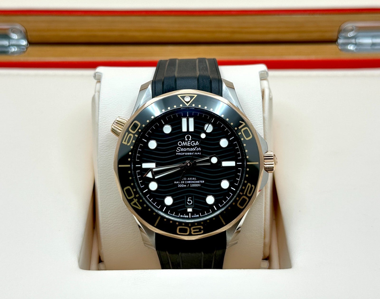 Omega Seamaster Diver 300M 210.22.42.20.01.002 18K Sedna Gold Steel Box Paper