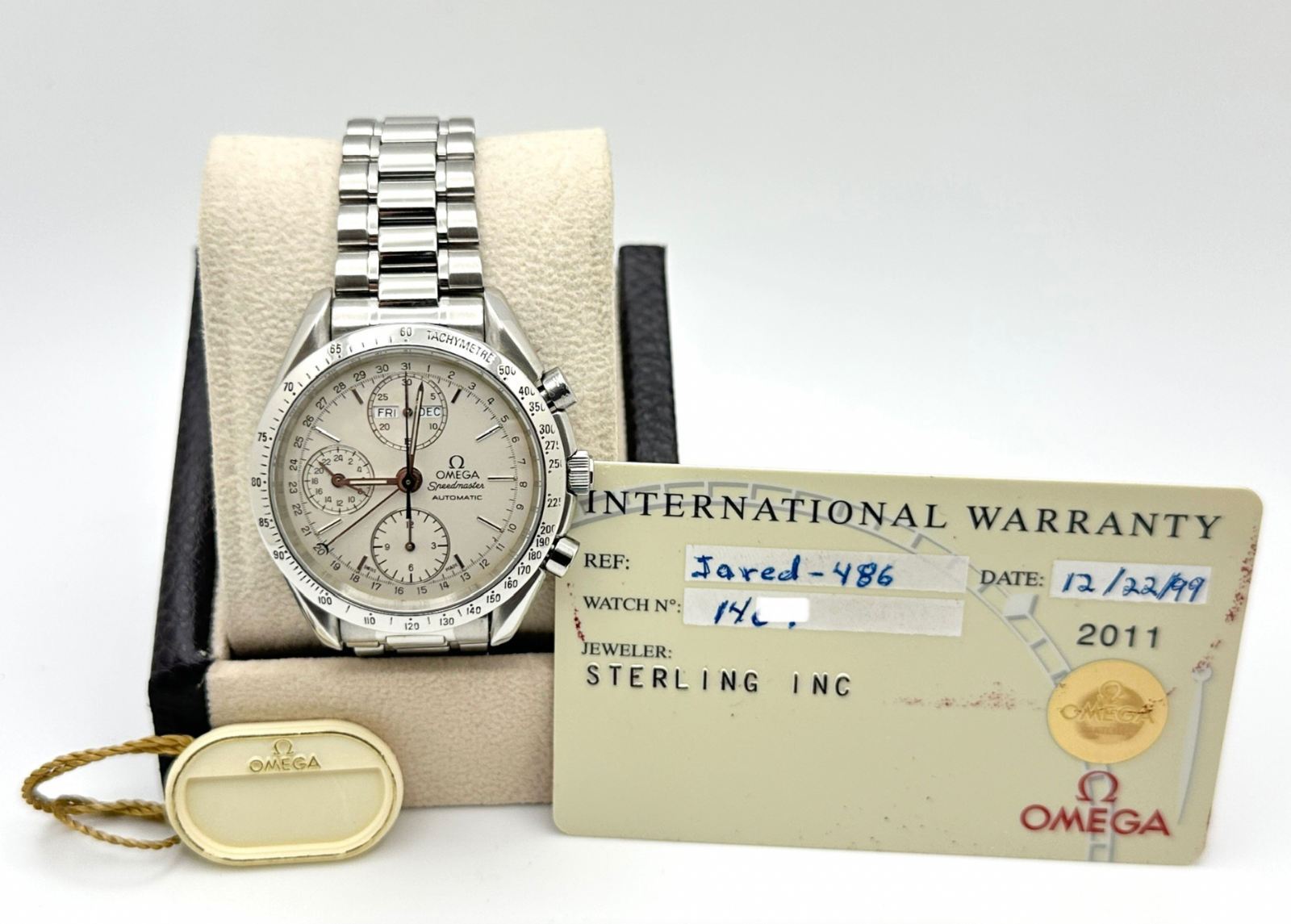 Omega Speedmaster Day Date Chronograph 3523.30 39mm Stainless Steel Box Paper OMEGA Sale! from 299500 /per This item is a recurring or deferred purchase. By continuing, I agree to the cancellation policy and authorize you to charge my payment method at the prices, frequency and dates listed on this page until my order is fulfilled or I cancel, if permitted. +1 (619) 232-1273 This item is currently on backorder but you can still purchase it now and we'll ship as soon as more become available. Style Number: 3523.30Year: 1999 Model: Omega Speedmaster Day-Date Chronograph Case Material: Stainless Steel Band: Stainless Steel Bezel: Stainless Steel Dial: Silver Face: Sapphire Crystal Case Size: 39mm Includes: -Omega Box & Paper-Certified Appraisal -1 Year WarrantySKU 20209 / 12430TSH053123