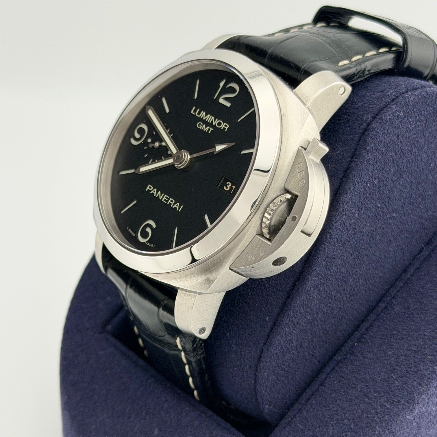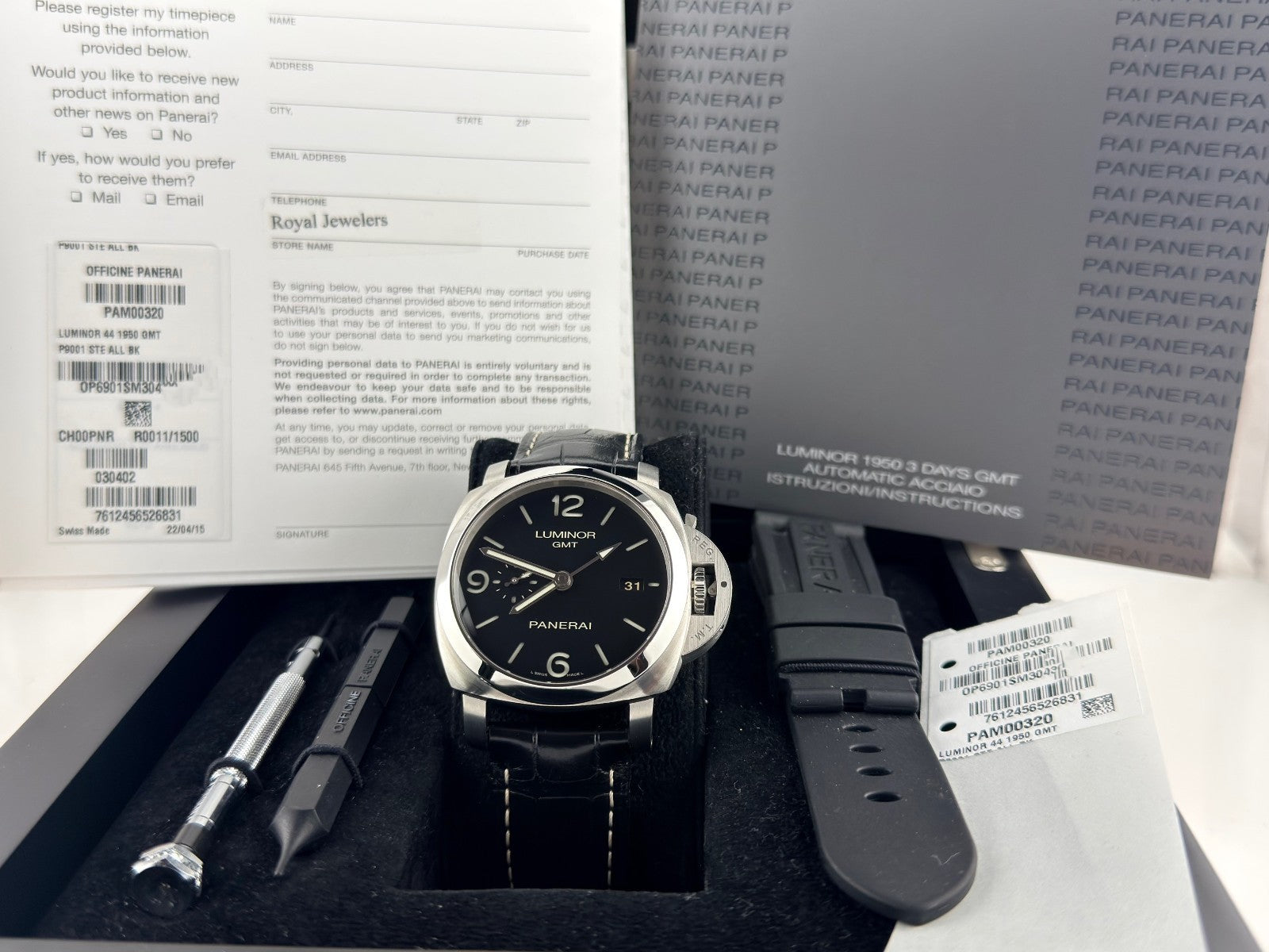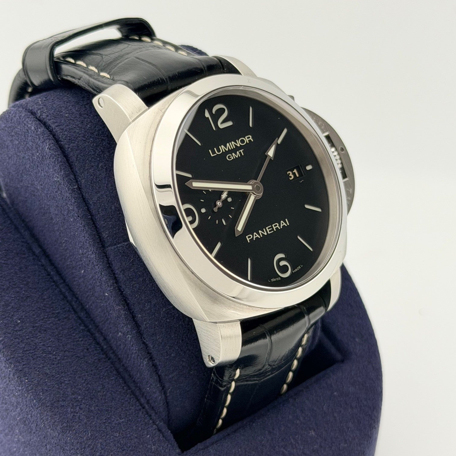 Panerai Luminor 1950 3 Days GMT PAM00320 PAM 320 44mm Black Dial Steel Box Paper Panerai Sale! from 489500 /per This item is a recurring or deferred purchase. By continuing, I agree to the cancellation policy and authorize you to charge my payment method at the prices, frequency and dates listed on this page until my order is fulfilled or I cancel, if permitted. +1 (619) 232-1273 This item is currently on backorder but you can still purchase it now and we'll ship as soon as more become available. Style Number: PAM00320 Serial: OP6901********* Year: 2016 Model: Panerai Luminor 1950 3 Days GMT Case Material: Stainless Steel Band: Leather Strap Bezel: Stainless Steel Dial: Black Crystal: Sapphire Case Size: 44mm Includes: -Panerai Box & Papers-Certified Appraisal -1 Year WarrantySKU 23377 / 18985T