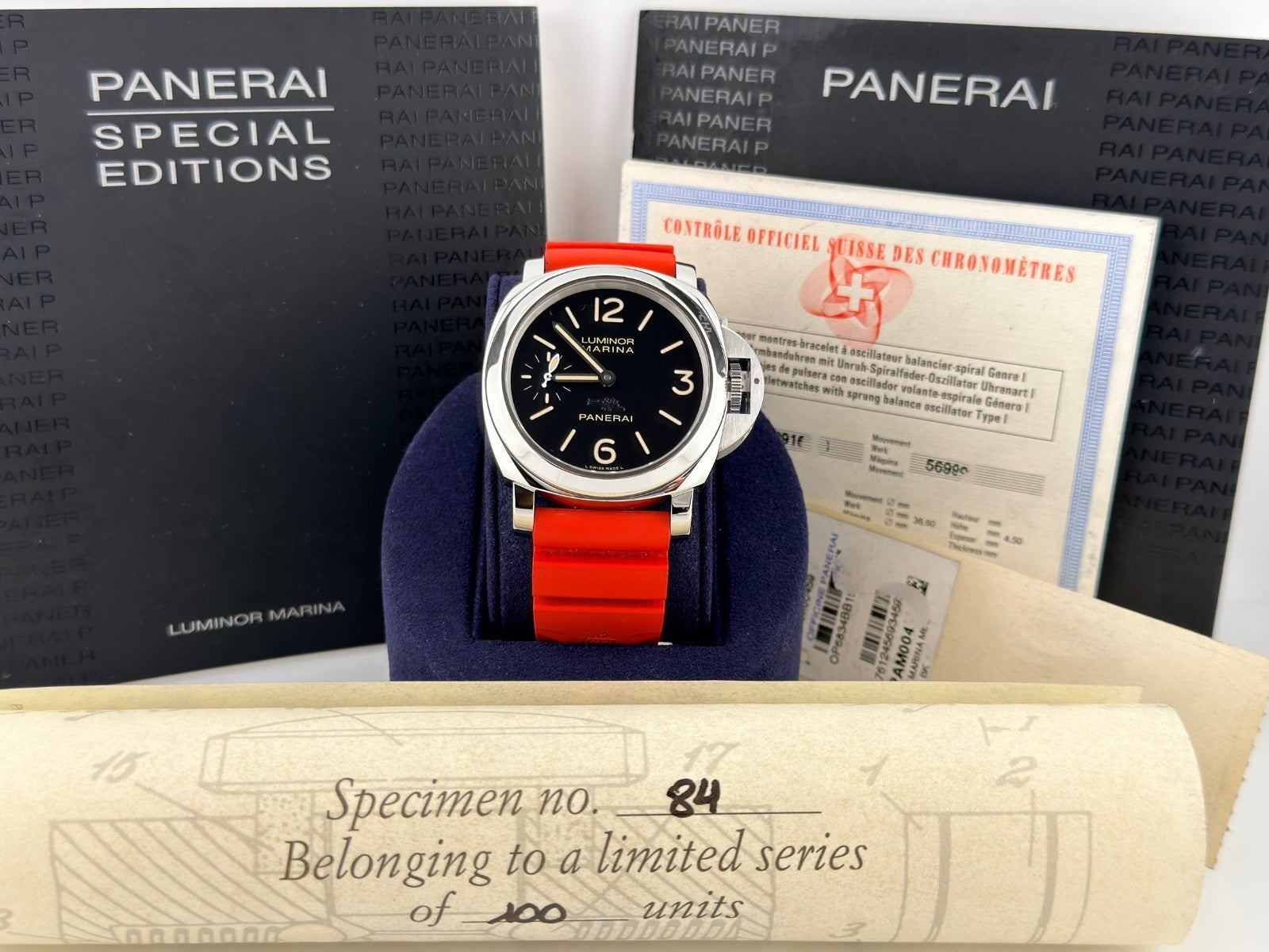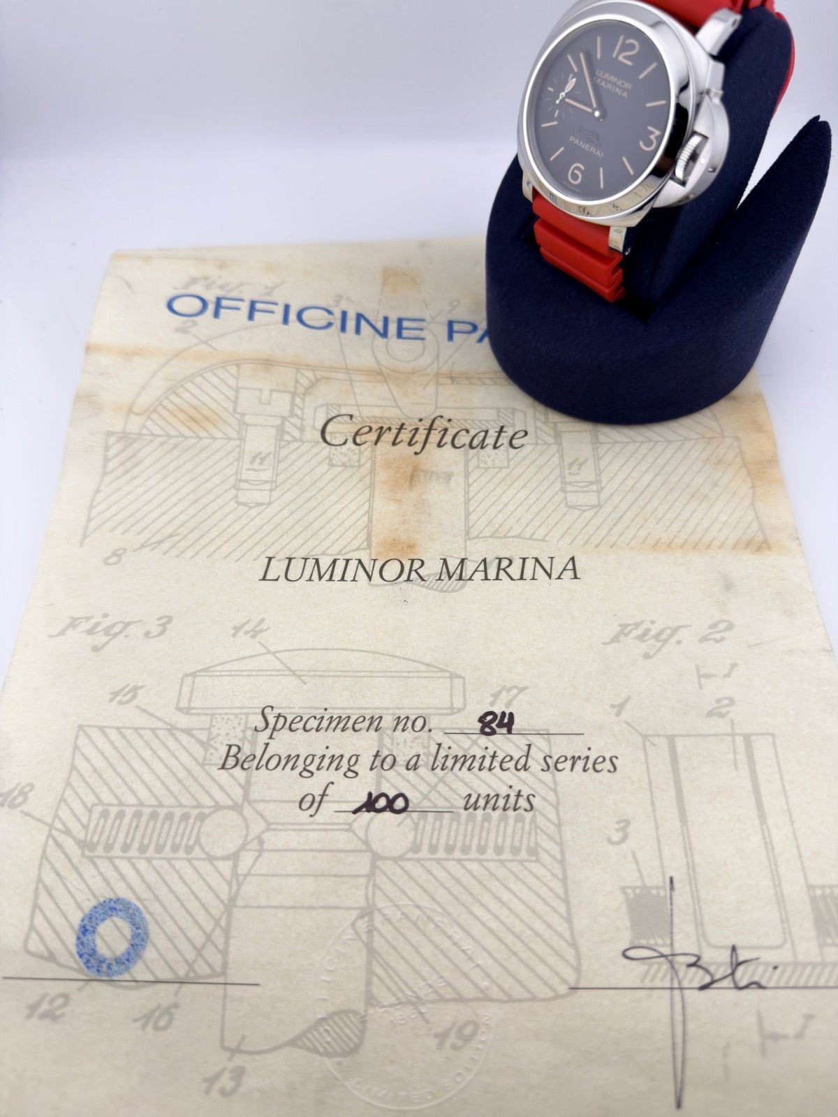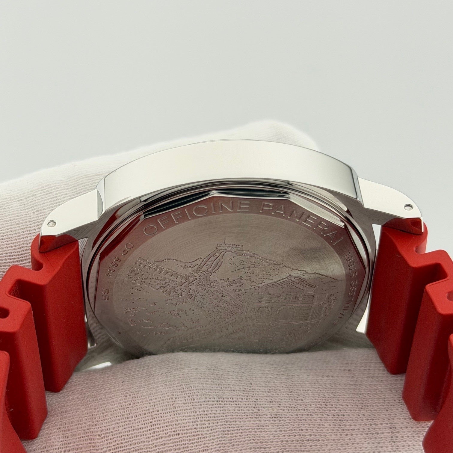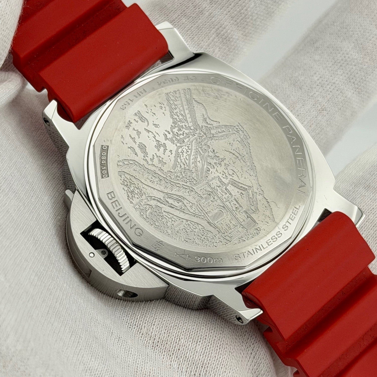 Panerai Luminor Marina Beijing Boutique Edition PAM00459 PAM 459 44mm Paper Panerai Sale! from 579500 /per This item is a recurring or deferred purchase. By continuing, I agree to the cancellation policy and authorize you to charge my payment method at the prices, frequency and dates listed on this page until my order is fulfilled or I cancel, if permitted. +1 (619) 232-1273 This item is currently on backorder but you can still purchase it now and we'll ship as soon as more become available. Style Number: PAM00459 / PAM 459Serial: BB153****Year: 2013 Model: Panerai Luminor Marina - Beijing Boutique Limited Edition 84/100 Case Material: Stainless Steel Band: Red Rubber Strap Bezel: Stainless Steel Dial: Black Crystal: Sapphire Case Size: 44mm Includes: -Elegant Watch Box & Panerai Papers-Certified Appraisal -1 Year WarrantySKU 23664 / 17920TLK120425