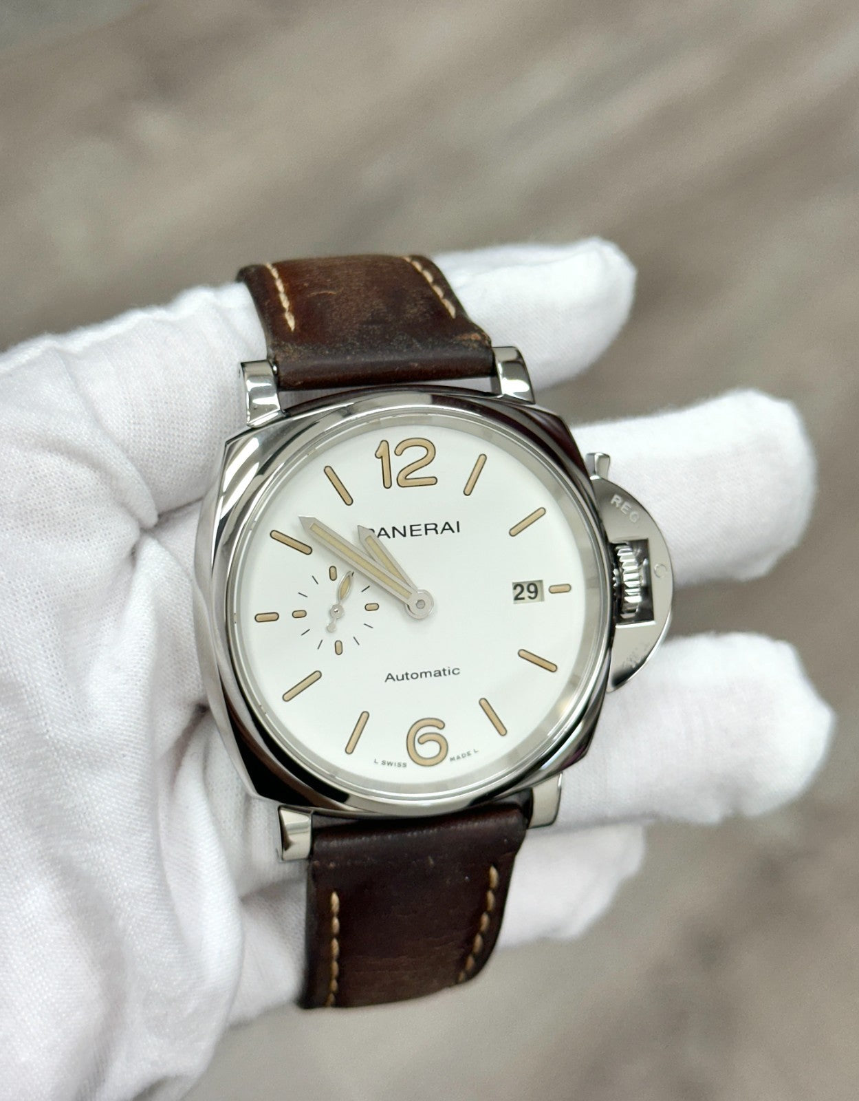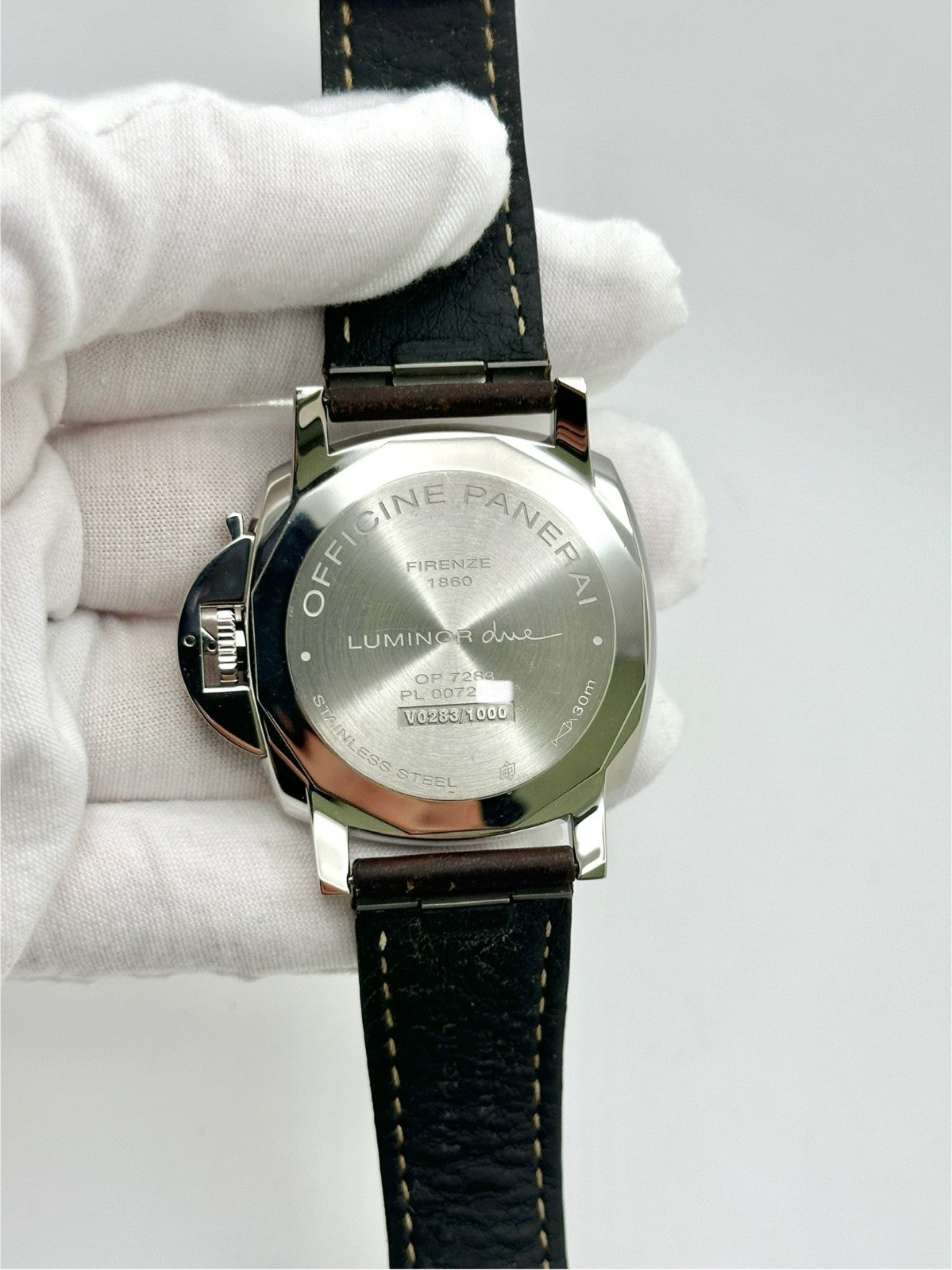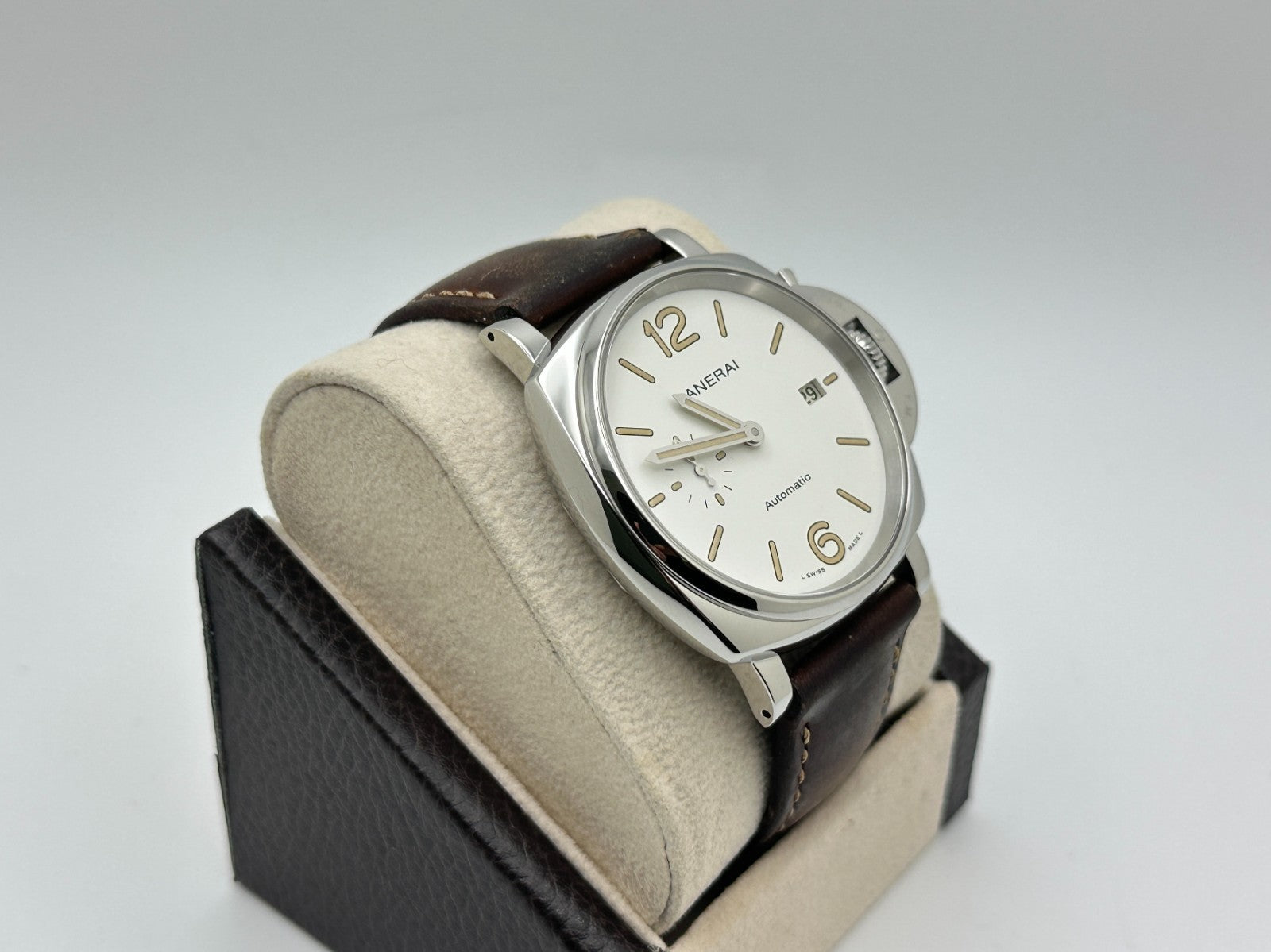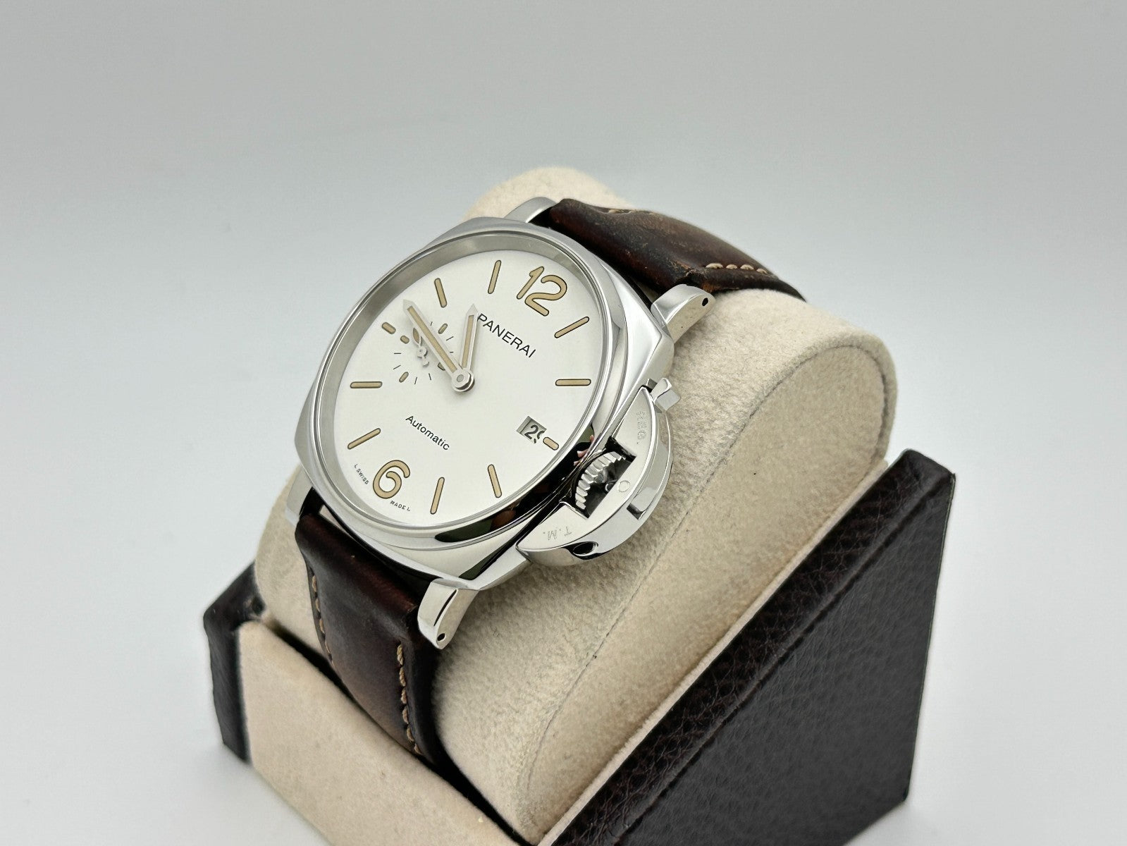 Panerai PAM01046 PAM 1046 42mm Luminor Due White Dial Steel Box Paper 2021 Panerai Sale! from 459500 /per This item is a recurring or deferred purchase. By continuing, I agree to the cancellation policy and authorize you to charge my payment method at the prices, frequency and dates listed on this page until my order is fulfilled or I cancel, if permitted. +1 (619) 232-1273 This item is currently on backorder but you can still purchase it now and we'll ship as soon as more become available. Style Number: PAM01046Year: 2021 Model: Panerai Luminor Due Case Material: Stainless Steel Band: Brown Leather Bezel: Stainless Steel Dial: White Face: Sapphire Crystal Case Size: 42mm Includes: -Panerai Box & Paper-Certified Appraisal -1 Year WarrantySKU 21310 / 17836TJD051624
