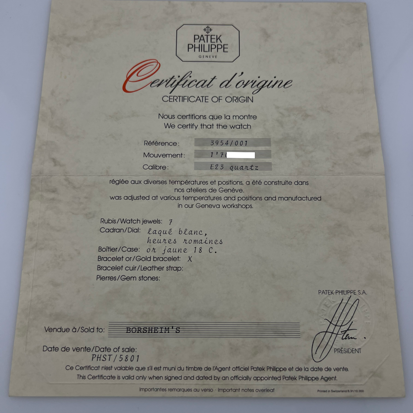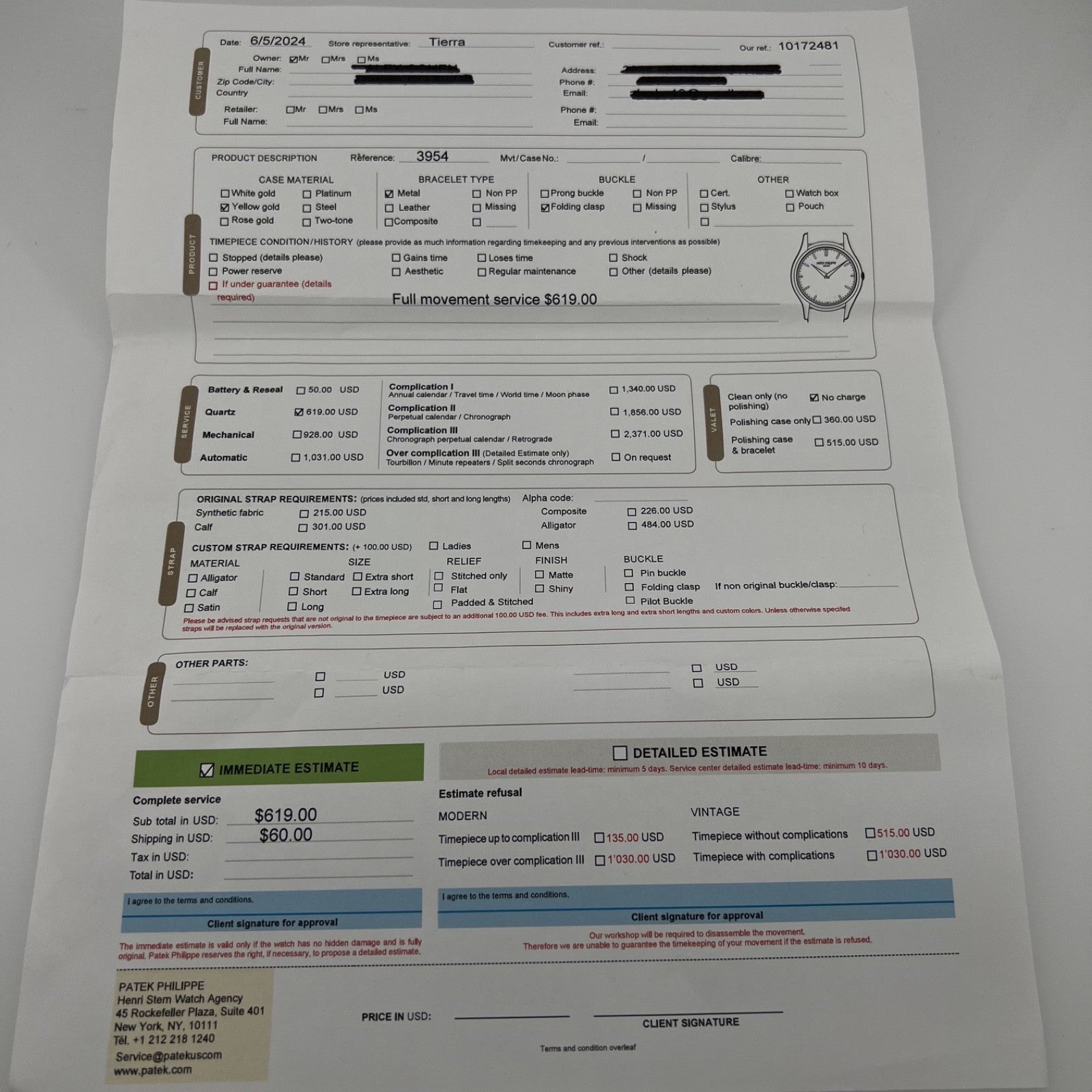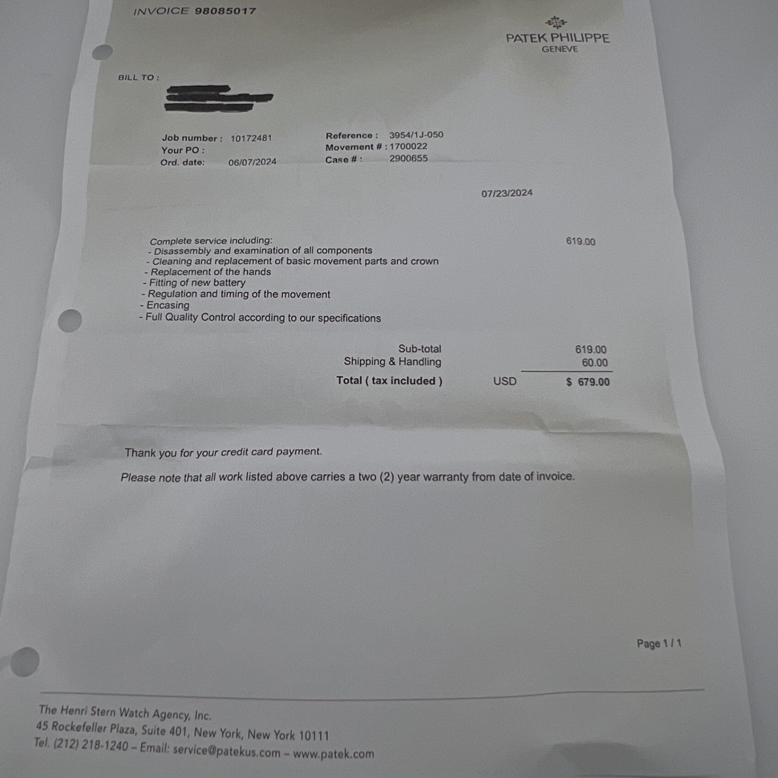 -Patek Philippe Box & Paper + 2024 Patek Philippe Service Receipt