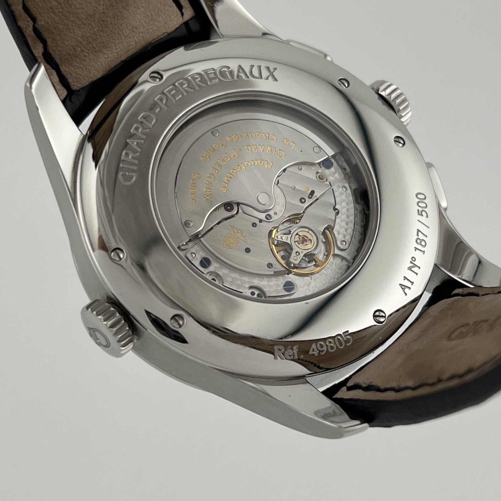 Girard Perregaux World Timer WW.TC Financial 49805 43mm White Dial Box Papers Girard-Perregaux Sale! from 699500 /per This item is a recurring or deferred purchase. By continuing, I agree to the cancellation policy and authorize you to charge my payment method at the prices, frequency and dates listed on this page until my order is fulfilled or I cancel, if permitted. +1 (619) 232-1273 This item is currently on backorder but you can still purchase it now and we'll ship as soon as more become available. Style Number: 49805Serial: 187****Year: 2007 Model: Girard Perregaux WW.TC Financial World Timer Case Material: Stainless Steel Band: Leather Bezel: Stainless Steel Dial: White Crystal: Sapphire Case Size: 43mm Includes: - Girard Perregaux Box & Papers - Certified Appraisal - 1 Year WarrantySKU 22975 / 18520T082625OC