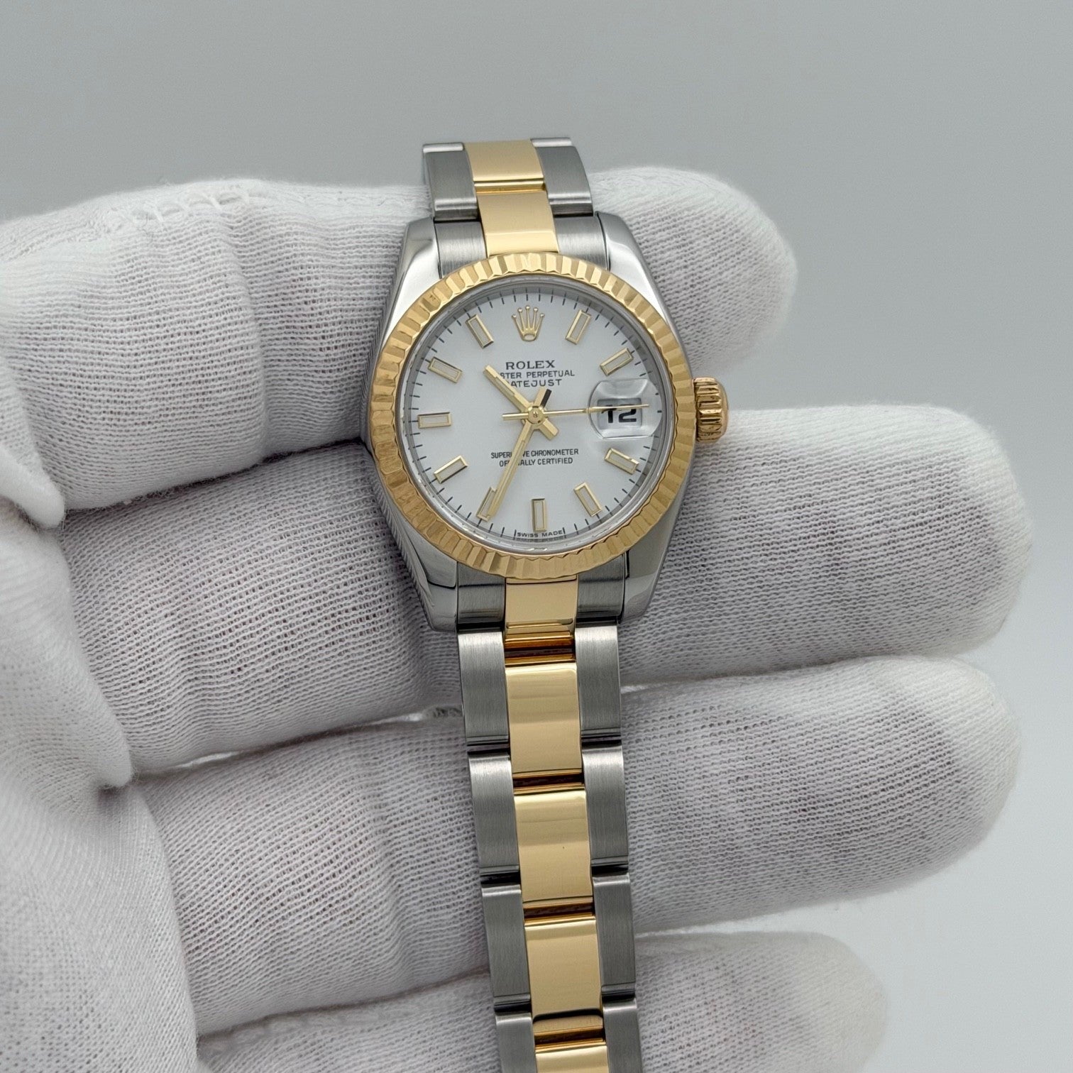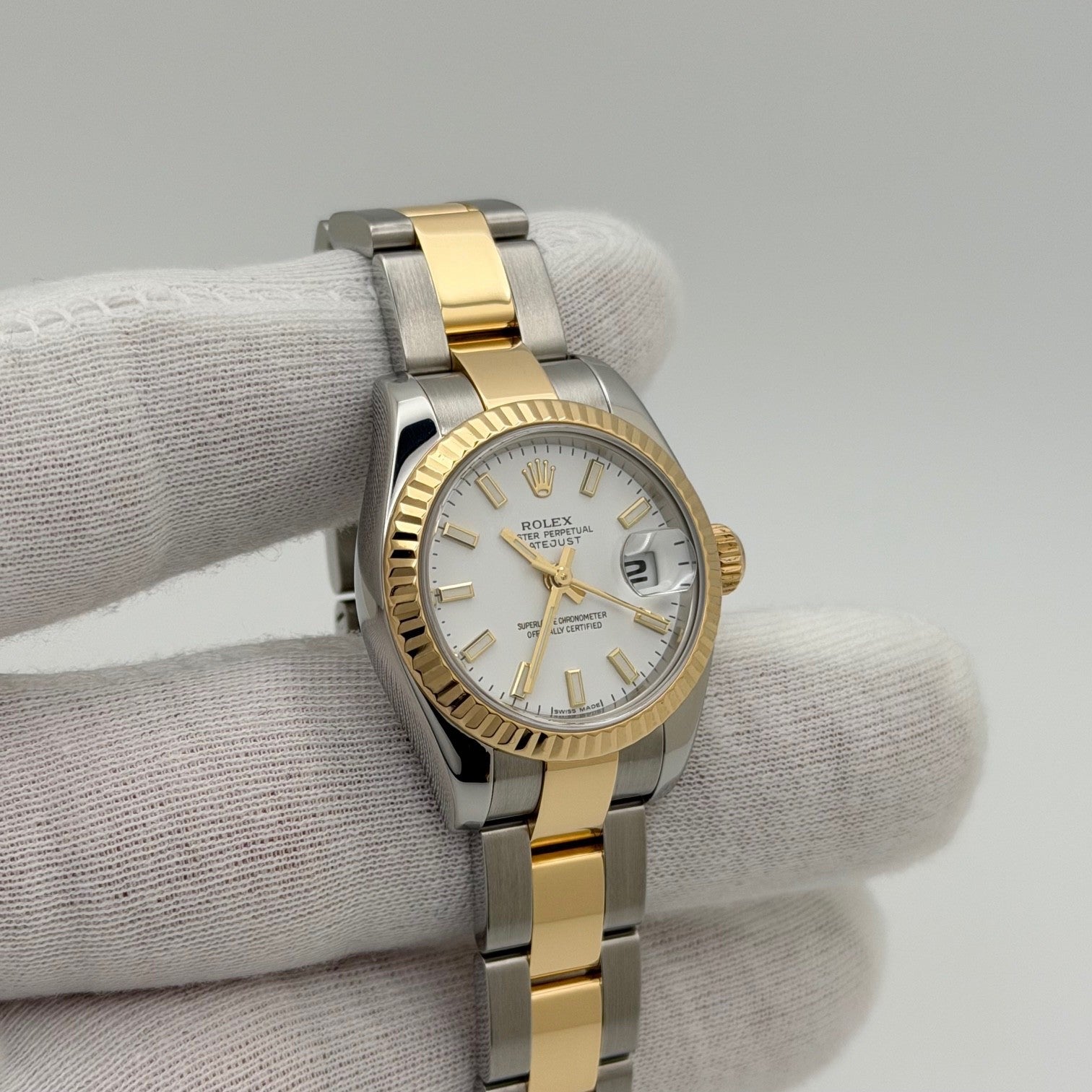 Rolex Ladies Datejust 179173 26mm White Dial 18k Gold Stainless Steel Box Papers Rolex Sale! from 879500 /per This item is a recurring or deferred purchase. By continuing, I agree to the cancellation policy and authorize you to charge my payment method at the prices, frequency and dates listed on this page until my order is fulfilled or I cancel, if permitted. +1 (619) 232-1273 This item is currently on backorder but you can still purchase it now and we'll ship as soon as more become available. Style Number: 179173Serial: D85****Year: 2007 Model: Rolex Ladies Datejust Case Material: Stainless Steel Band: 18k Yellow Gold & Stainless Steel Bezel: 18k Yellow Gold Fluted Dial: White Dial Crystal: Sapphire Case Size: 26mm Includes: - Rolex Watch Box & Paper- Certified Appraisal - 1 Year WarrantySKU 23371 / 117925TSD112625