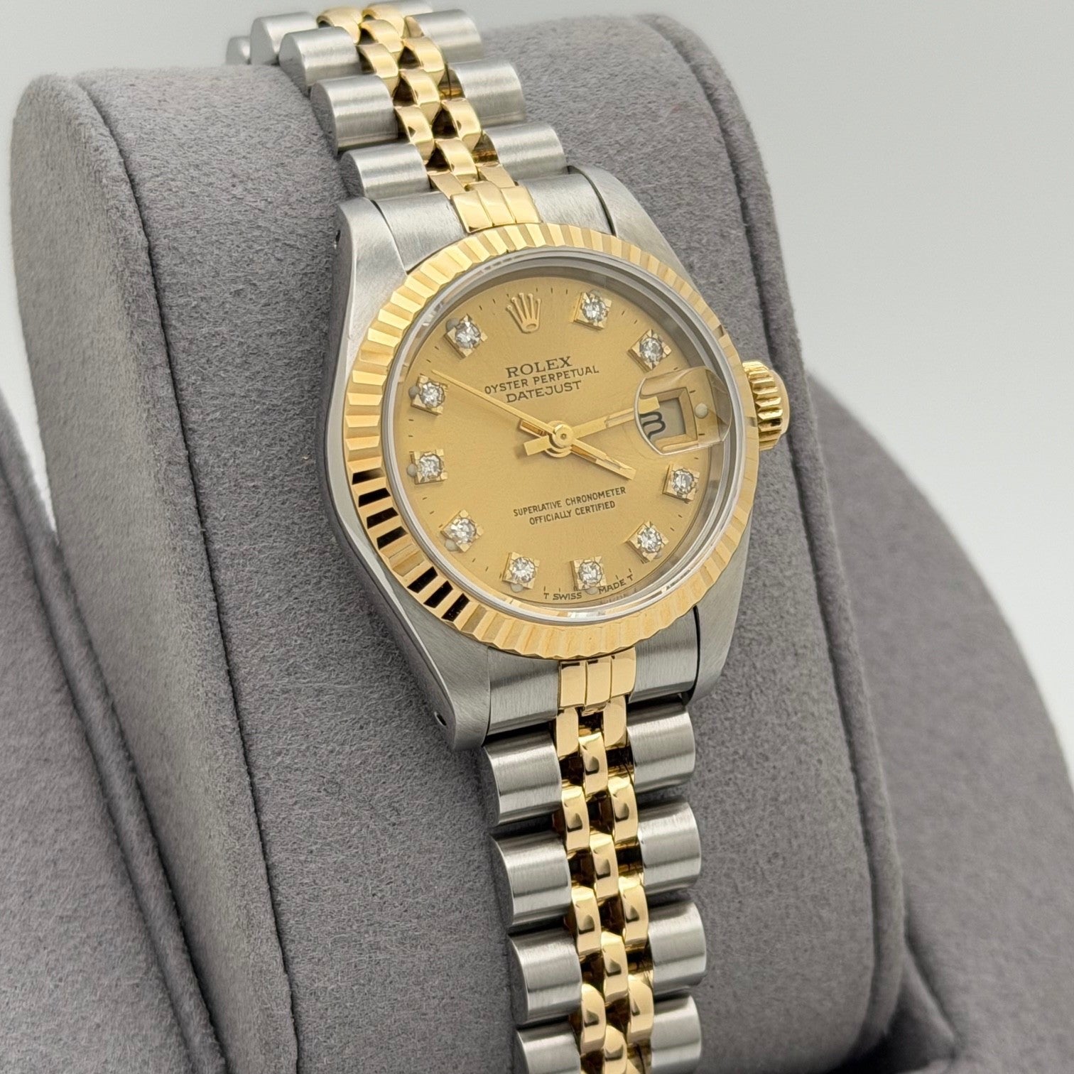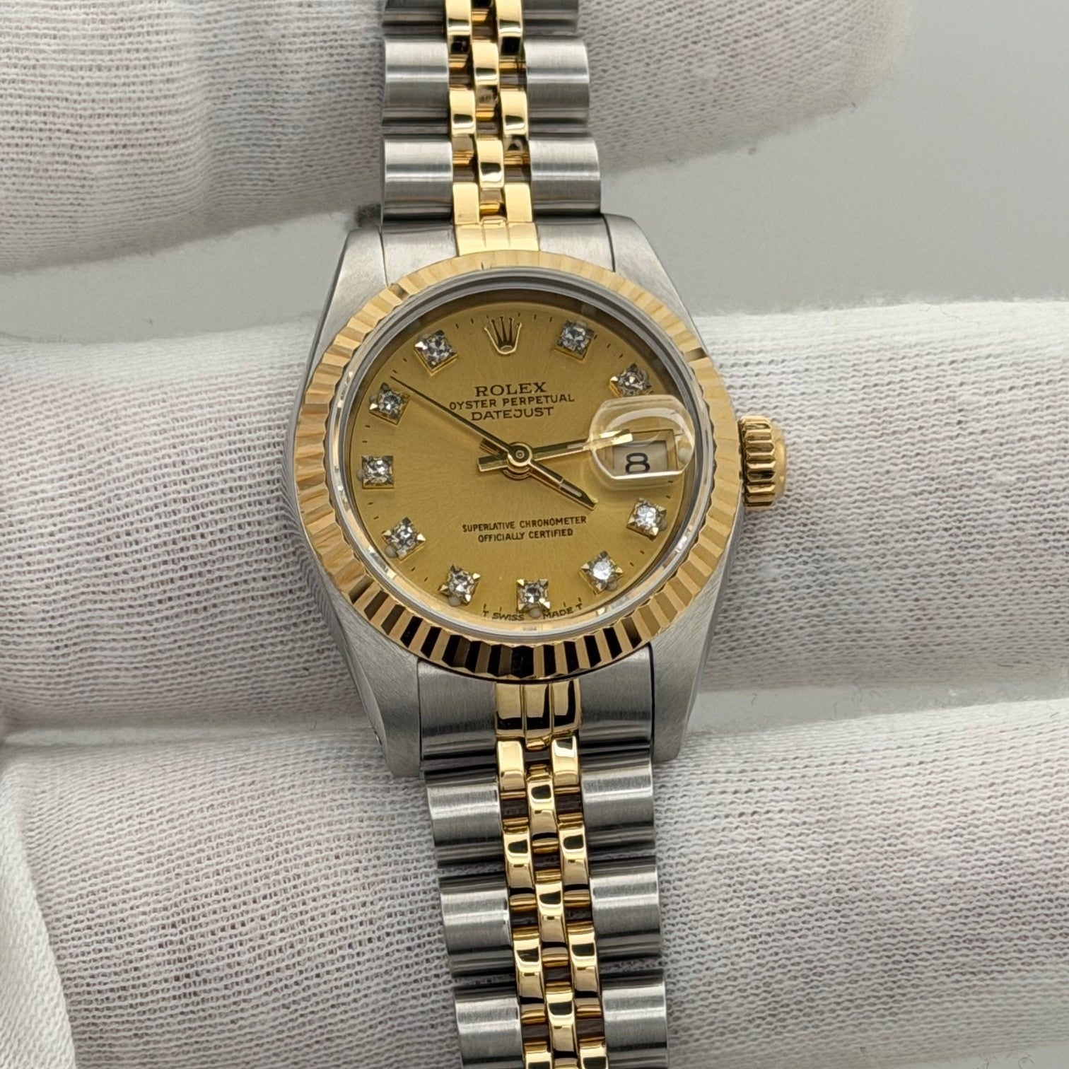 Rolex Ladies Datejust 69173 Factory Champagne Diamond Dial 18k Yellow Gold Steel