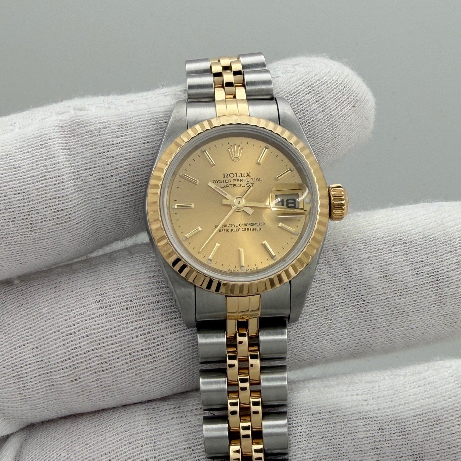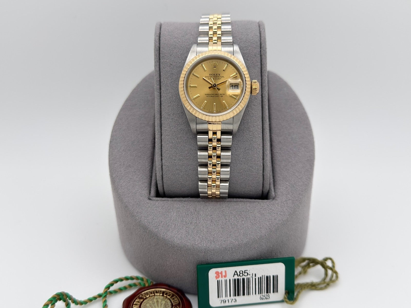 Rolex Ladies Datejust 79173 26mm Champagne Dial 18k Gold Stainless Steel Jubilee