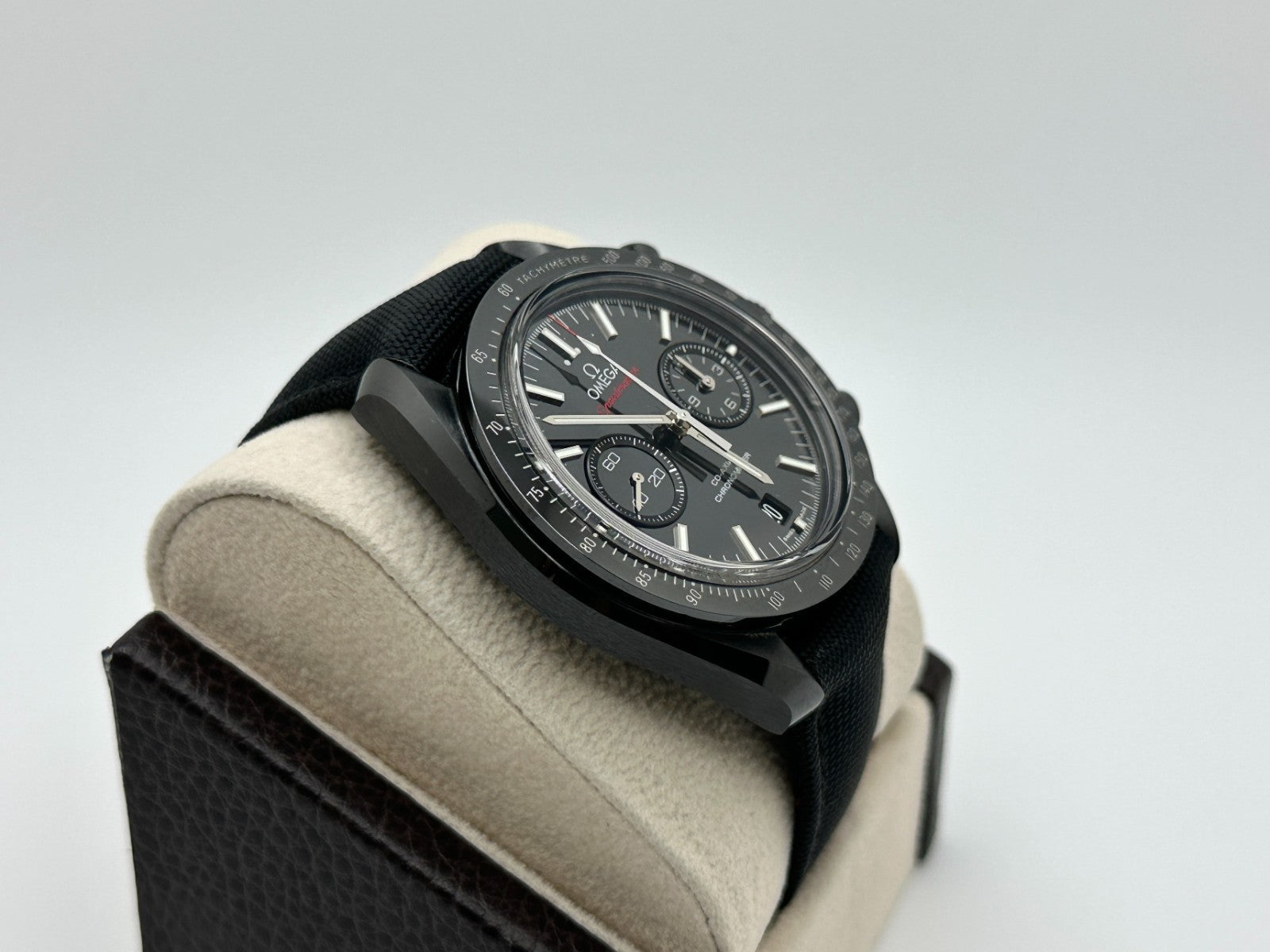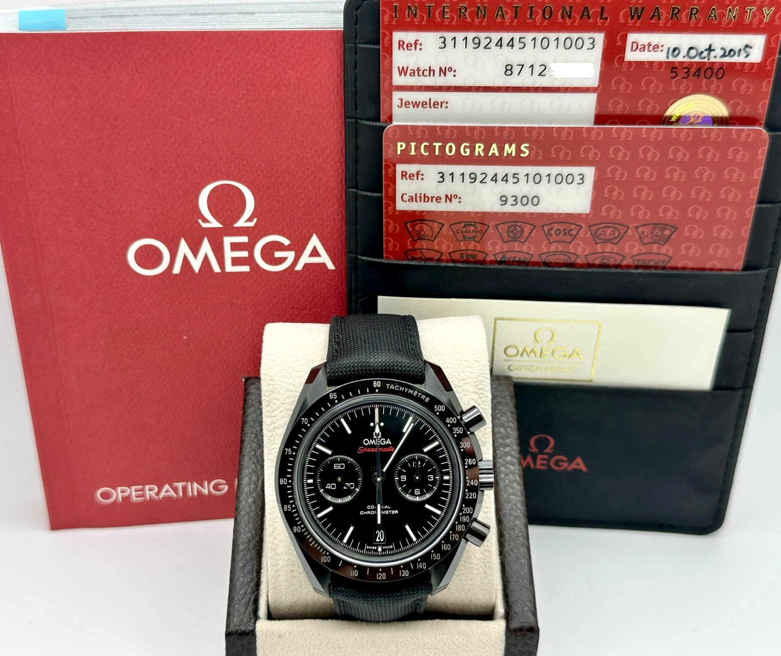 Style Number: 311.92.44.51.01.003 Year: 2015 Model: Omega Speedmaster Dark Side of the Moon Case Material: Black Ceramic Band: Coated Nylon Fabric Strap Bezel: Black Ceramic Dial: Black Face: Sapphire Crystal Case Size: 44.25mm Includes: -Omega Box & Paper -Certified Appraisal -1 Year Warranty SKU 23202 / 116629TLK101025