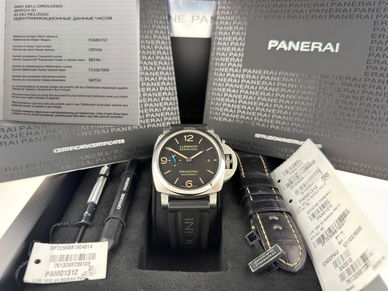 Panerai Luminor Marina 1950 3 Days PAM01312 PAM 01312 44mm Steel Box Paper Panerai Sale! from 539500 /per This item is a recurring or deferred purchase. By continuing, I agree to the cancellation policy and authorize you to charge my payment method at the prices, frequency and dates listed on this page until my order is fulfilled or I cancel, if permitted. +1 (619) 232-1273 This item is currently on backorder but you can still purchase it now and we'll ship as soon as more become available. Style Number: PAM01312 / PAM 01312Serial: BB190****Year: 2018 Model: Panerai Luminor Marina 1950 3 Days Case Material: Stainless Steel Band: Rubber Bezel: Stainless Steel Dial: Black Crystal: Sapphire Case Size: 44mm Includes: -Panerai Box & Paper-Certified Appraisal -1 Year WarrantySKU 22494 / 17836TJD051225