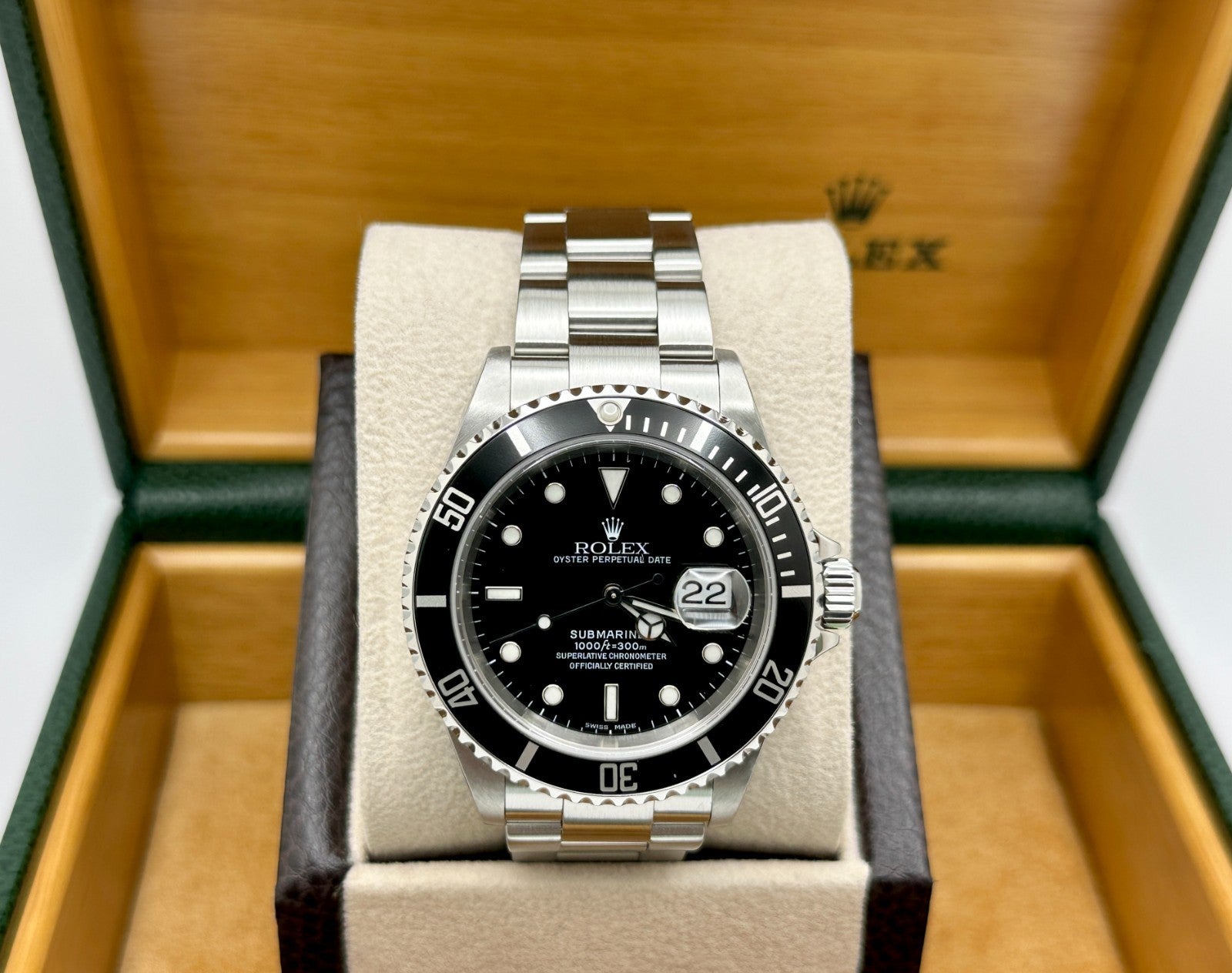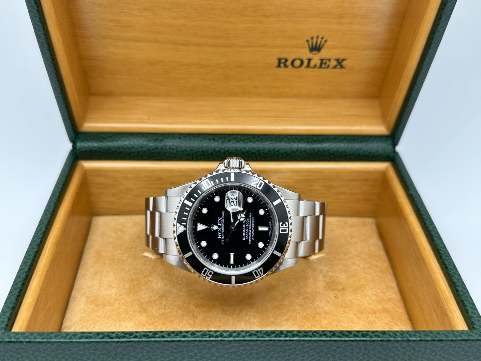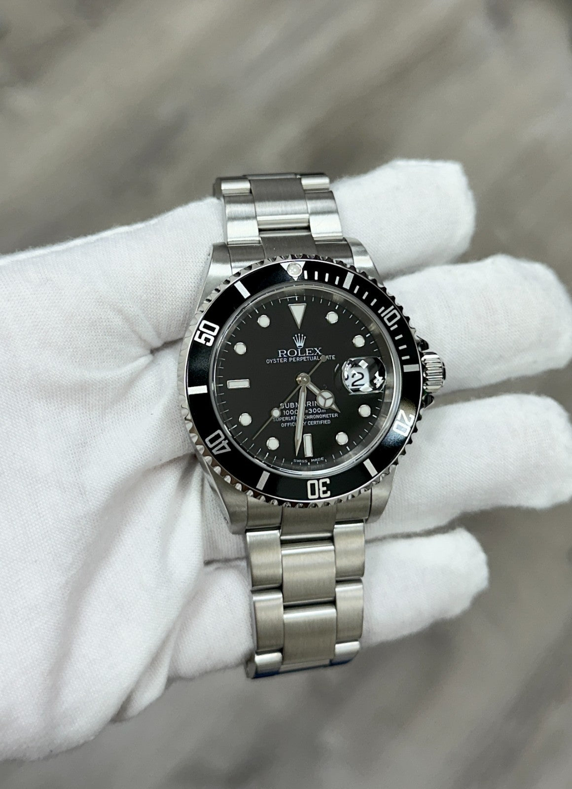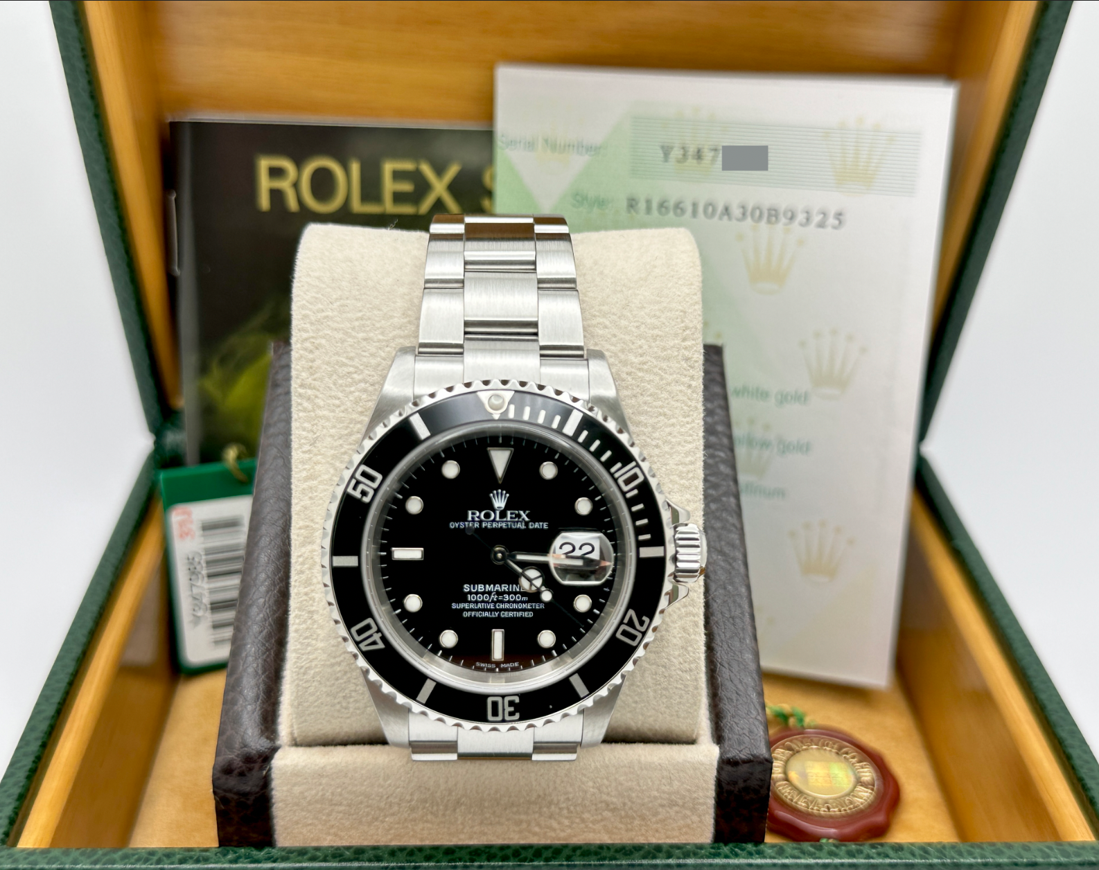 2003 Rolex Submariner Date 16610 40mm Black Stainless Steel Box Papers Rolex Sale! from 1029500 /per This item is a recurring or deferred purchase. By continuing, I agree to the cancellation policy and authorize you to charge my payment method at the prices, frequency and dates listed on this page until my order is fulfilled or I cancel, if permitted. +1 (619) 232-1273 This item is currently on backorder but you can still purchase it now and we'll ship as soon as more become available. Style Number: 16610Serial: Y347***Year: 2003 Model: Rolex Submariner Date Case Material: Stainless Steel Band: Stainless Steel Bezel: Black Dial: Balck Crystal: Sapphire Crystal Case Size: 40mm Includes: - Rolex Box & Paper- Certified Appraisal - One Year WarrantySKU 23225 / 121975TOFC