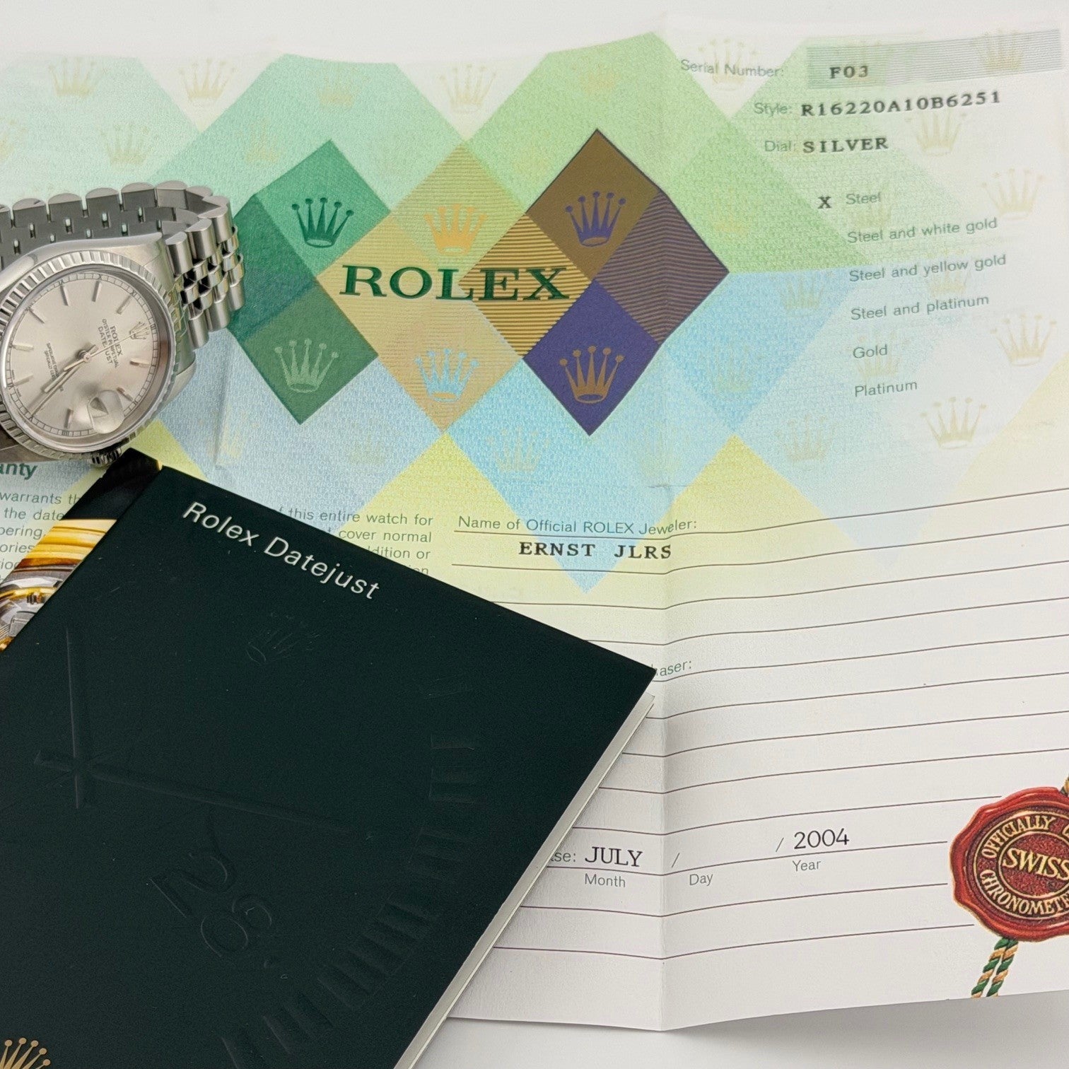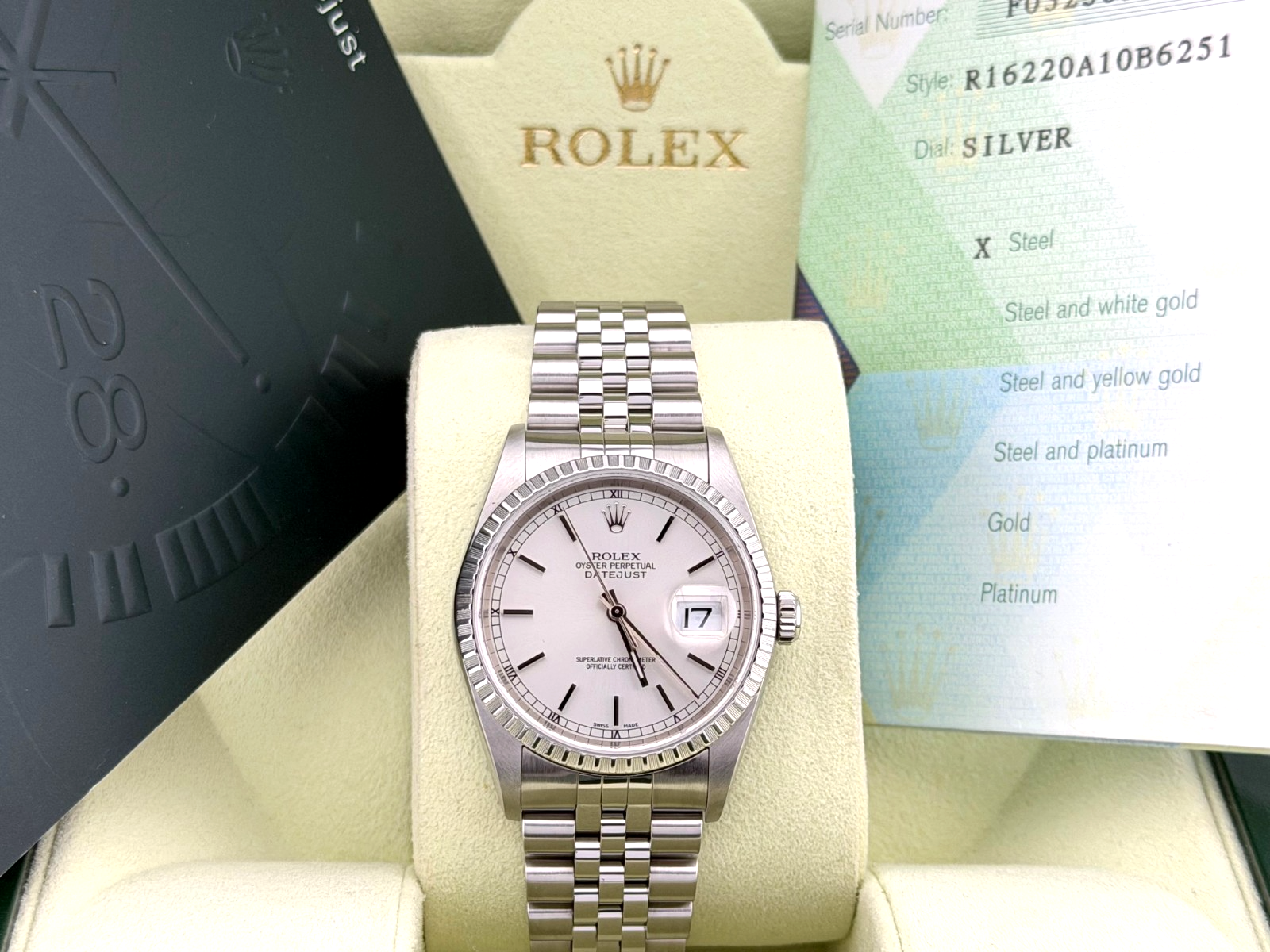 2004 Rolex Datejust 16220 36mm Silver Dial Stainless Steel Jubilee Box Paper