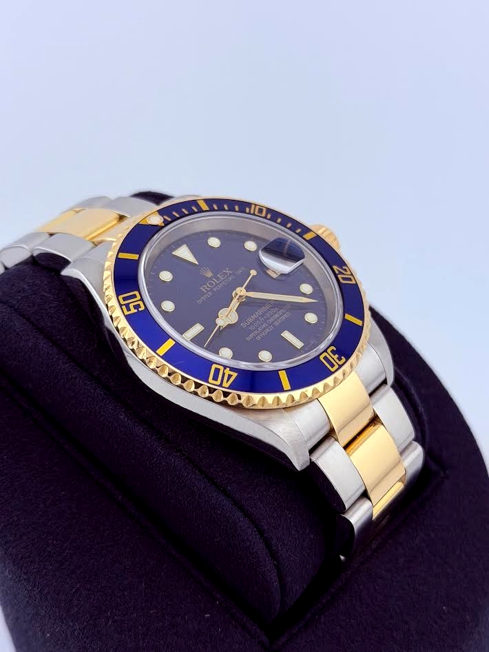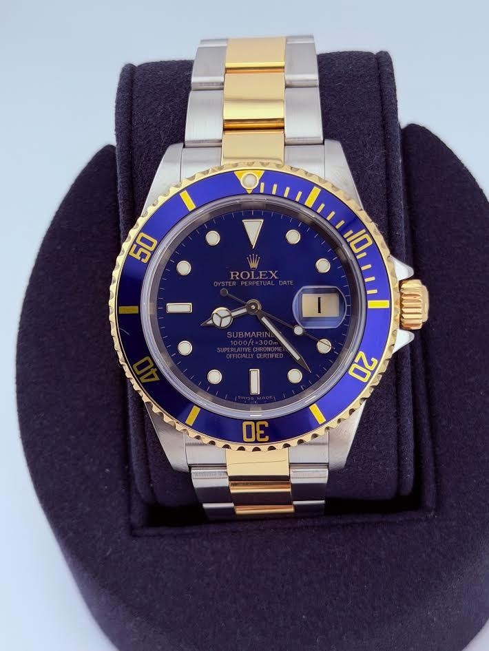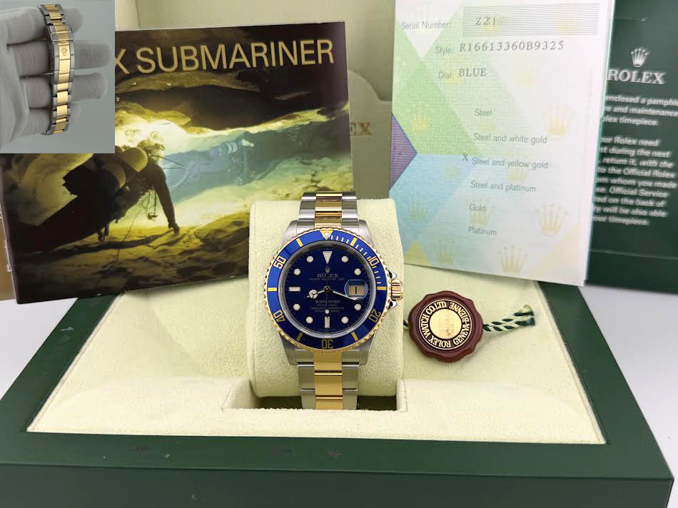 2007 Rolex Submariner Date 16613 40mm Blue Dial 18k Gold Steel Box Paper Rolex Sale! from 1329500 /per This item is a recurring or deferred purchase. By continuing, I agree to the cancellation policy and authorize you to charge my payment method at the prices, frequency and dates listed on this page until my order is fulfilled or I cancel, if permitted. +1 (619) 232-1273 This item is currently on backorder but you can still purchase it now and we'll ship as soon as more become available. Style Number: 16613Serial: Z20****Year: 2007 Model: Rolex Submariner Date Case Material: Stainless Steel Band: 18k Yellow Gold & Stainless SteelBezel: Blue Dial: Blue Crystal: Sapphire Case Size: 40mm Includes: - Rolex Box & Paper- Certified Appraisal - 1 Year WarrantySKU 23262 / 132115TBJ102925