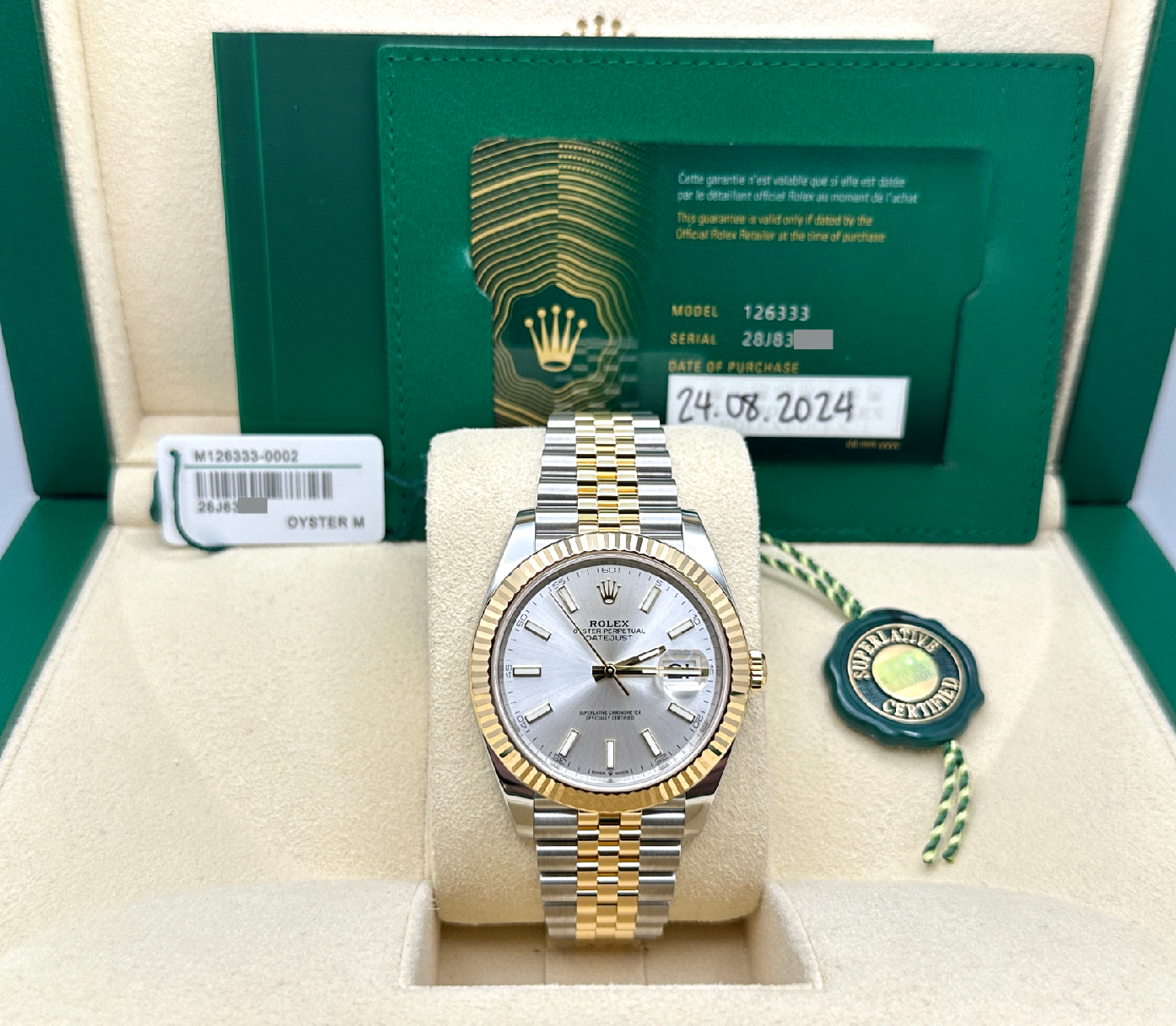 2024 Rolex 126333 Datejust 41 Silver Dial 18K Gold Stainless Steel Box Papers