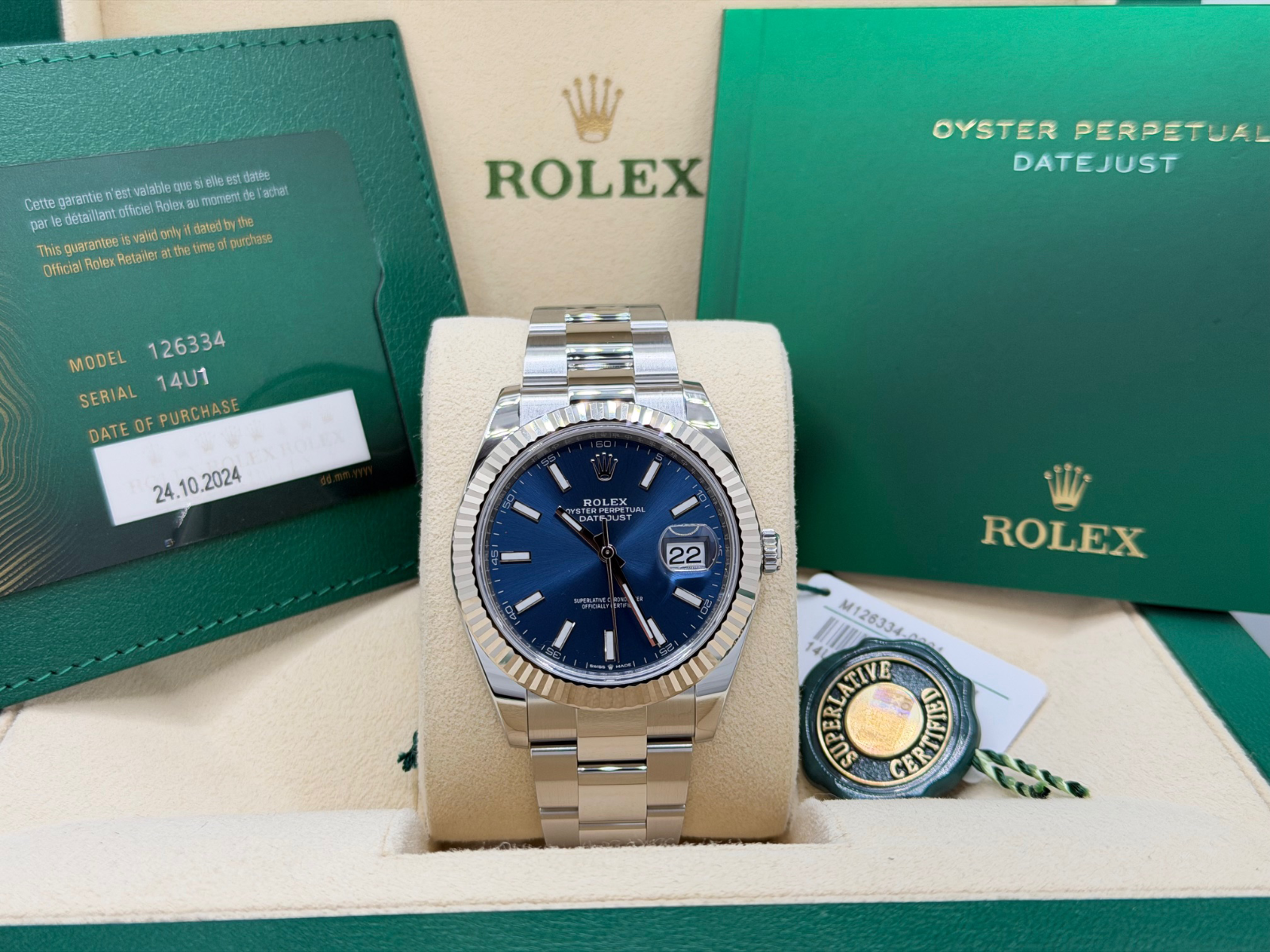 2024 Rolex Datejust 41 126334 41mm Blue Dial 18k Gold Stainless Steel Box Paper
