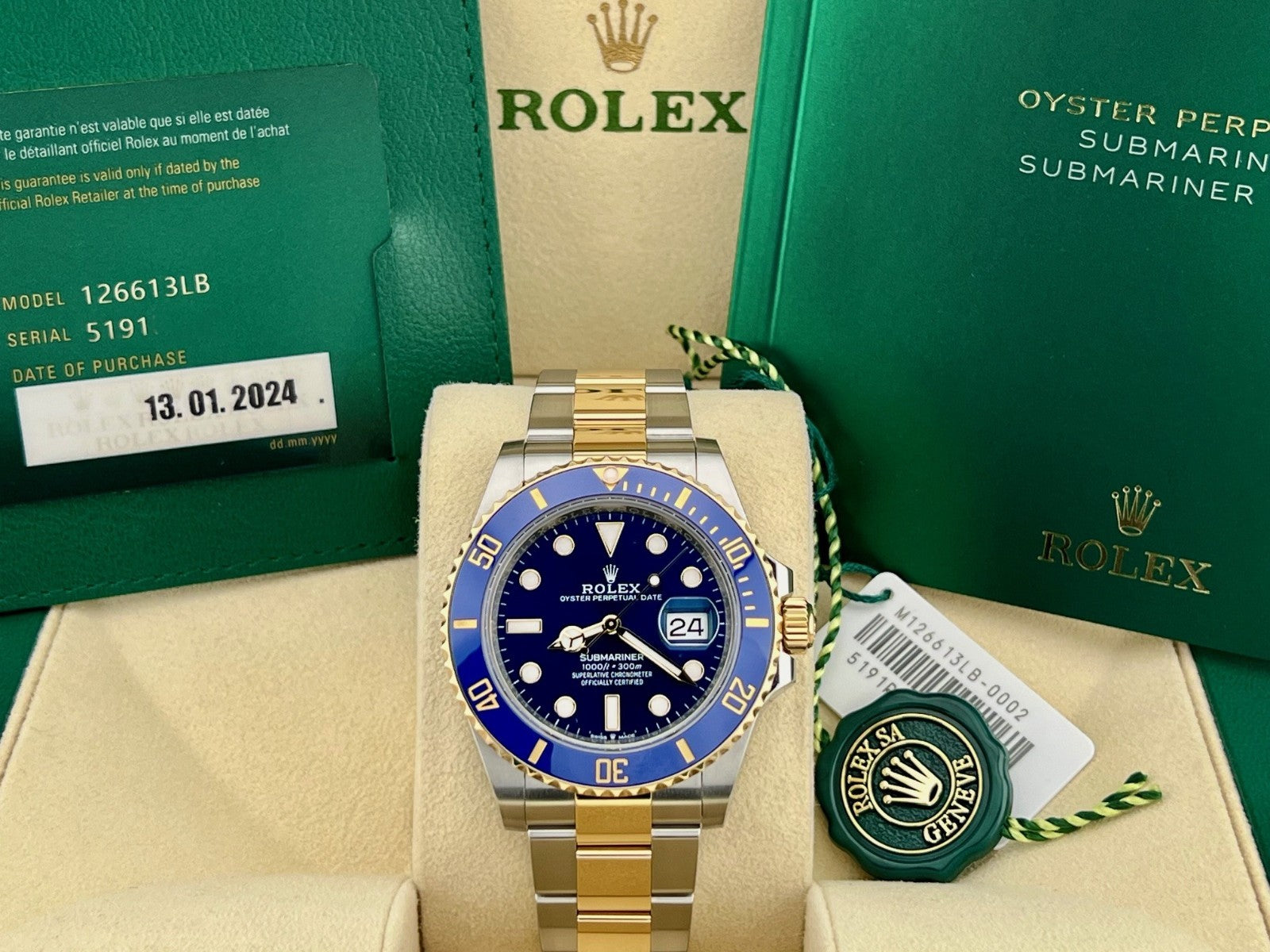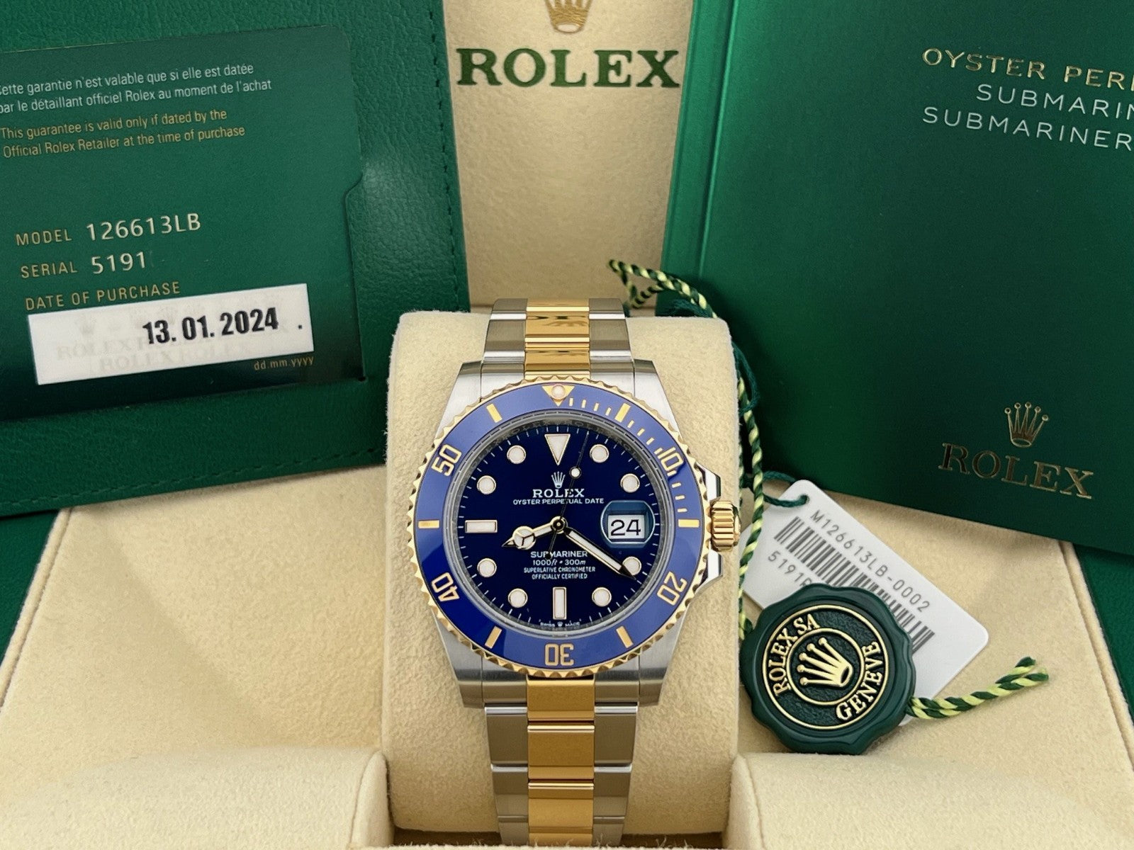 2024 Rolex Submariner Date Bluesy 126613LB 41mm 18k Gold Steel Ceramic Box Paper