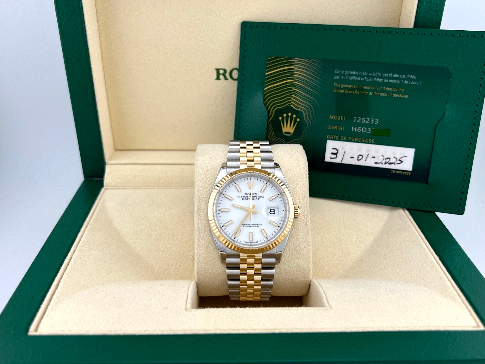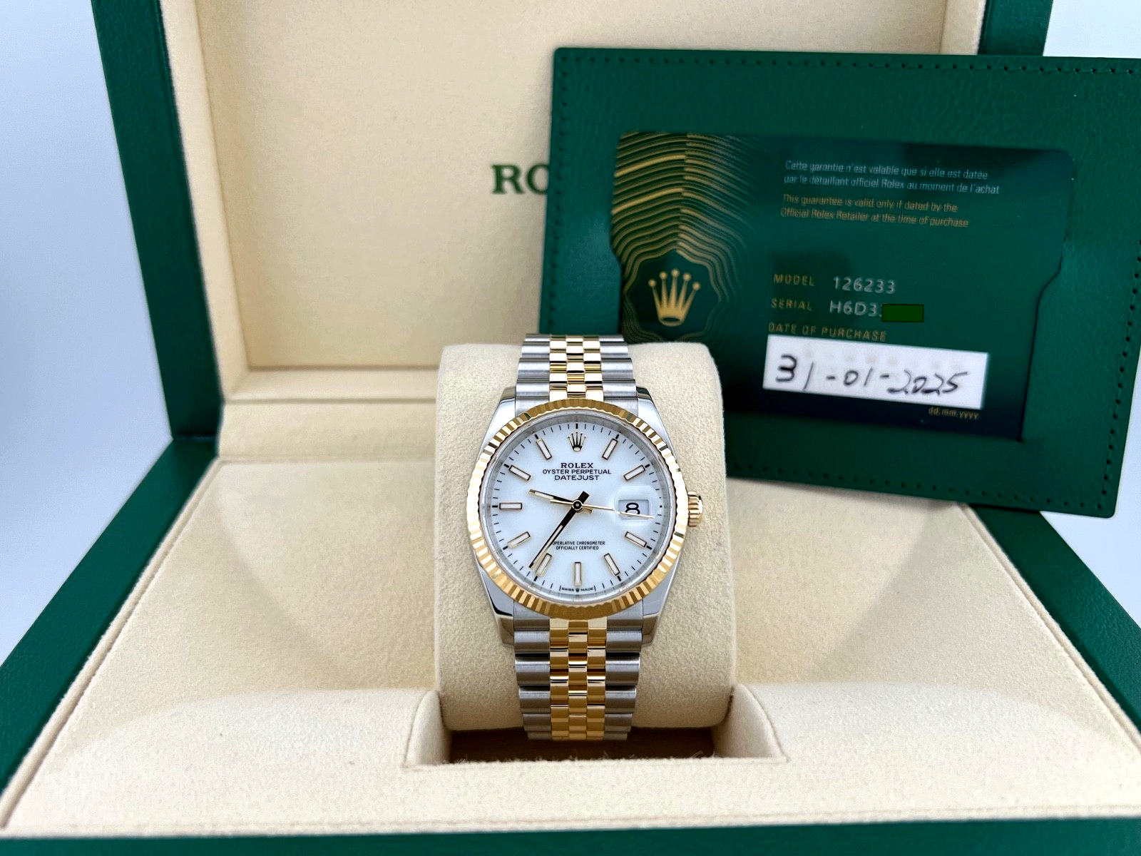 2025 Rolex Datejust 36 126233 36mm White Dial 18k Gold Stainless Steel Box Paper