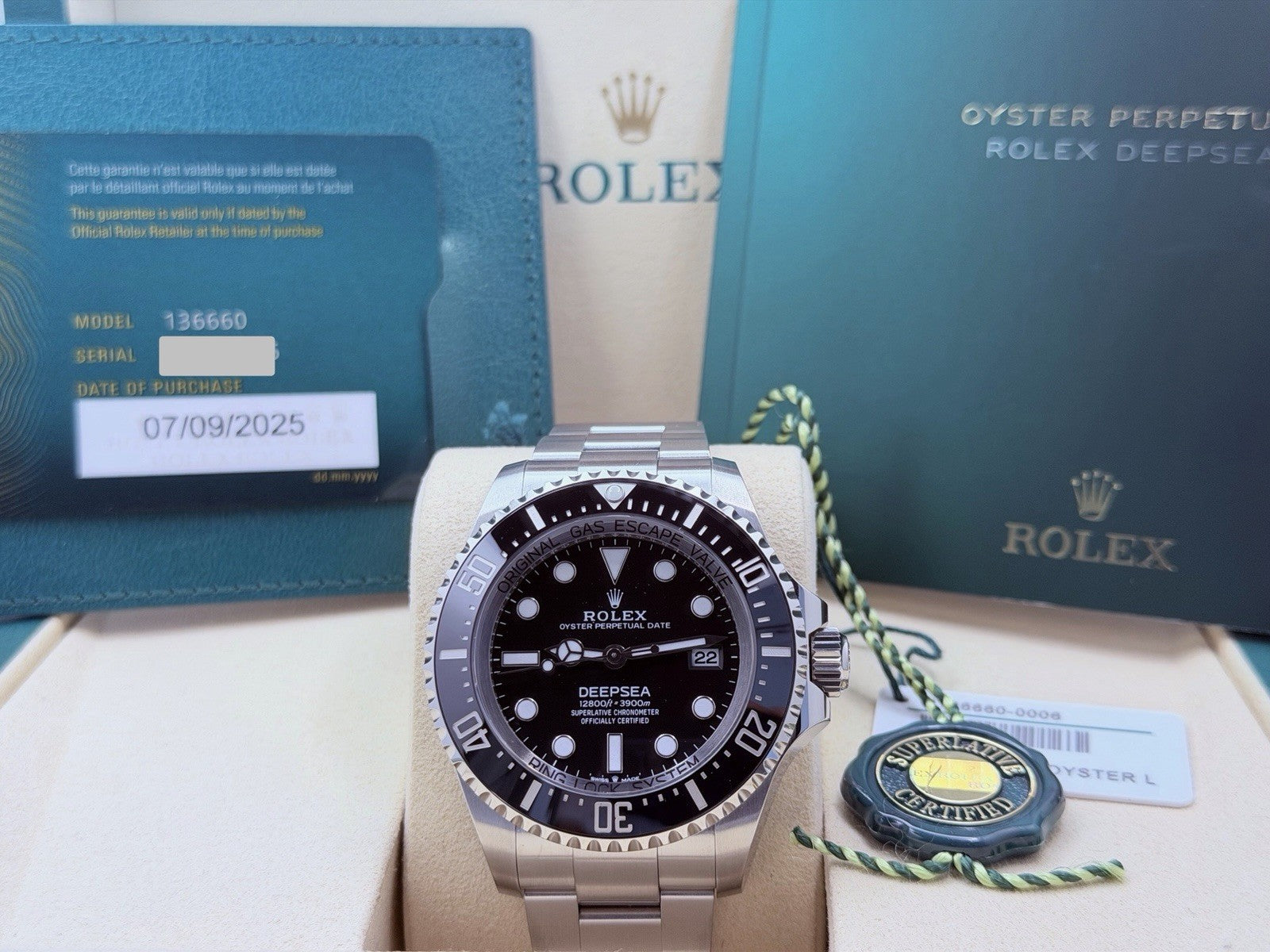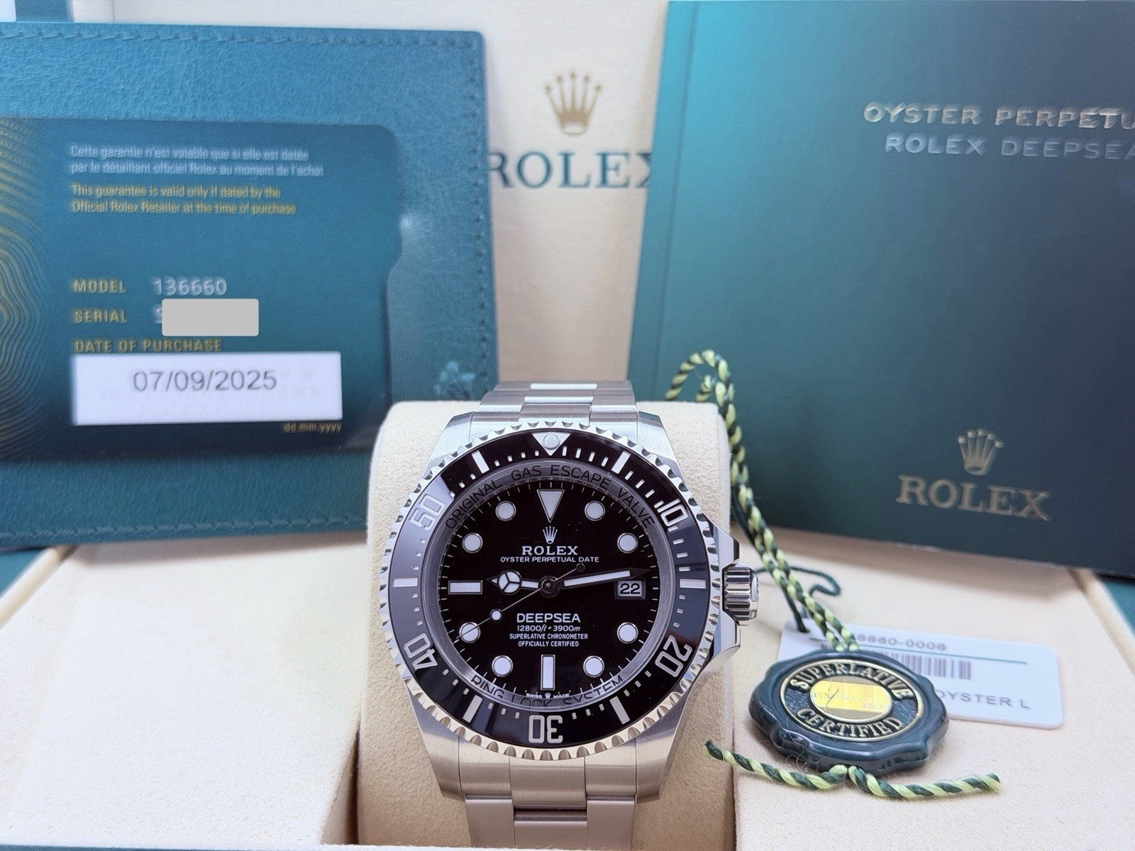 2025 Rolex Sea Dweller Deepsea 136660 44mm Black Dial Stainless Steel Box Papers