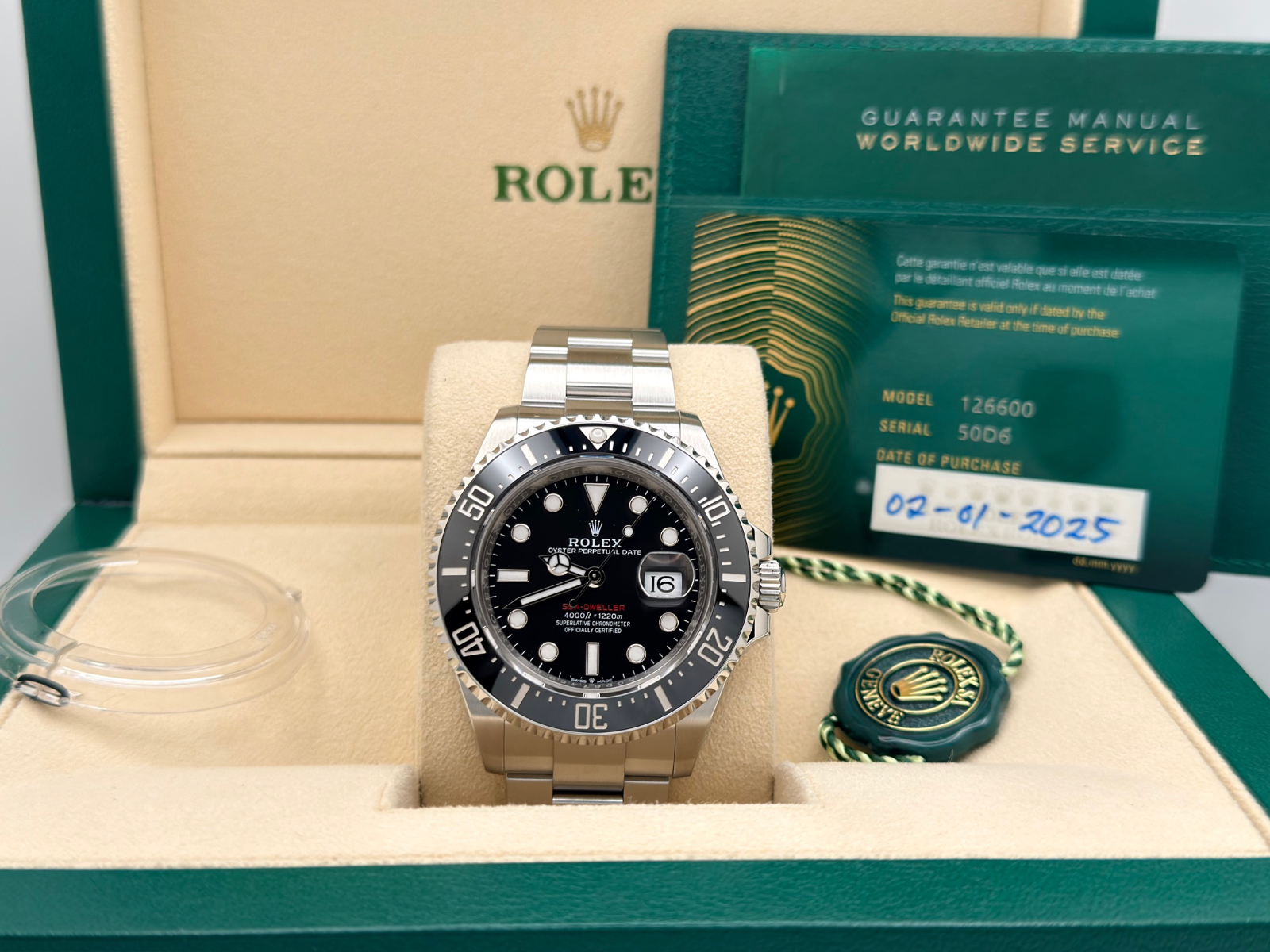 2025 Rolex Sea Dweller Red Letter 126600 43mm Black Ceramic Steel Box Paper
