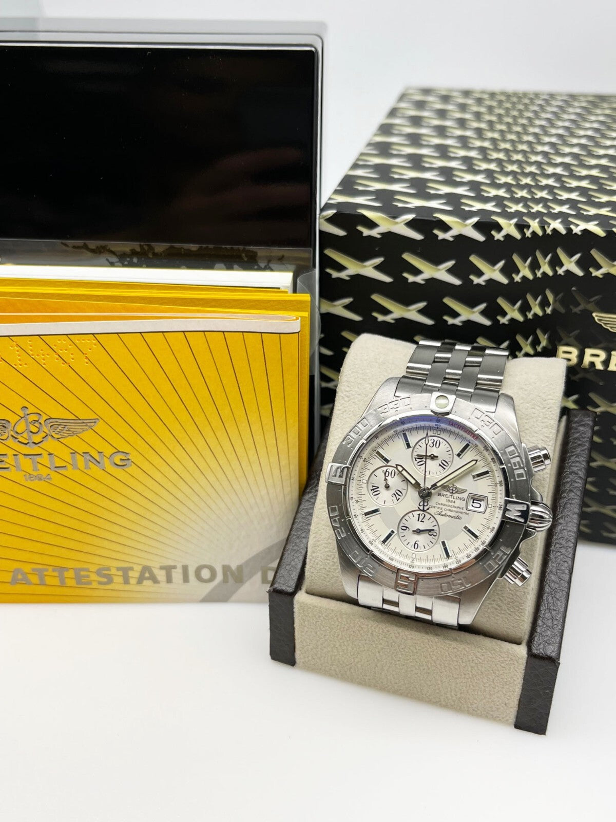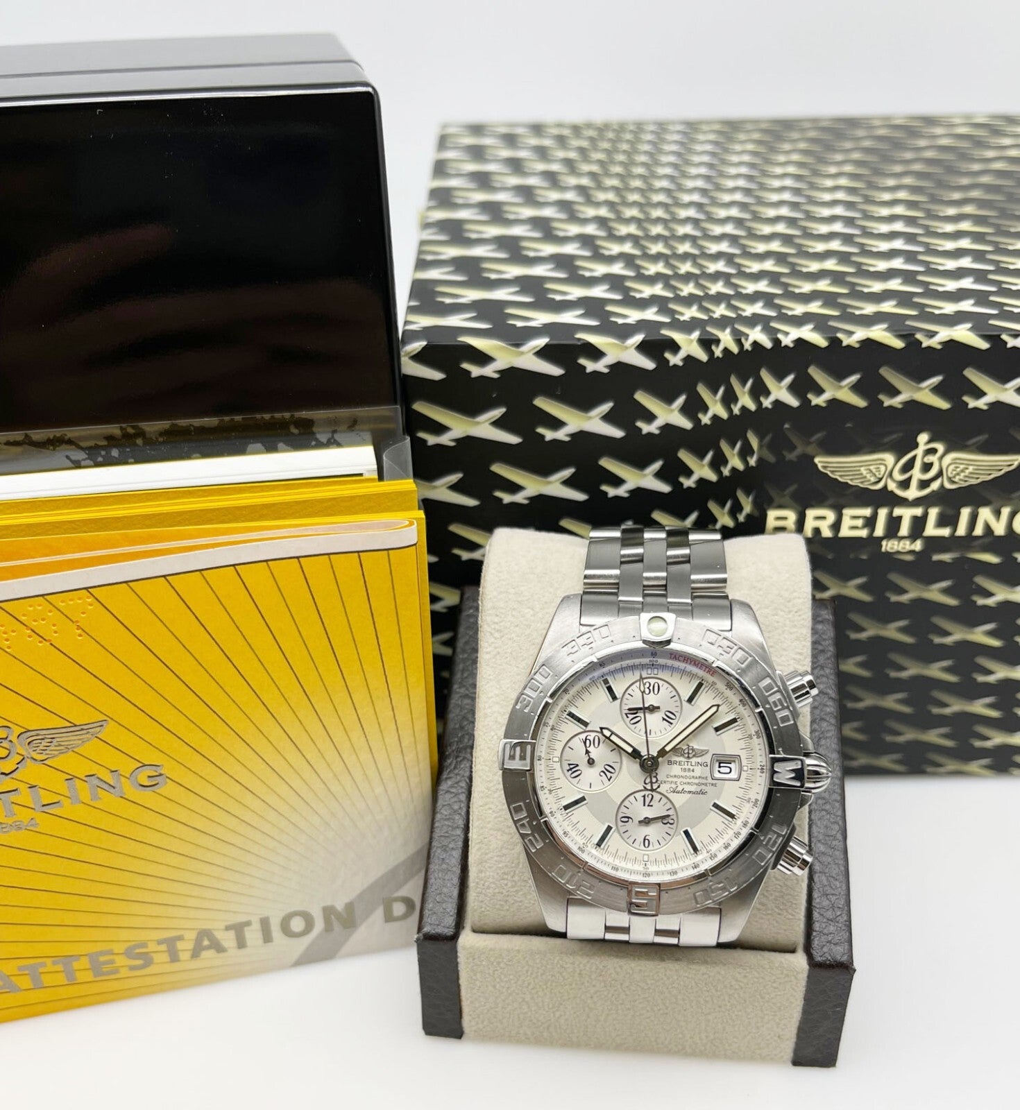 Breitling Galactic A13364 Chronograph II Silver Dial Steel 44mm Box Paper