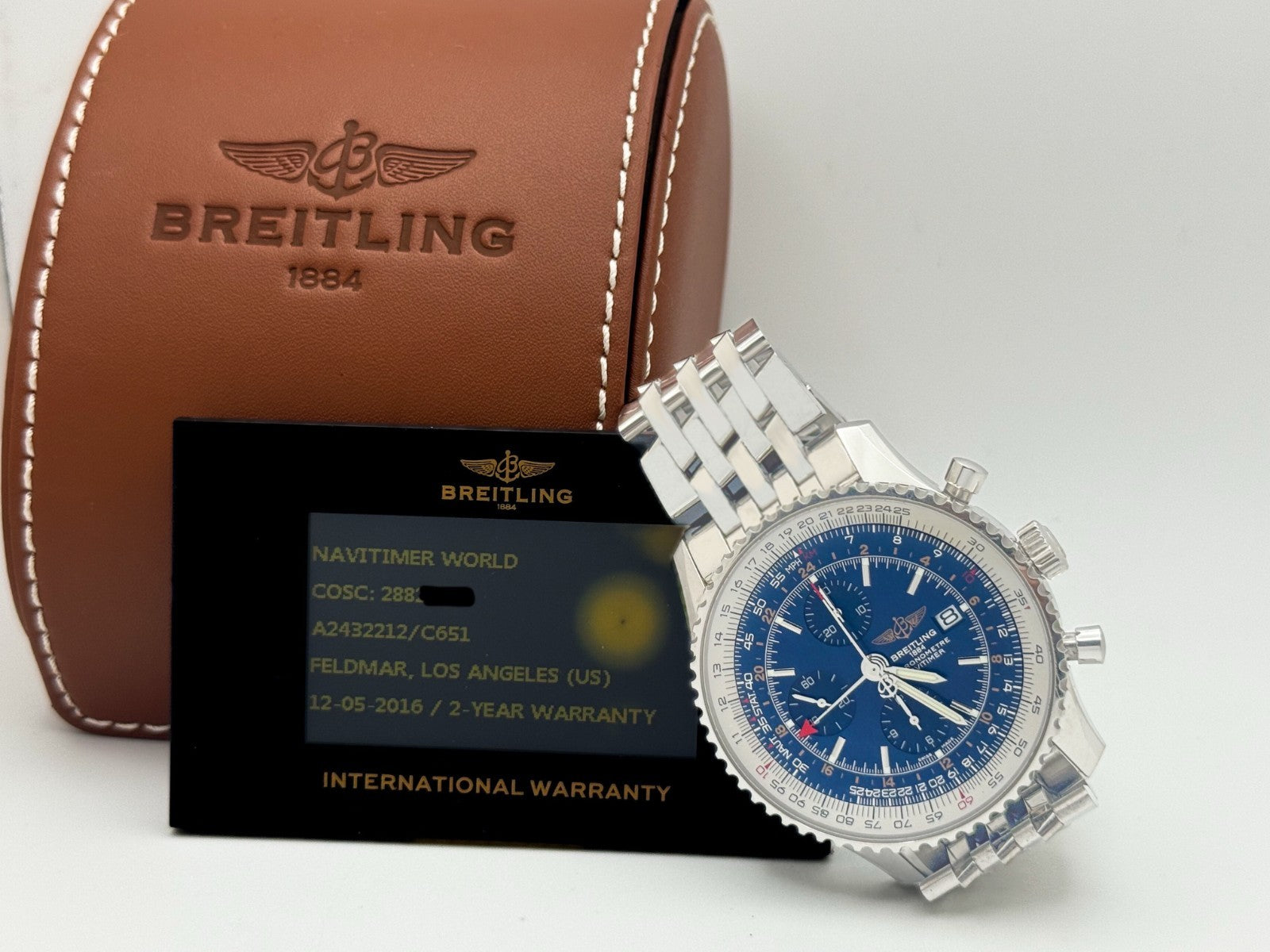 Breitling Navitimer World A24322 46mm Blue Dial Stainless Steel Box Paper