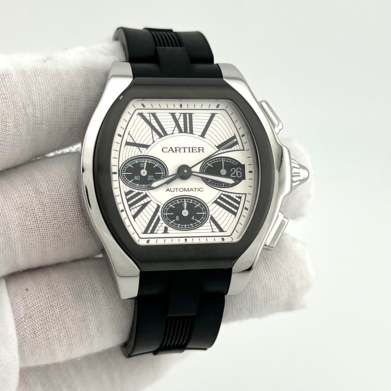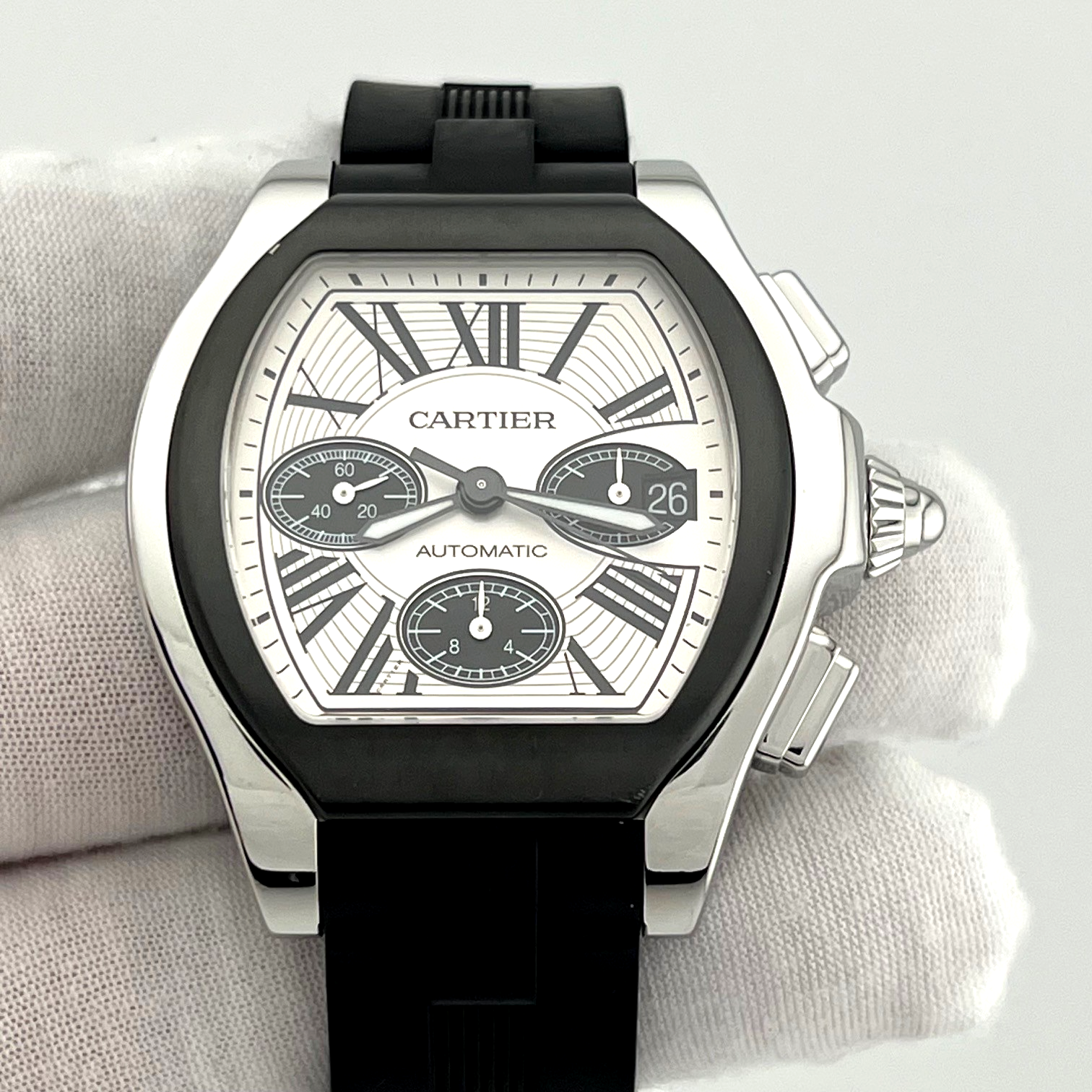 Cartier Roadster Chronograph XL W6206020 44mm Ref 3405 Stainless Steel Cartier Sale! from 799500 /per This item is a recurring or deferred purchase. By continuing, I agree to the cancellation policy and authorize you to charge my payment method at the prices, frequency and dates listed on this page until my order is fulfilled or I cancel, if permitted. +1 (619) 232-1273 This item is currently on backorder but you can still purchase it now and we'll ship as soon as more become available. Style Number: W6206020 / 3405Serial: 1795****Year: 2001 - 2012 Model: Cartier Roadster Chronograph XL Case Material: Stainless Steel Band: Black Rubber Bezel: Black Ion Plated Steel Dial: White Crystal: Sapphire Case Size: 44mm Includes: -Elegant Watch Box-Certified Appraisal -1 Year WarrantySKU 23037 / 16900TSD