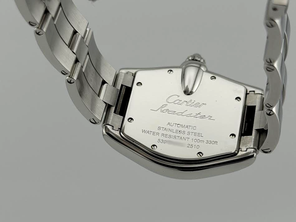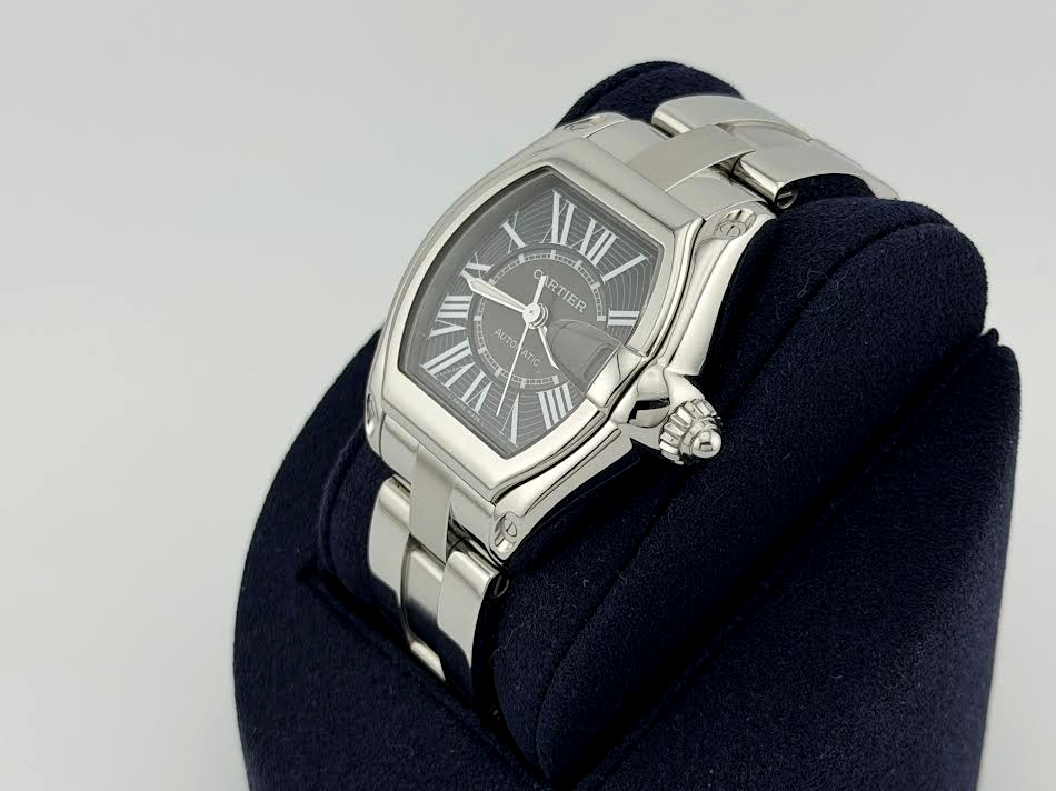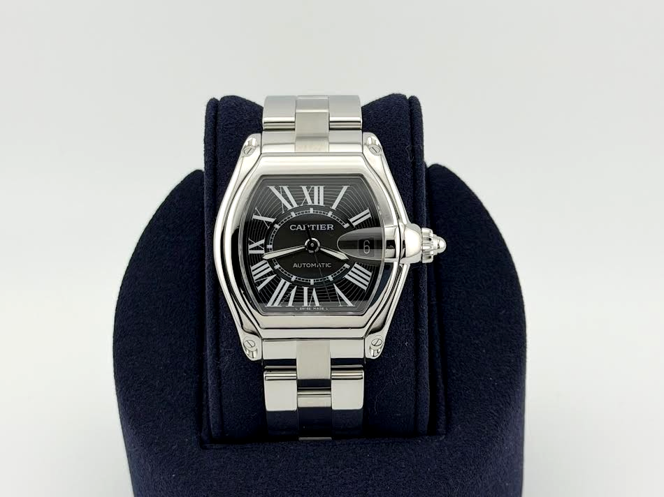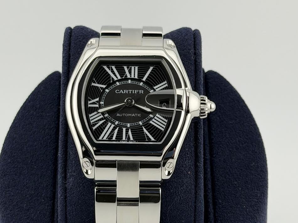 Cartier Roadster W62041V3 2510 38mm Black Roman Dial Stainless Steel Cartier Sale! from 419500 /per This item is a recurring or deferred purchase. By continuing, I agree to the cancellation policy and authorize you to charge my payment method at the prices, frequency and dates listed on this page until my order is fulfilled or I cancel, if permitted. +1 (619) 232-1273 This item is currently on backorder but you can still purchase it now and we'll ship as soon as more become available. Style Number: W62041V3 / 2510Serial: 5395**** Model: Cartier Roadster Case Material: Stainless Steel Band: Stainless Steel Bezel: Stainless Steel Dial: Black Roman Numeral Dial Crystal: Sapphire Case Size: 38mm Includes: -Cartier Box-Certified Appraisal -1 Year WarrantySKU 23073 / 16540TLK091825