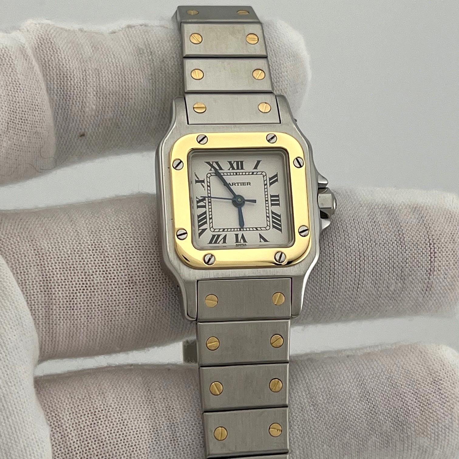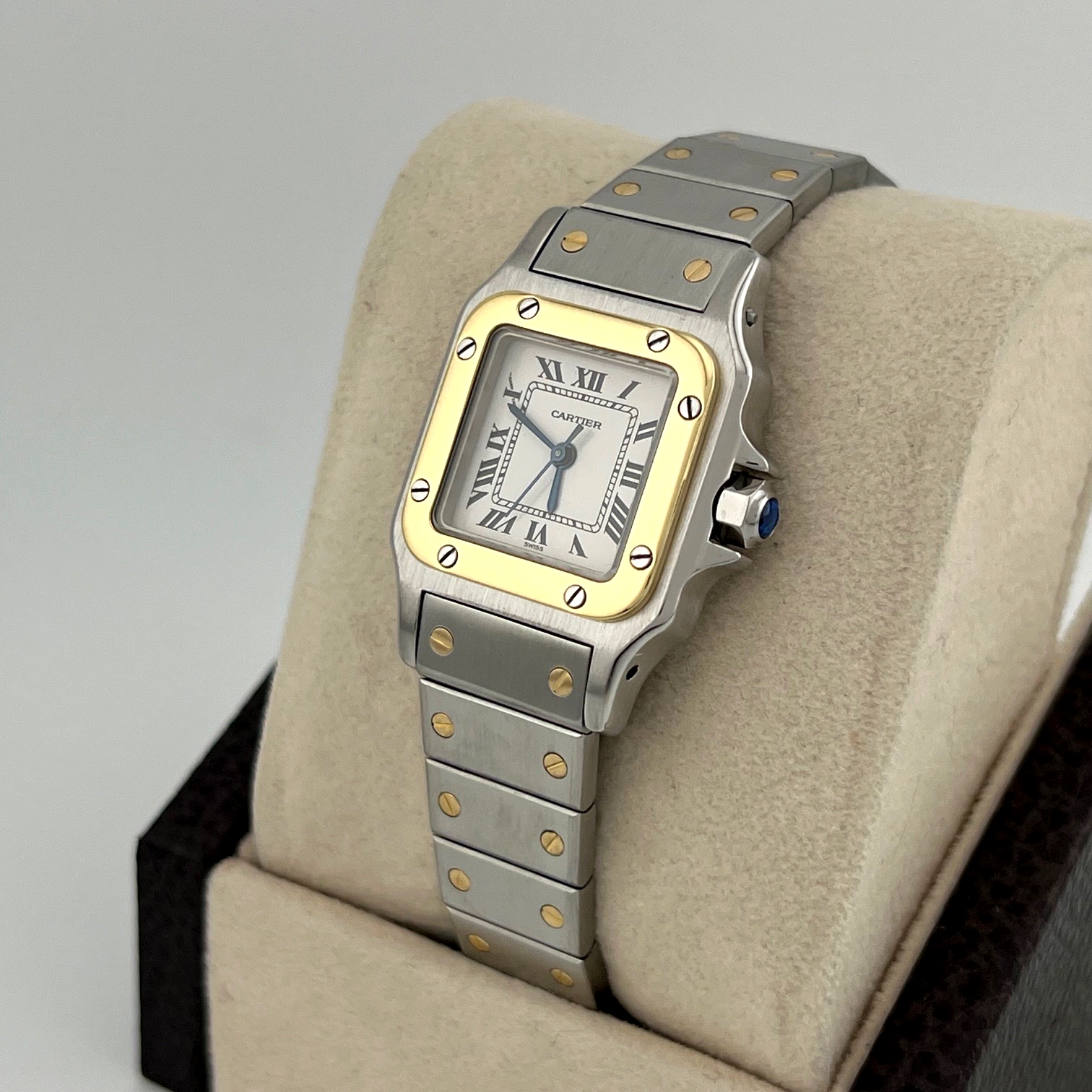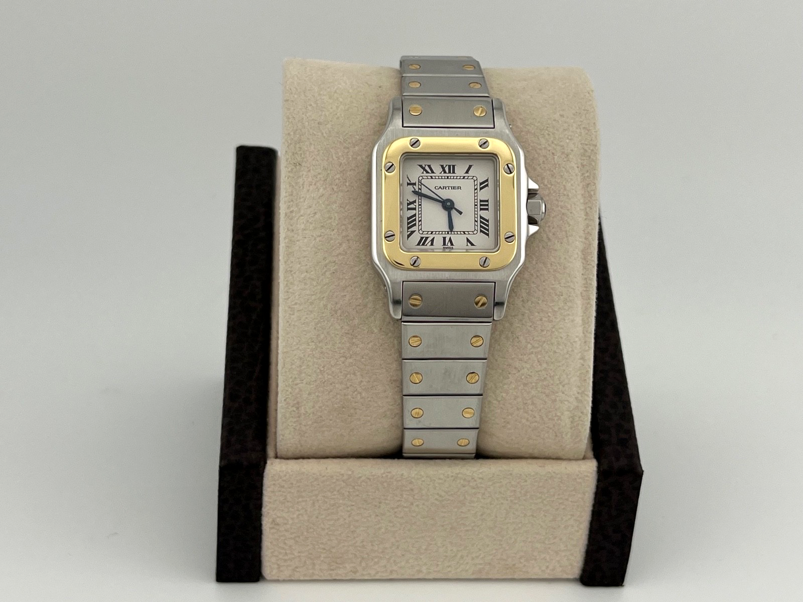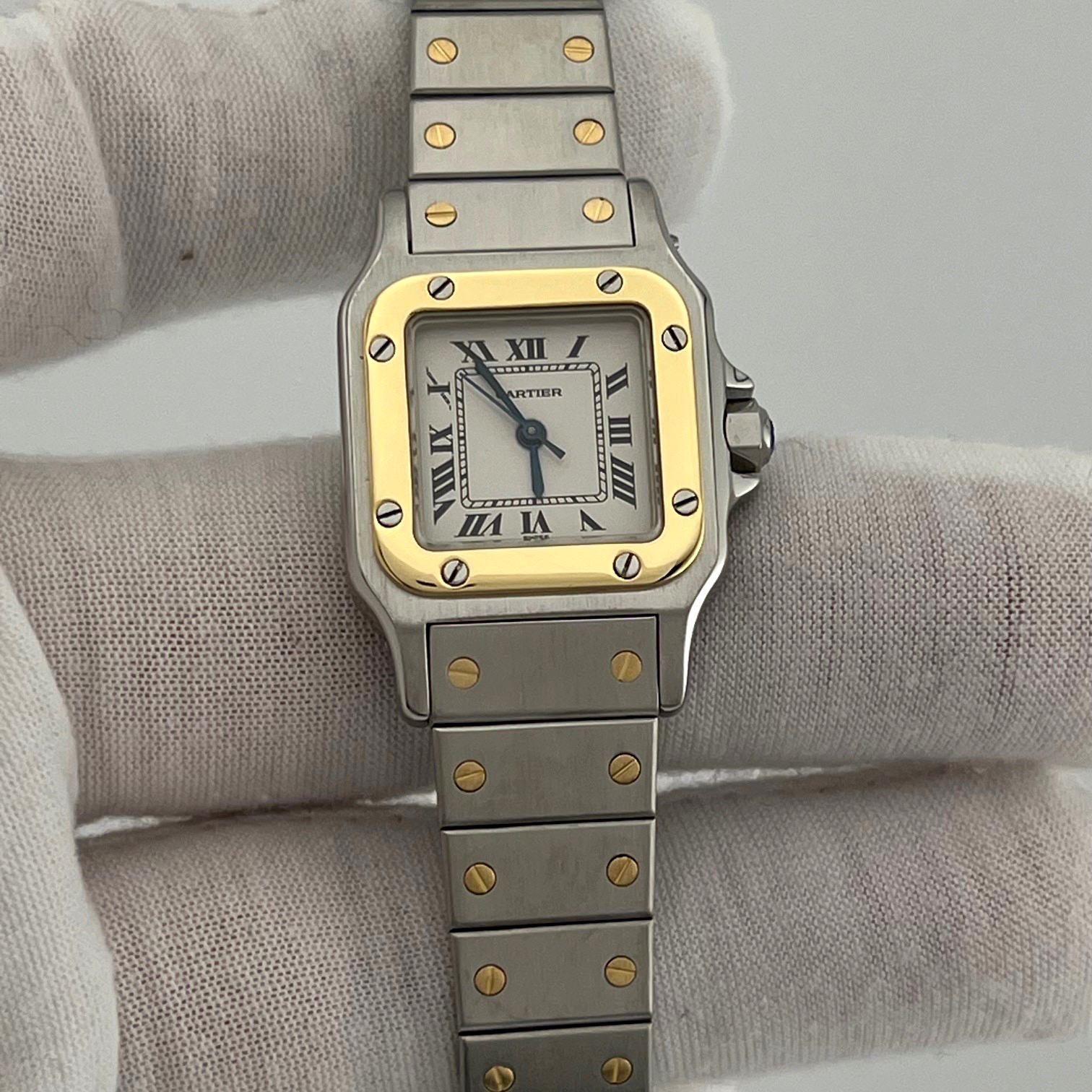 Cartier Santos Galbee Ladies 0902 24mm White Dial 18k Gold Stainless Steel