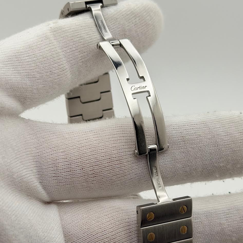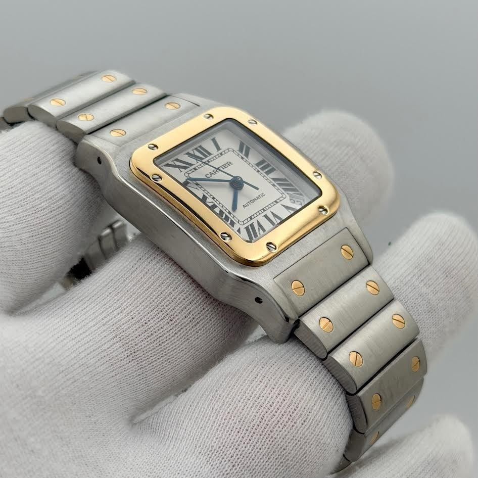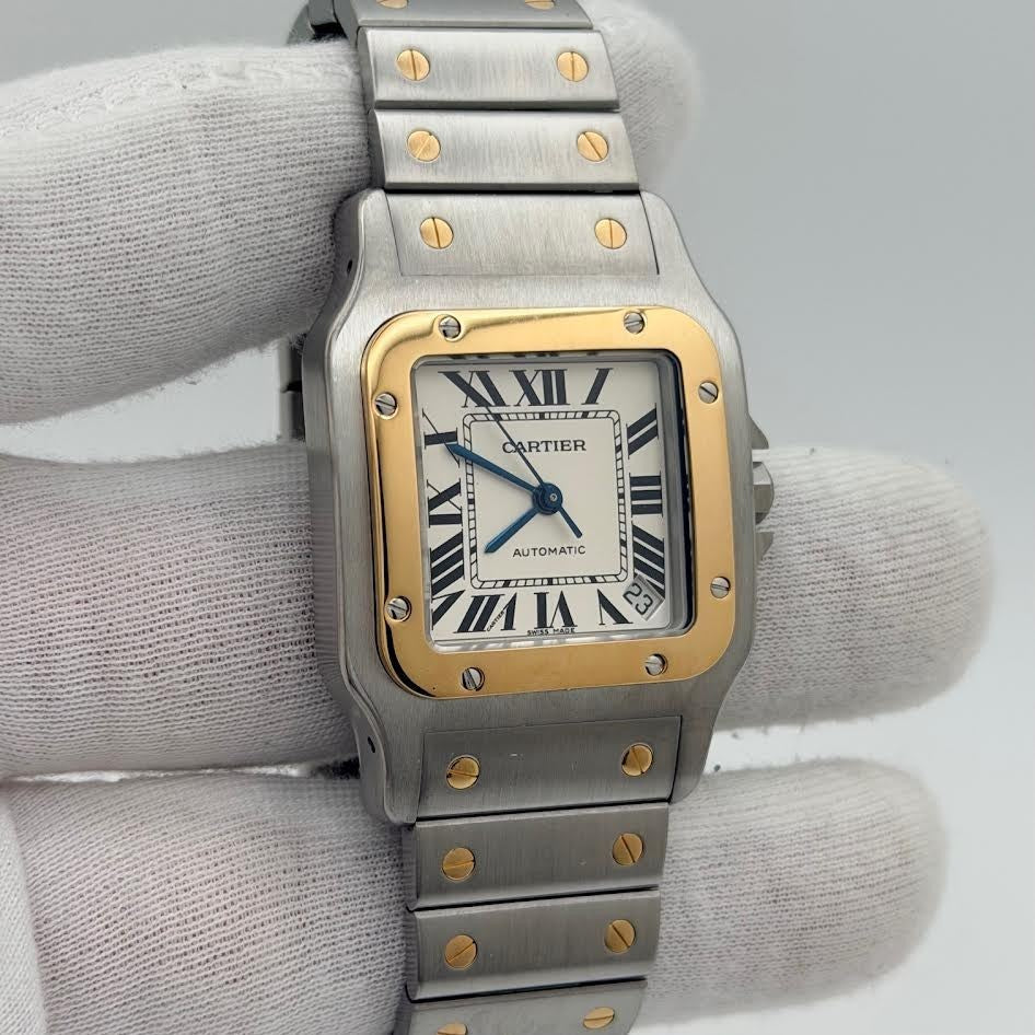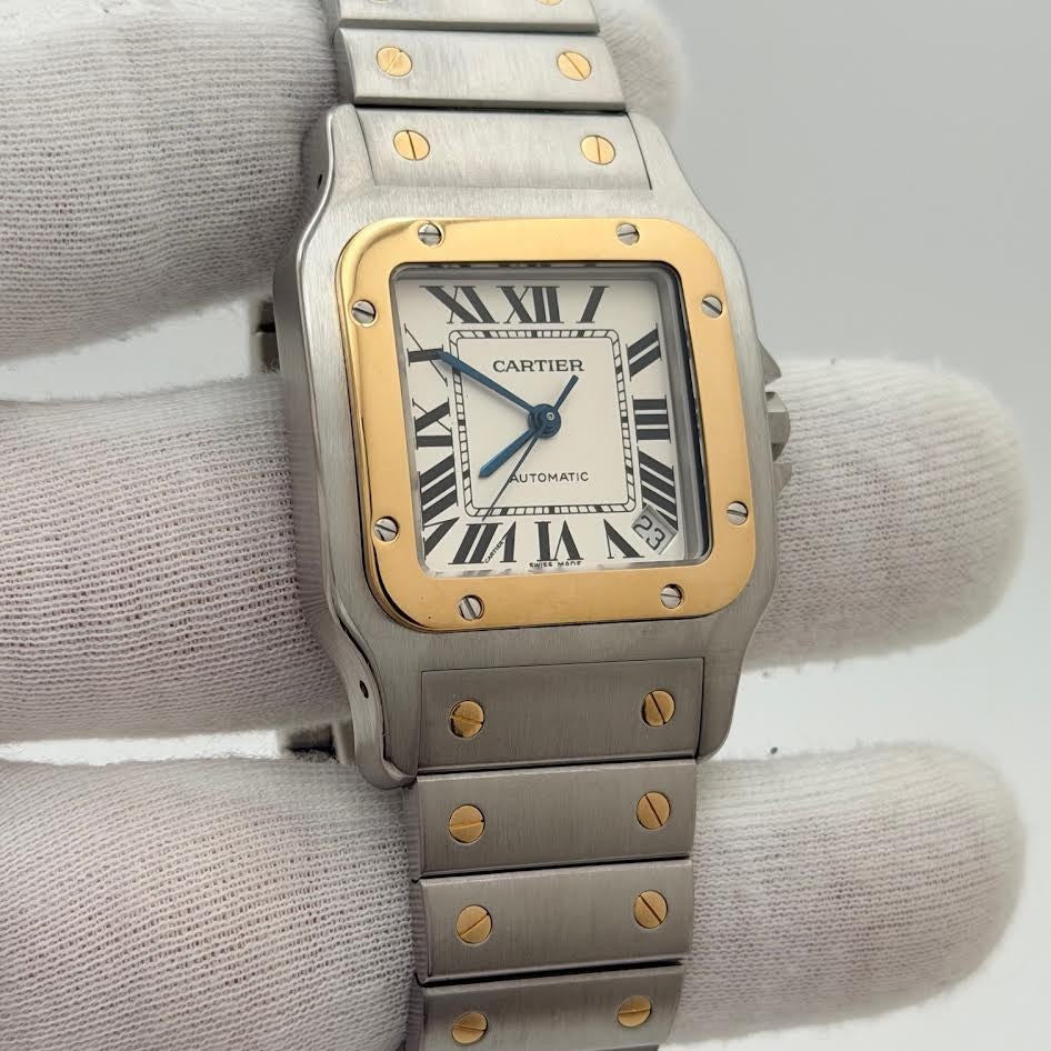 Cartier Santos Galbee XL 2823 32mm White Roman Dial 18k Yellow Gold Steel Cartier Sale! from 689500 /per This item is a recurring or deferred purchase. By continuing, I agree to the cancellation policy and authorize you to charge my payment method at the prices, frequency and dates listed on this page until my order is fulfilled or I cancel, if permitted. +1 (619) 232-1273 This item is currently on backorder but you can still purchase it now and we'll ship as soon as more become available. Style Number: 2823Serial: 853***Year: ~Est. 2000-2010 Model: Cartier Santos Galbee Case Material: Stainless Steel Band: 18k Yellow Gold & Stainless Steel Bezel: 18k Yellow Gold Dial: White Roman Numeral Dial Crystal: Sapphire Case Size: 32mm Includes: -Elegant Watch Box & Cartier Watch Pouch-Certified Appraisal -1 Year WarrantySKU 23219 / 113185TJD100725
