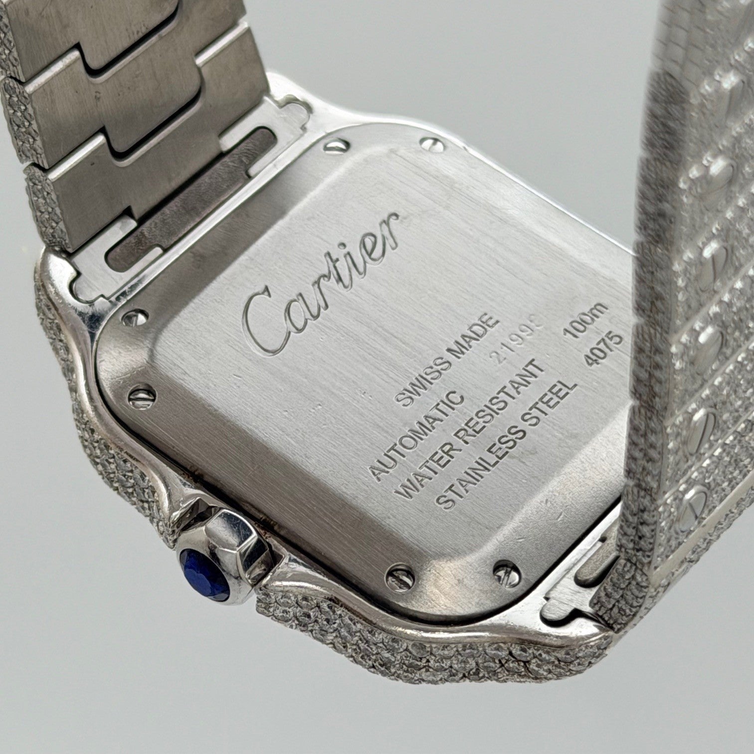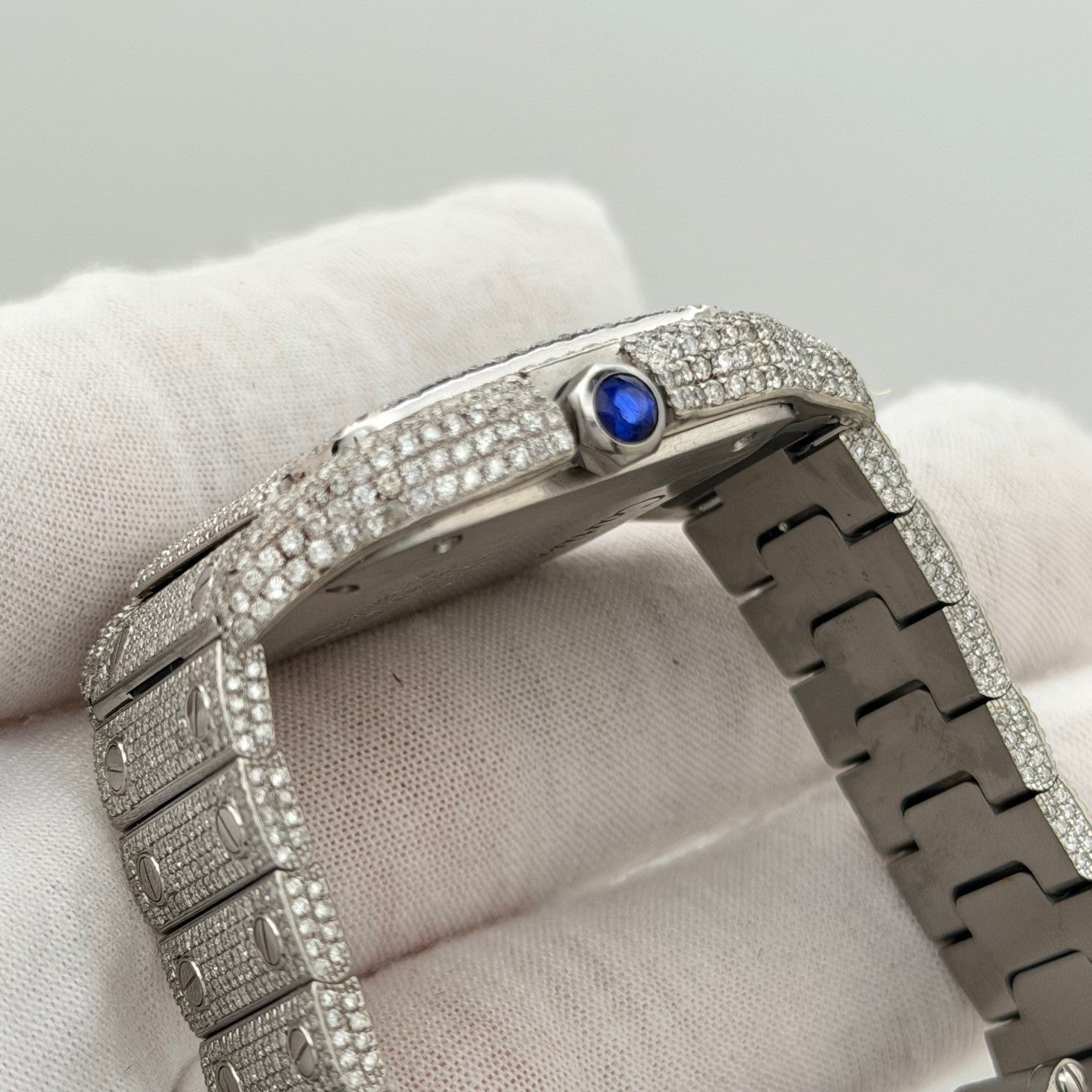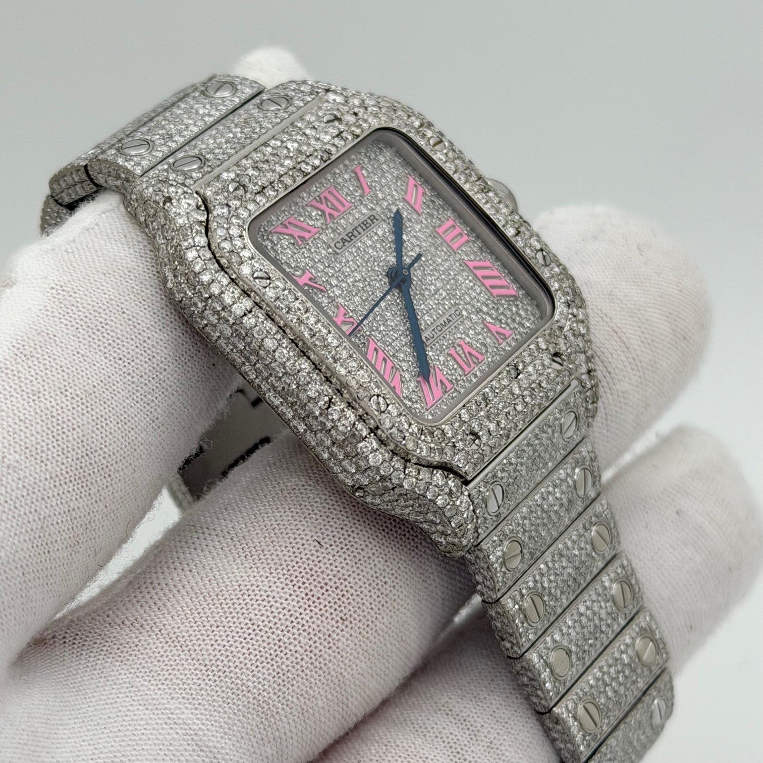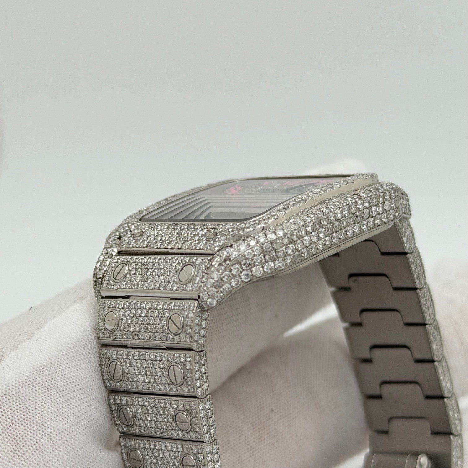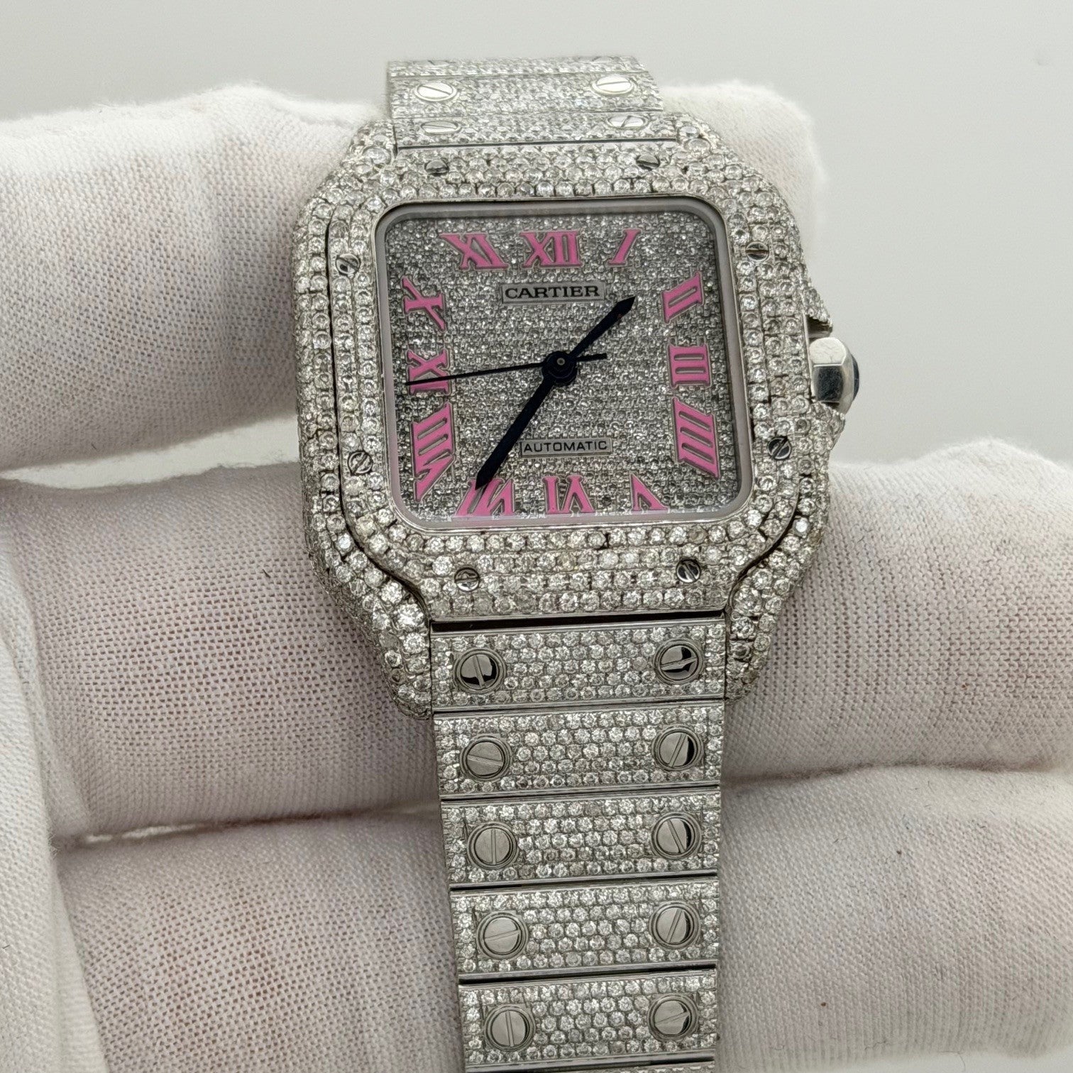 Cartier Santos Medium WSSA0029 35mm Diamond Case Bezel Iced Out Box Paper Cartier Sale! from 1199500 /per This item is a recurring or deferred purchase. By continuing, I agree to the cancellation policy and authorize you to charge my payment method at the prices, frequency and dates listed on this page until my order is fulfilled or I cancel, if permitted. +1 (619) 232-1273 This item is currently on backorder but you can still purchase it now and we'll ship as soon as more become available. Style Number: WSSA0029Serial: 40752119*****Year: 2021 Model: Cartier Santos Medium Iced Out / Bust Down Case Material: Custom Diamond Encrusted Stainless Steel Case Band: Custom Diamond Encrusted Stainless Steel Bracelet Bezel: Custom Diamond Bezel Dial: Custom Pavé Diamond Dial with Pink Roman Numerals Crystal: Sapphire Case Size: 35mm Includes: -Cartier Box & Card-Certified Appraisal -1 Year WarrantySKU 23209 / 115165TGC101325