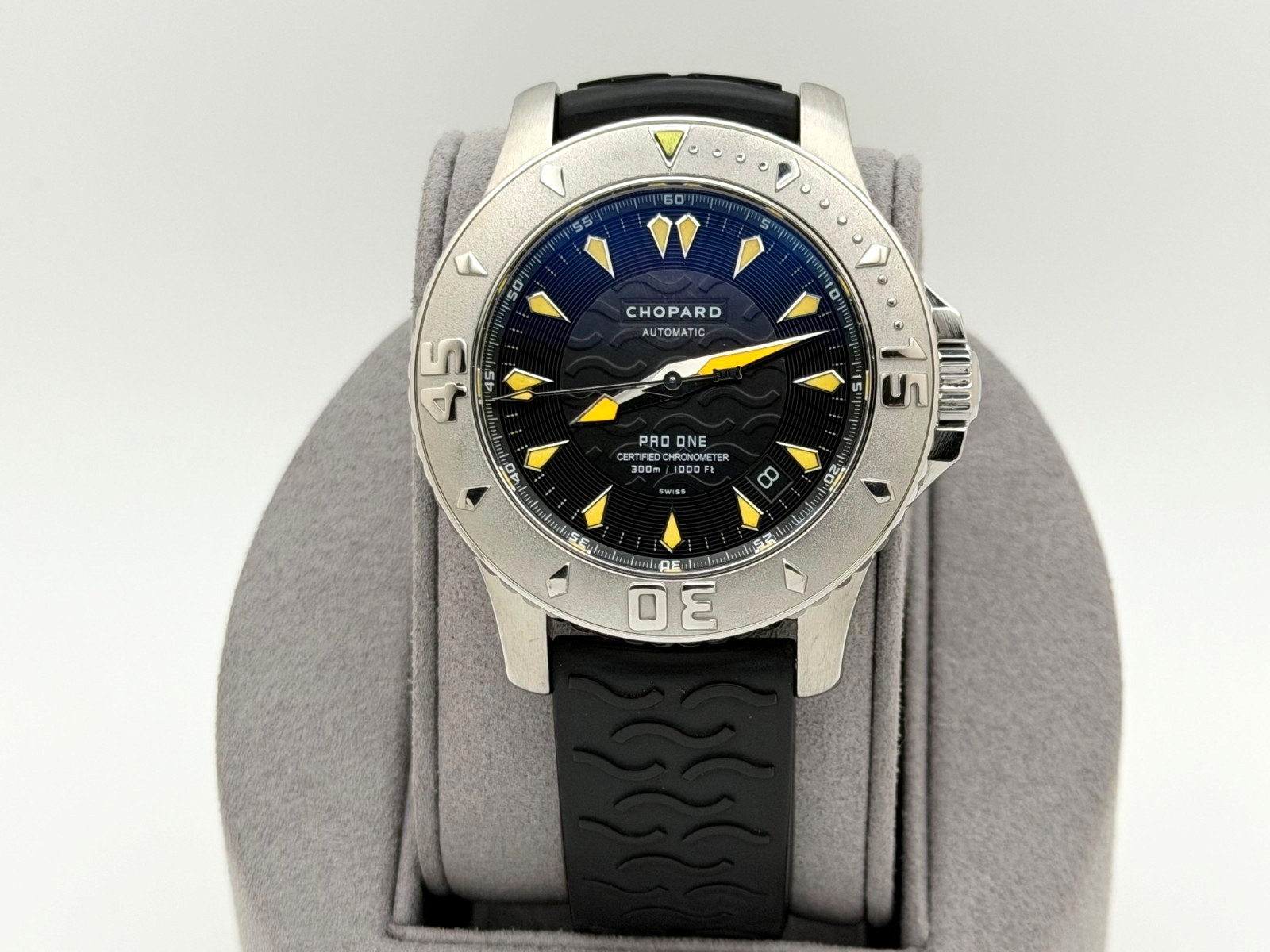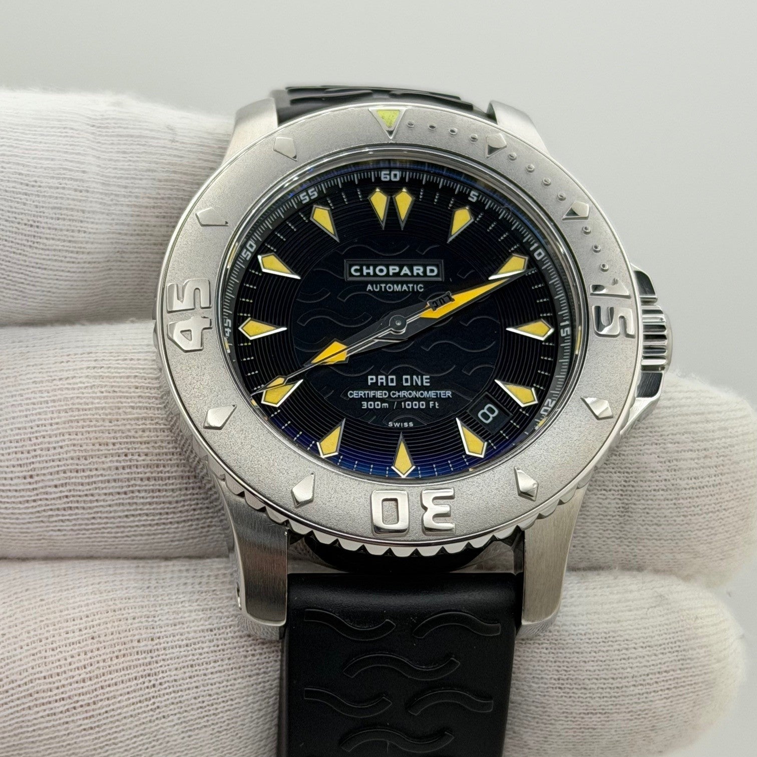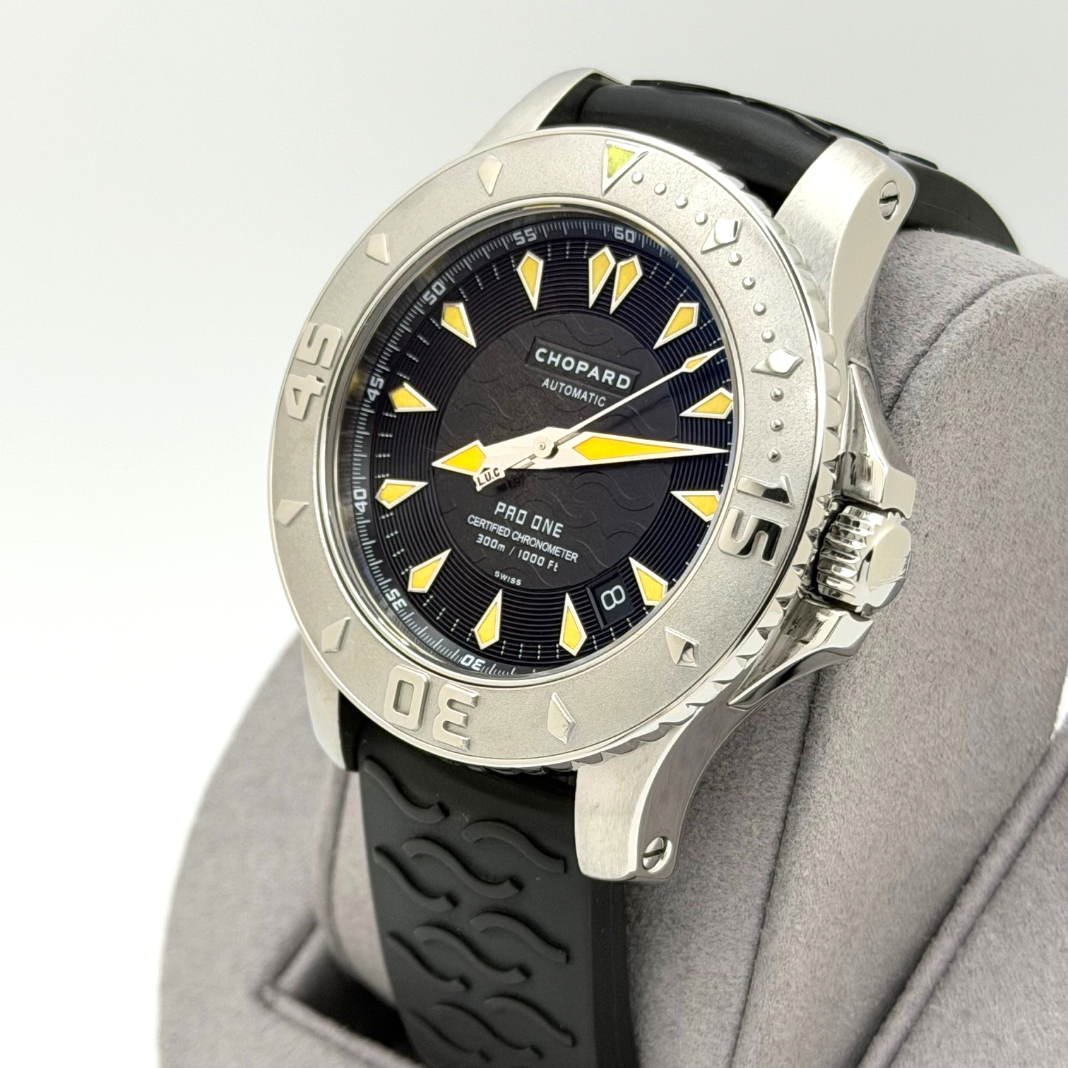 Chopard Pro One LUC 8912 42mm Stainless Steel Black Dial Rubber Strap Chopard Sale! from 389500 /per This item is a recurring or deferred purchase. By continuing, I agree to the cancellation policy and authorize you to charge my payment method at the prices, frequency and dates listed on this page until my order is fulfilled or I cancel, if permitted. +1 (619) 232-1273 This item is currently on backorder but you can still purchase it now and we'll ship as soon as more become available.