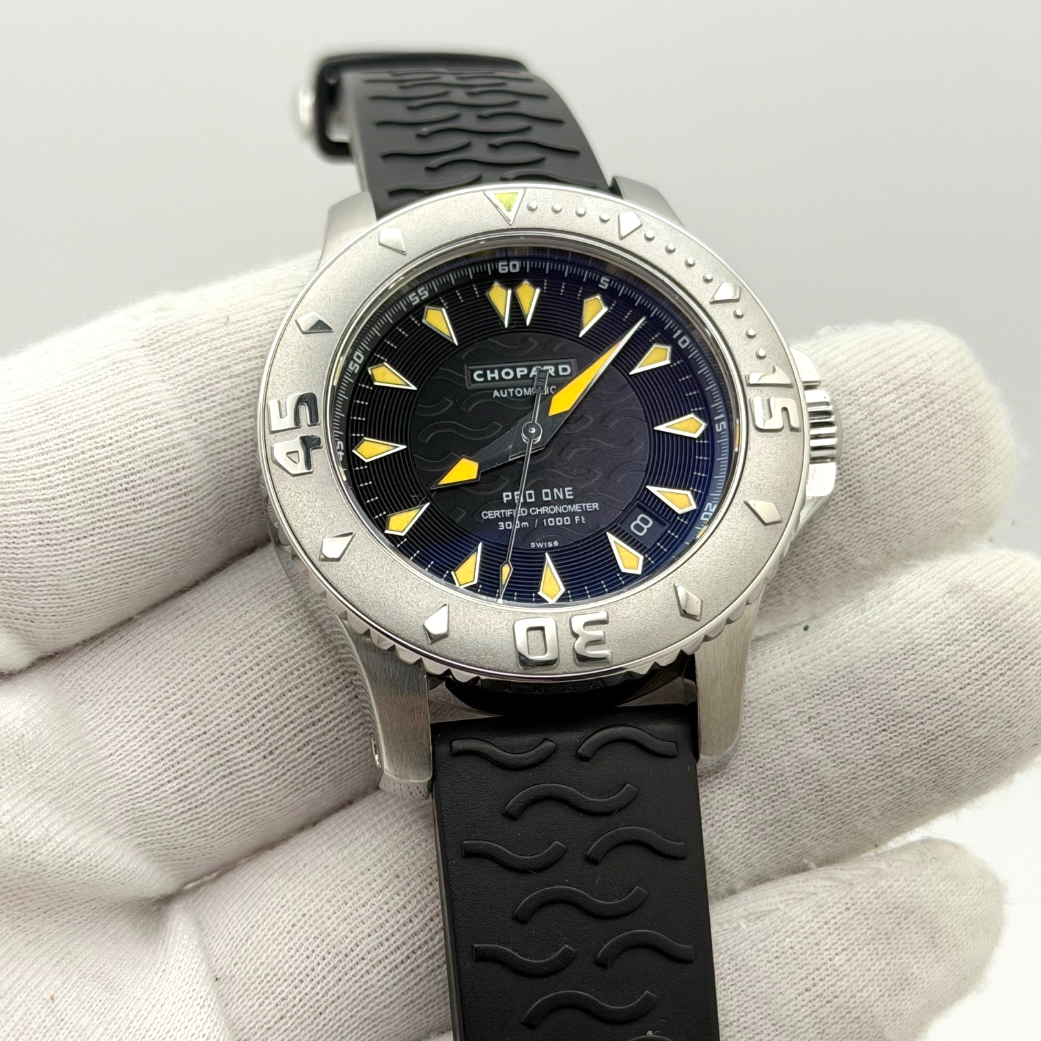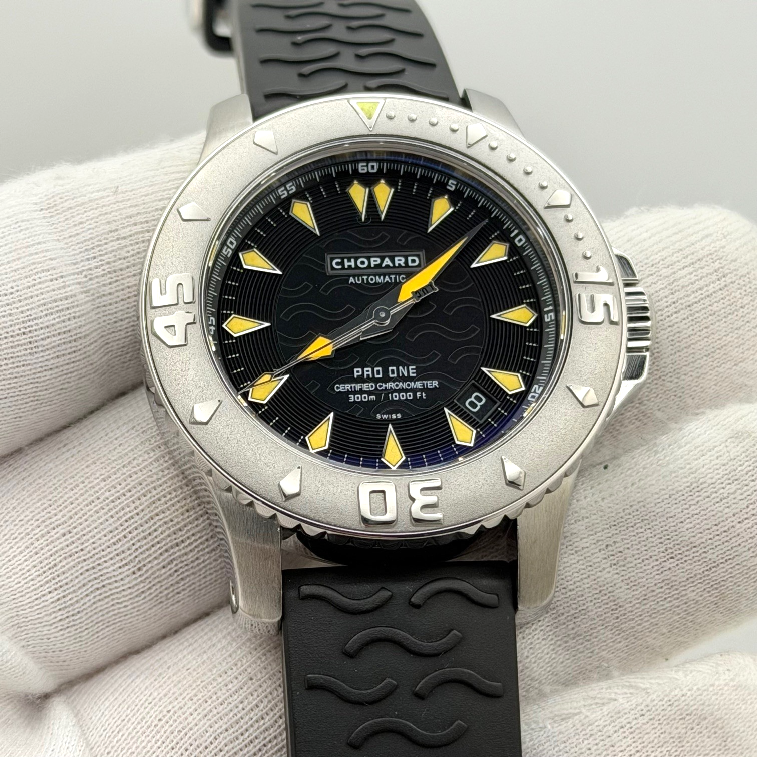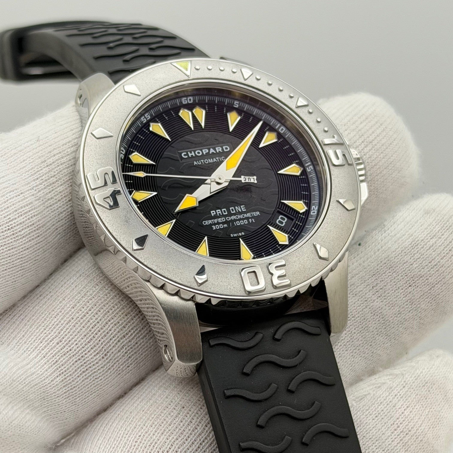 Chopard Pro One LUC 8912 42mm Stainless Steel Black Dial Rubber Strap Chopard Sale! from 389500 /per This item is a recurring or deferred purchase. By continuing, I agree to the cancellation policy and authorize you to charge my payment method at the prices, frequency and dates listed on this page until my order is fulfilled or I cancel, if permitted. +1 (619) 232-1273 This item is currently on backorder but you can still purchase it now and we'll ship as soon as more become available.