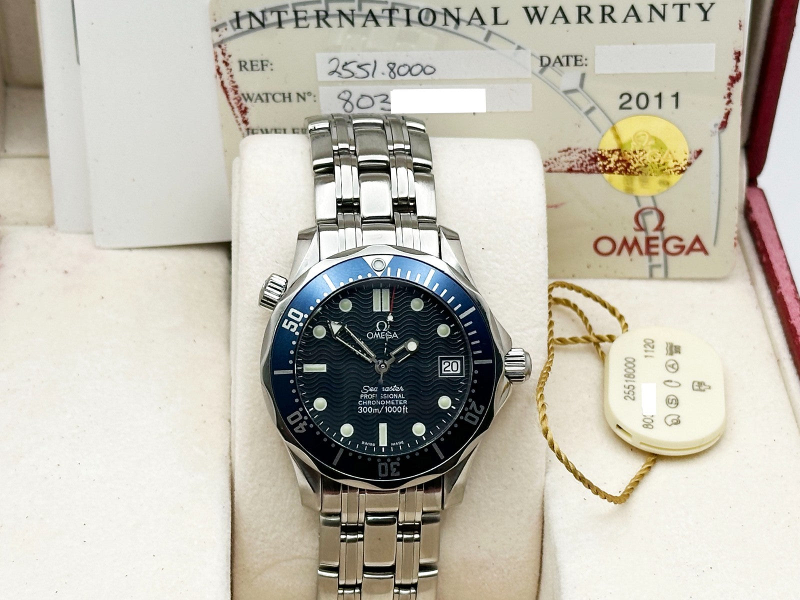 Omega Seamaster 300M 2551.80 36mm Stainless Steel Box Papers OMEGA Sale! from 339500 /per This item is a recurring or deferred purchase. By continuing, I agree to the cancellation policy and authorize you to charge my payment method at the prices, frequency and dates listed on this page until my order is fulfilled or I cancel, if permitted. +1 (619) 232-1273 This item is currently on backorder but you can still purchase it now and we'll ship as soon as more become available. Style Number: 2551.80.00 Model: Omega Seamaster 300M Case Material: Stainless Steel Band: Stainless Steel Bezel: Blue Bezel Dial: Blue Dial Face: Sapphire Crystal Case Size: 36mm Includes: -Omega Box & Paper-Certified Appraisal -1 Year WarrantySKU 22500 / 13990TCF051425