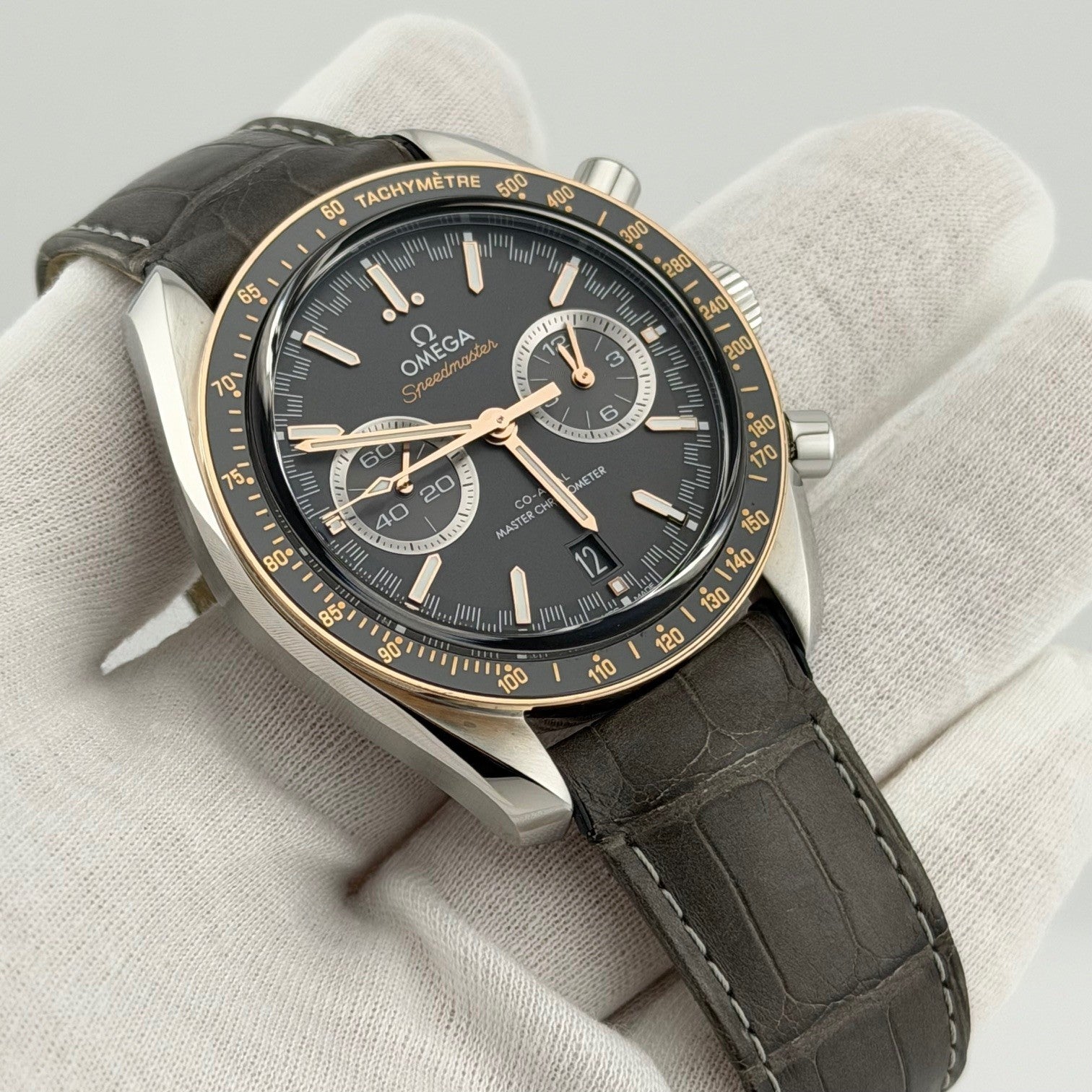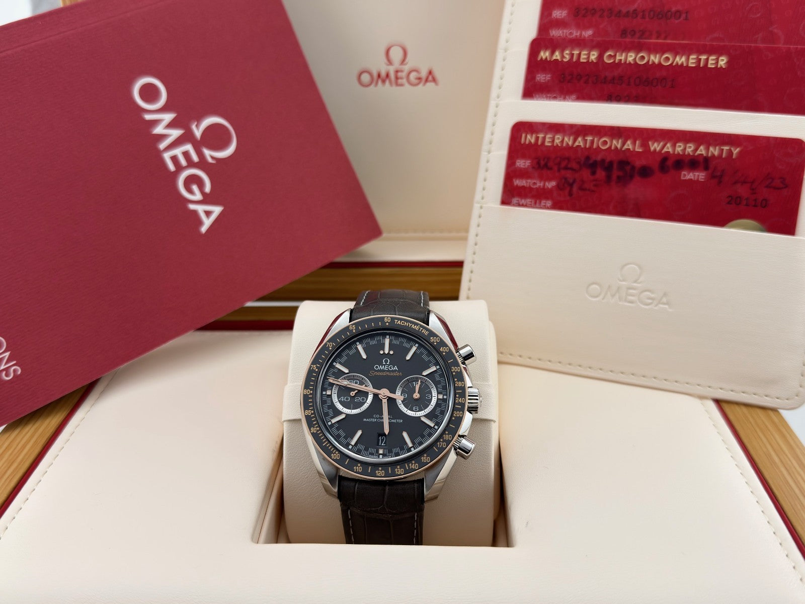 Omega Speedmaster Racing 329.23.44.51.06.001 44mm 18K Sedna Gold Steel Box Paper