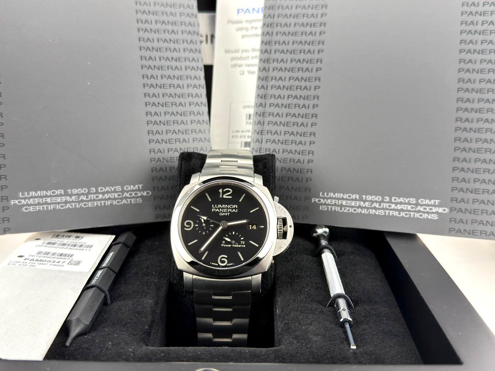 Panerai Luminor 1950 3 Days GMT Power Reserve PAM00347 PAM 347 44mm Box Paper Panerai Sale! from 589500 /per This item is a recurring or deferred purchase. By continuing, I agree to the cancellation policy and authorize you to charge my payment method at the prices, frequency and dates listed on this page until my order is fulfilled or I cancel, if permitted. +1 (619) 232-1273 This item is currently on backorder but you can still purchase it now and we'll ship as soon as more become available. Style Number: PAM00347 / PAM 347Serial: SM303****Year: 2014 Model: Panerai Luminor 1950 3 Days GMT Power Reserve Case Material: Stainless Steel Band: Stainless Steel Bezel: Stainless Steel Dial: Black Crystal: Sapphire Case Size: 44mm Includes: -Panerai Box & Paper-Certified Appraisal -1 Year WarrantySKU 21785 / 111130TSH102424