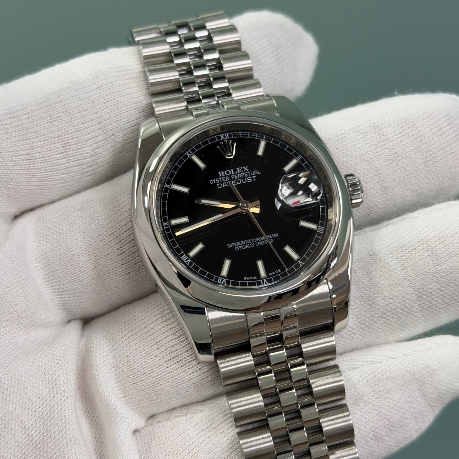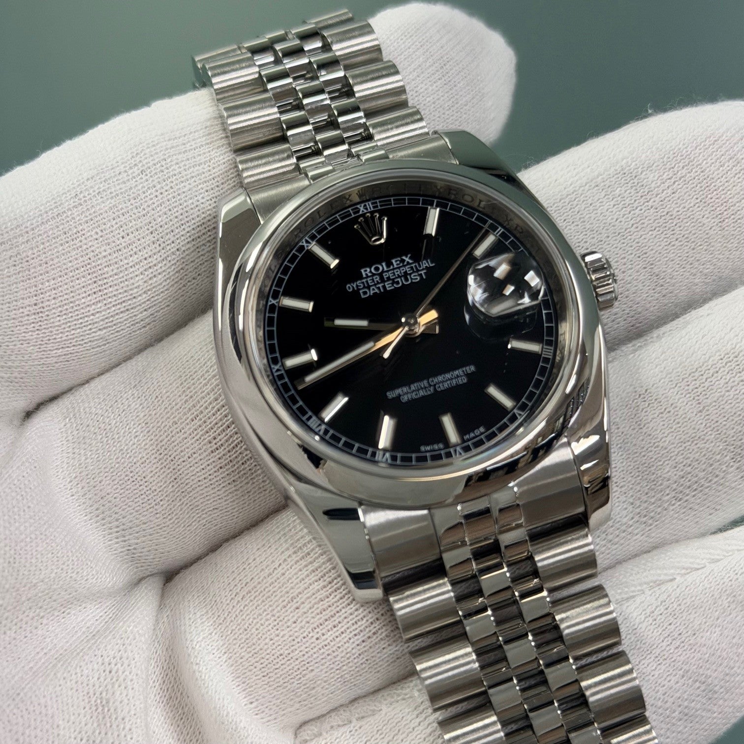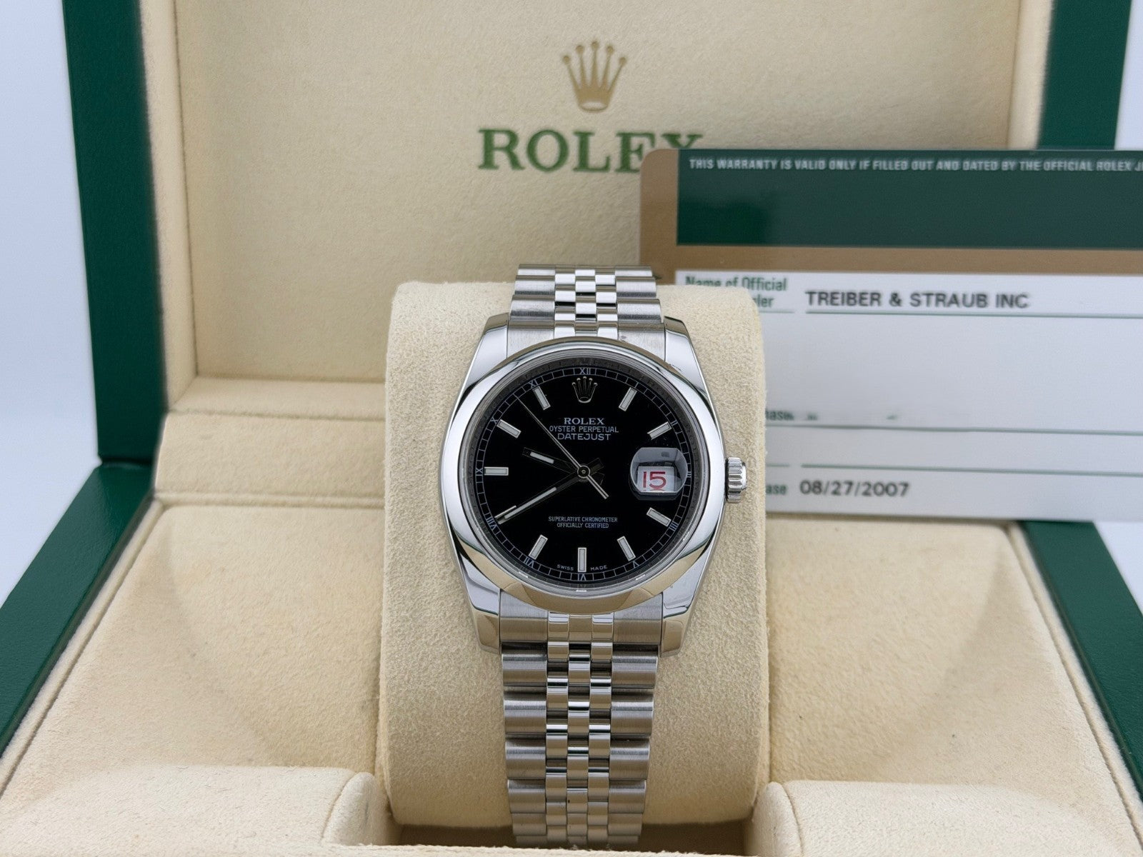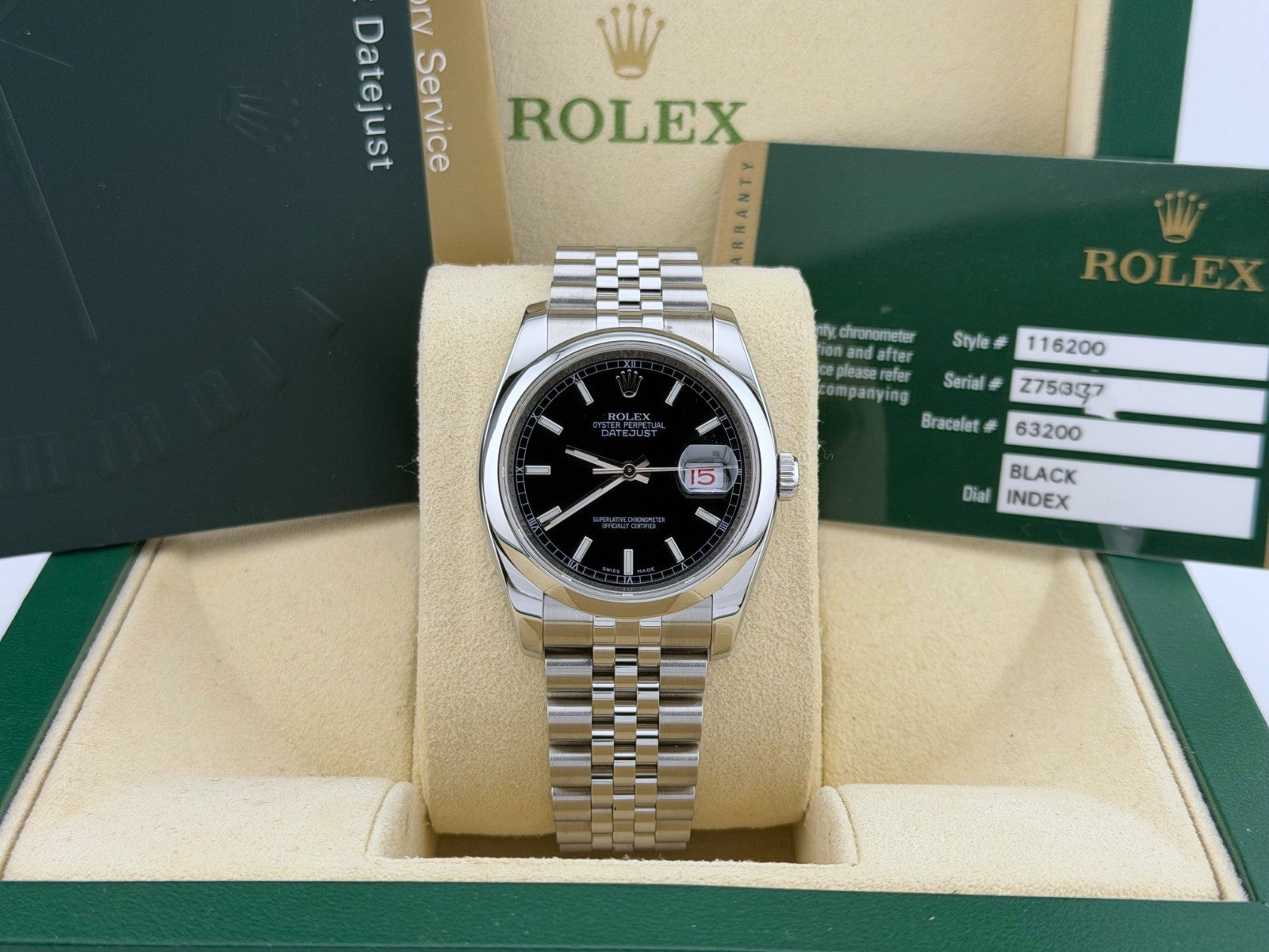Rolex Datejust 116200 36mm Black Dial Roulette Date Steel Jubilee Box Paper