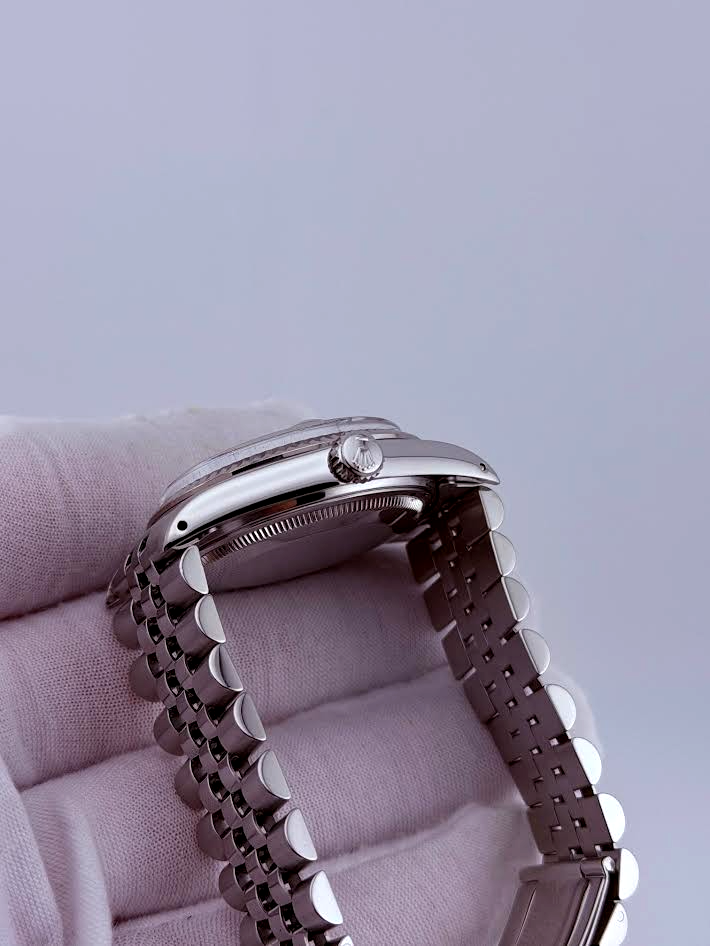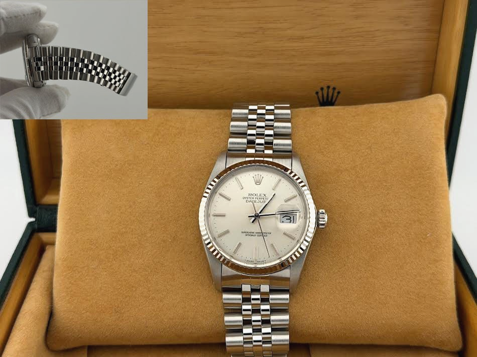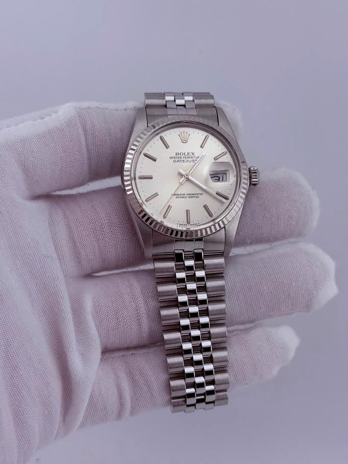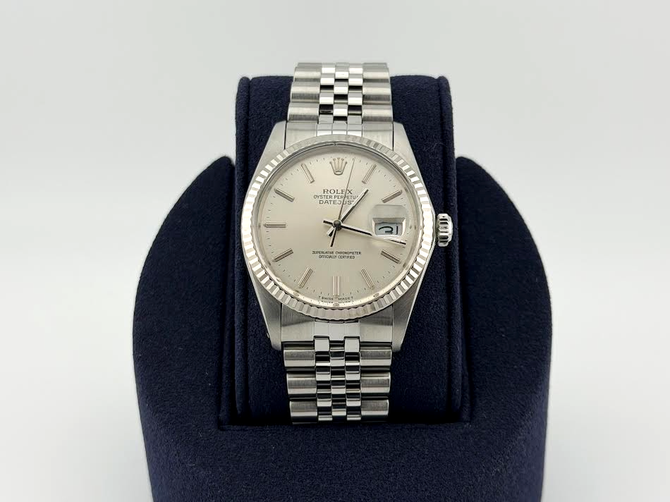 Rolex Datejust 16014 36mm Silver Dial 18k Gold Stainless Steel Jubilee Band Box Rolex Sale! from 619500 /per This item is a recurring or deferred purchase. By continuing, I agree to the cancellation policy and authorize you to charge my payment method at the prices, frequency and dates listed on this page until my order is fulfilled or I cancel, if permitted. +1 (619) 232-1273 This item is currently on backorder but you can still purchase it now and we'll ship as soon as more become available. Style Number: 16014Serial: 881****Year: 1985 Model: Rolex Datejust Case Material: Stainless Steel Band: Stainless Steel Jubilee Bezel: 18k White Gold Fluted Dial: Silver Crystal: Acrylic Case Size: 36mm Includes: - Rolex Box - Certified Appraisal - 1 Year WarrantySKU 22999 / 111730TSTADEN082525