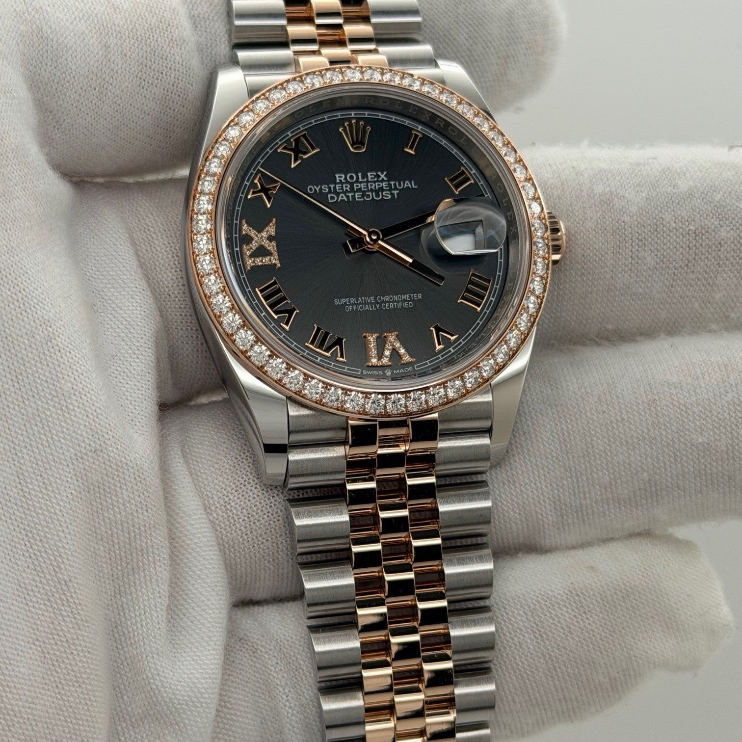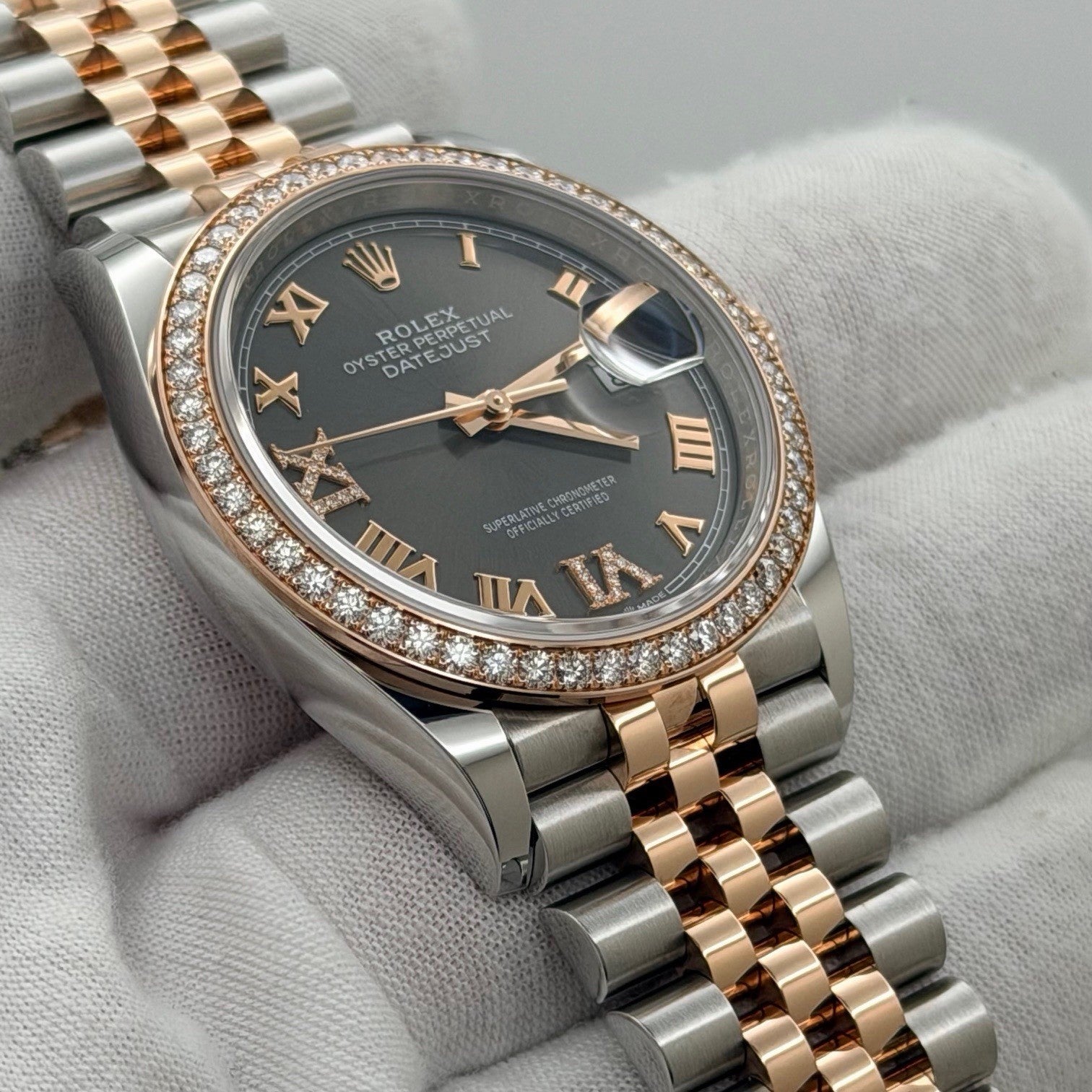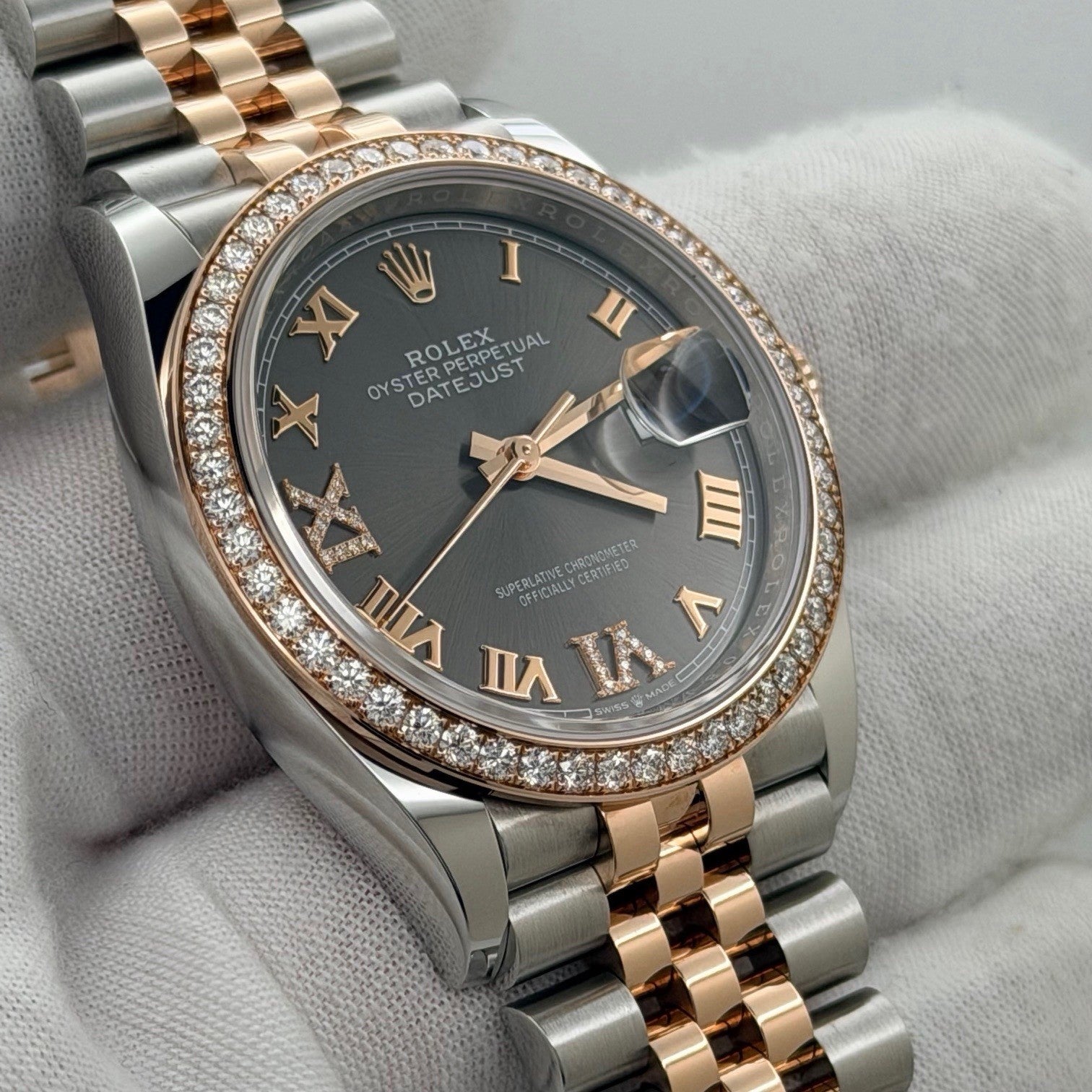 Rolex Datejust 36 126281RBR Slate Diamond Dial Diamond Bezel 18K Rose Gold Steel