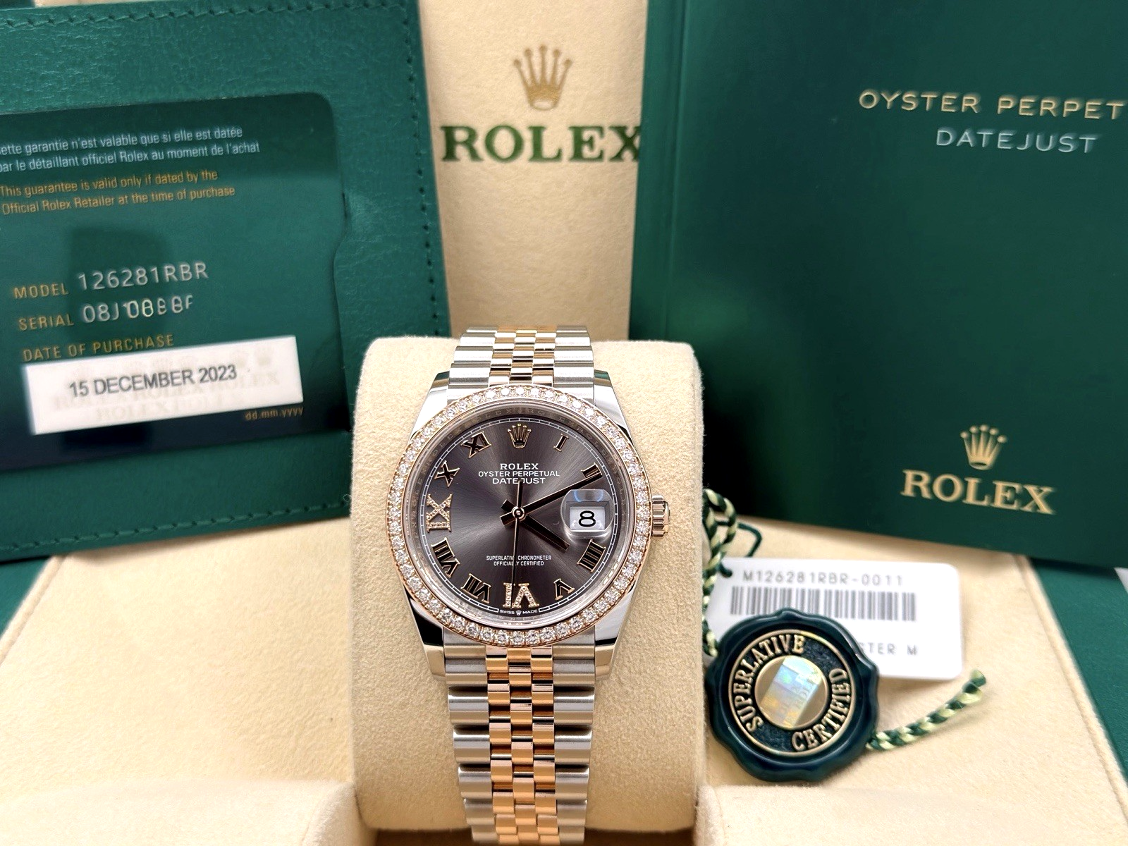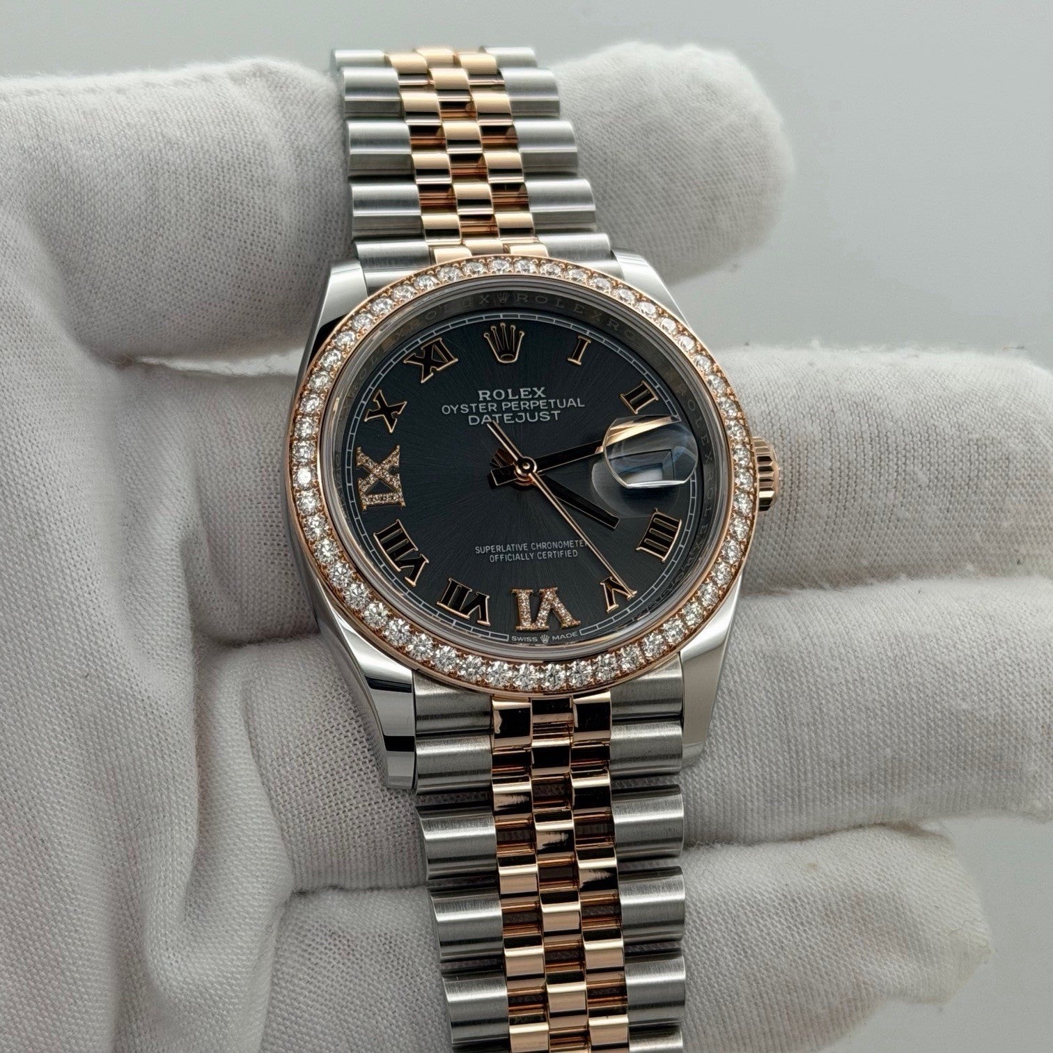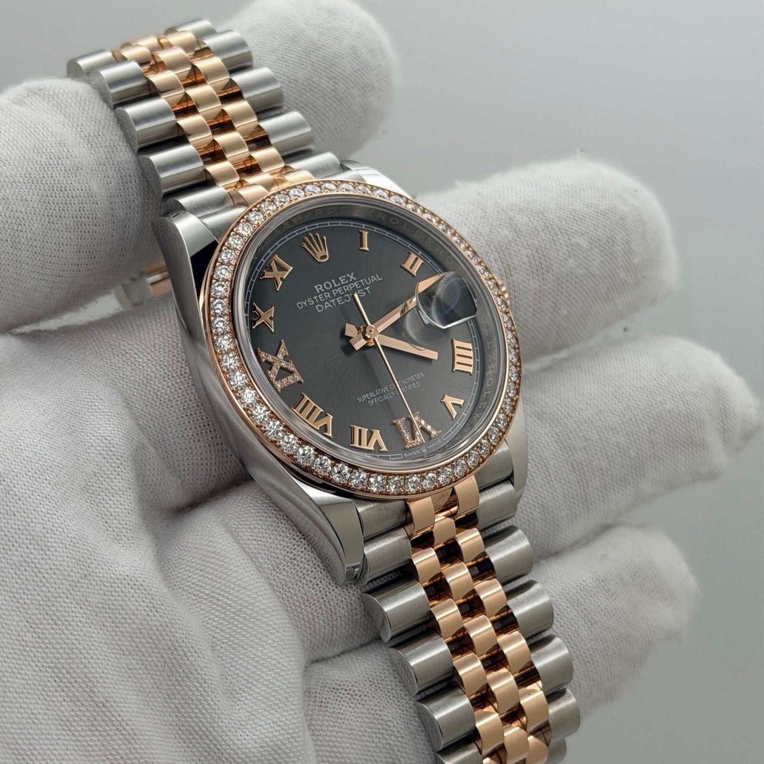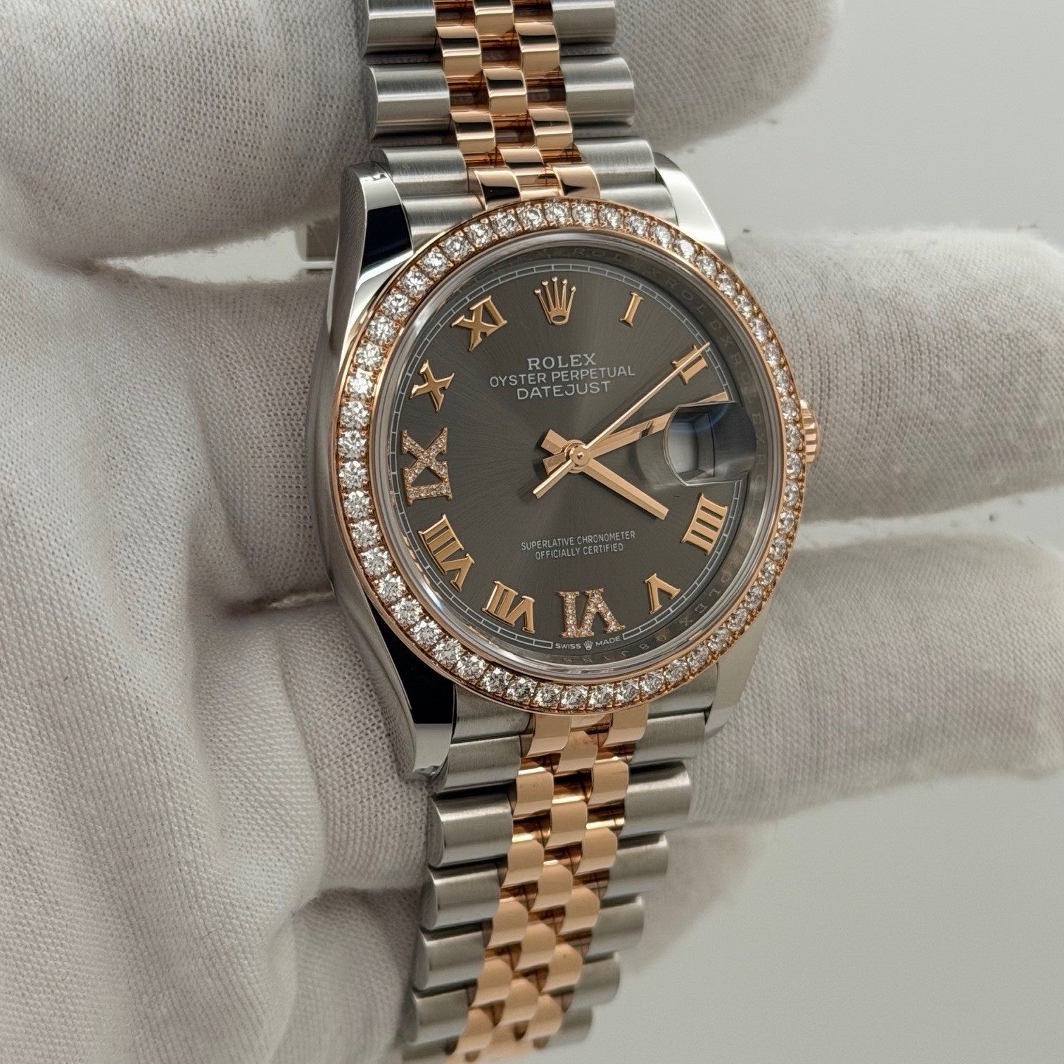 Rolex Datejust 36 126281RBR Slate Diamond Dial Diamond Bezel 18K Rose Gold Steel