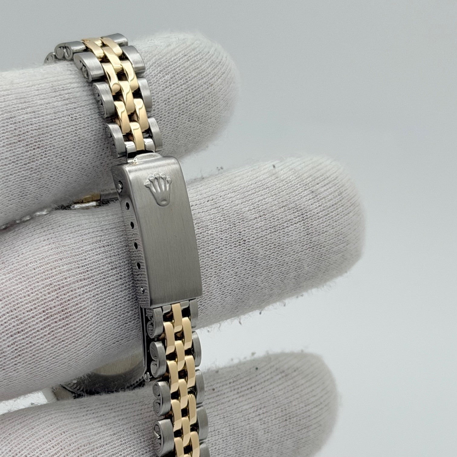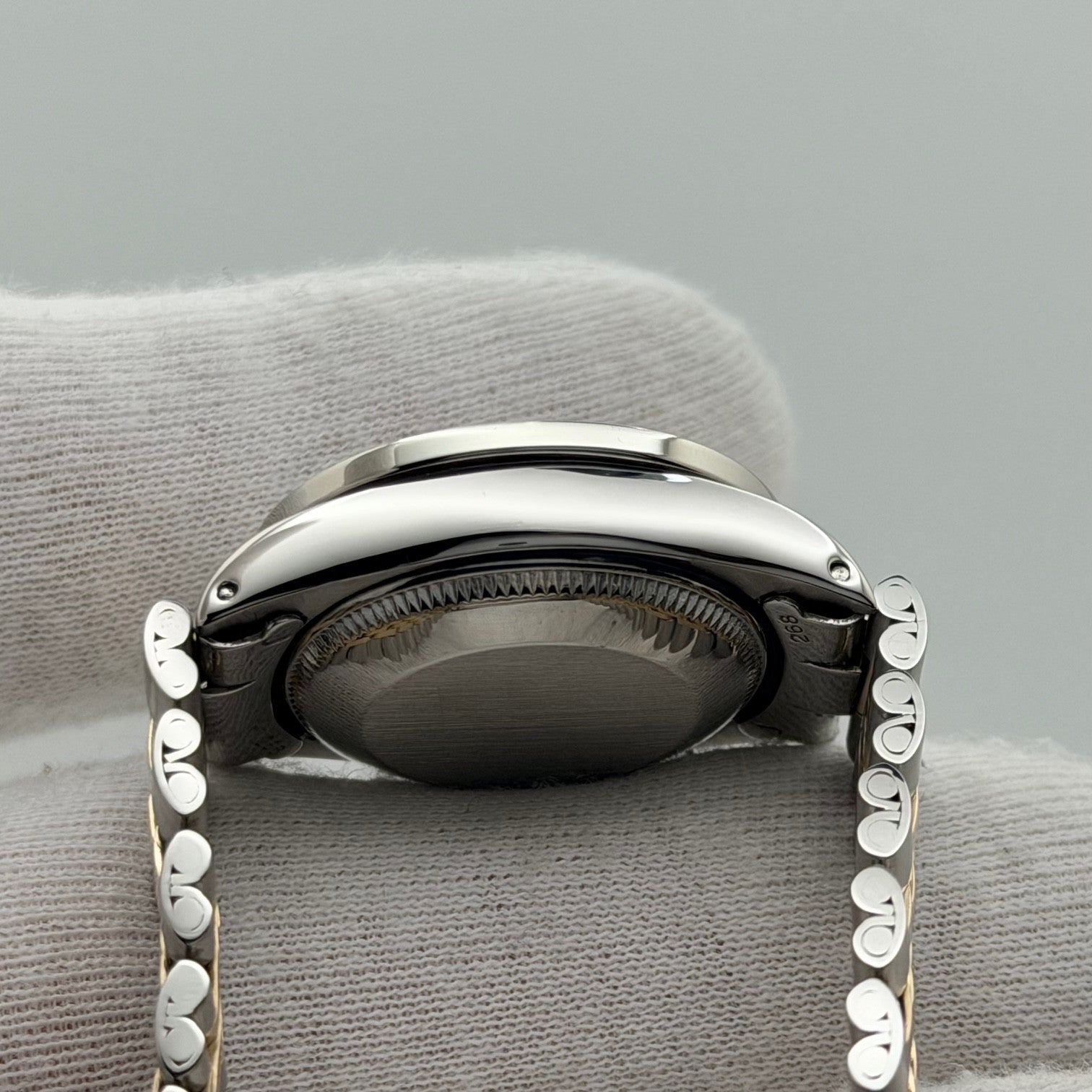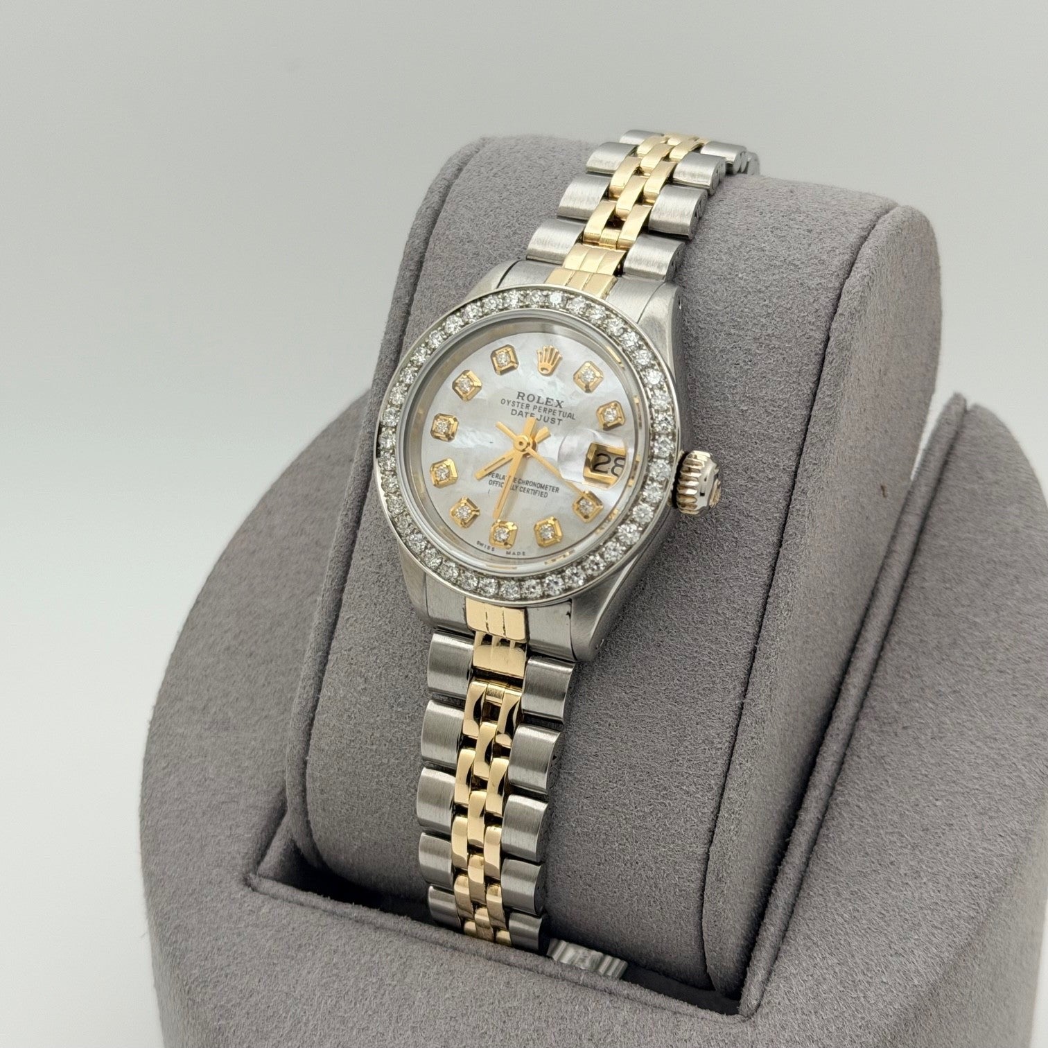 Rolex Datejust 6917 Mother of Pearl Diamond Dial Diamond Bezel Gold & Steel Rolex Sale! from 499500 /per This item is a recurring or deferred purchase. By continuing, I agree to the cancellation policy and authorize you to charge my payment method at the prices, frequency and dates listed on this page until my order is fulfilled or I cancel, if permitted. +1 (619) 232-1273 This item is currently on backorder but you can still purchase it now and we'll ship as soon as more become available. Style Number: 6917Serial: 308****Year: 1972 Model: Rolex Ladies Datejust Case Material: Stainless Steel Band: 14k Yellow Gold & Stainless Steel Jubilee Bezel: Custom Diamond Bezel Dial: Custom Mother Of Pearl with Diamond Markers Crystal: Sapphire Case Size: 26mm Includes: - Elegant Watch Box- Certified Appraisal - 1 Year WarrantySKU 20392 / 13810TJD080123