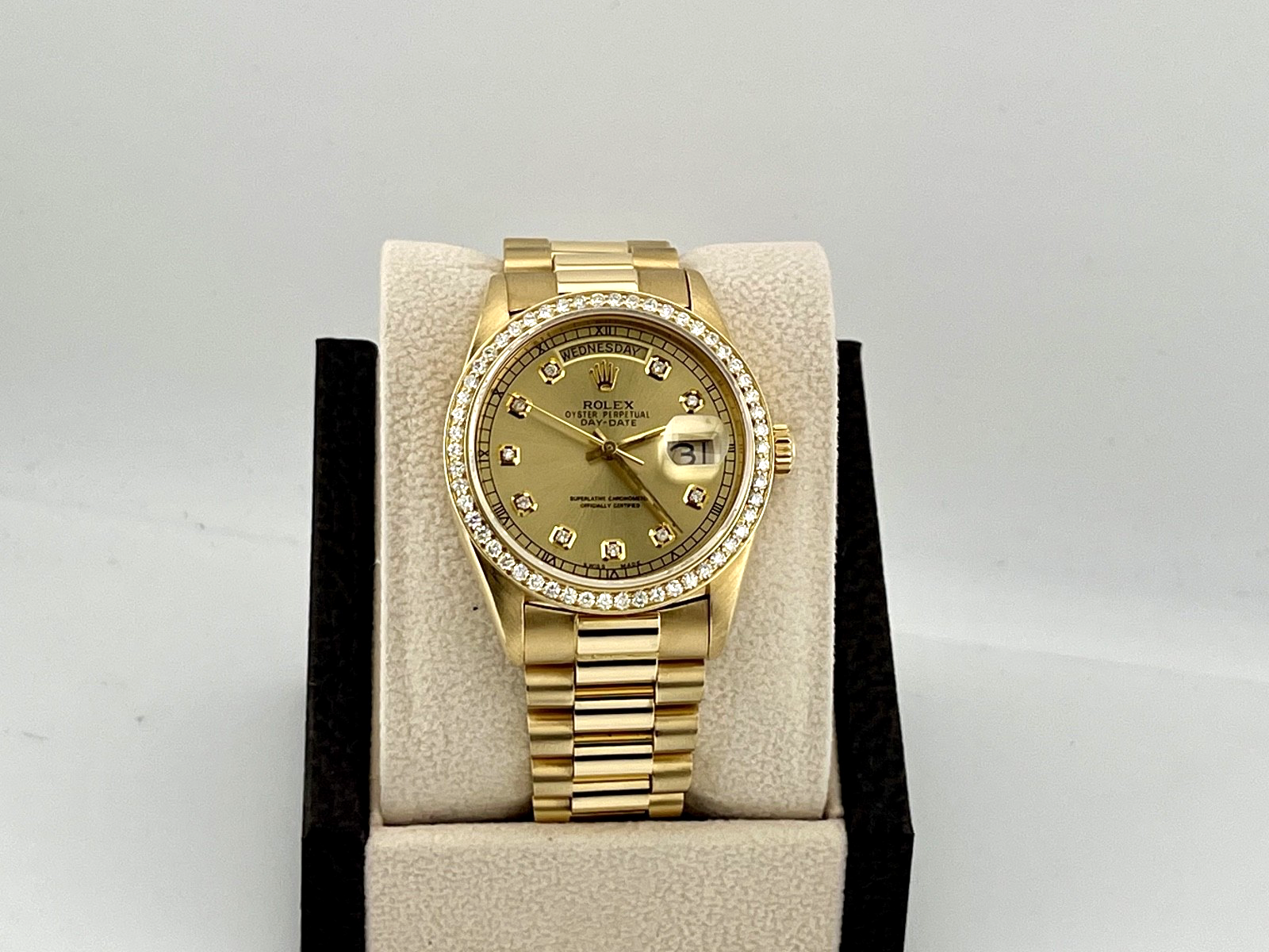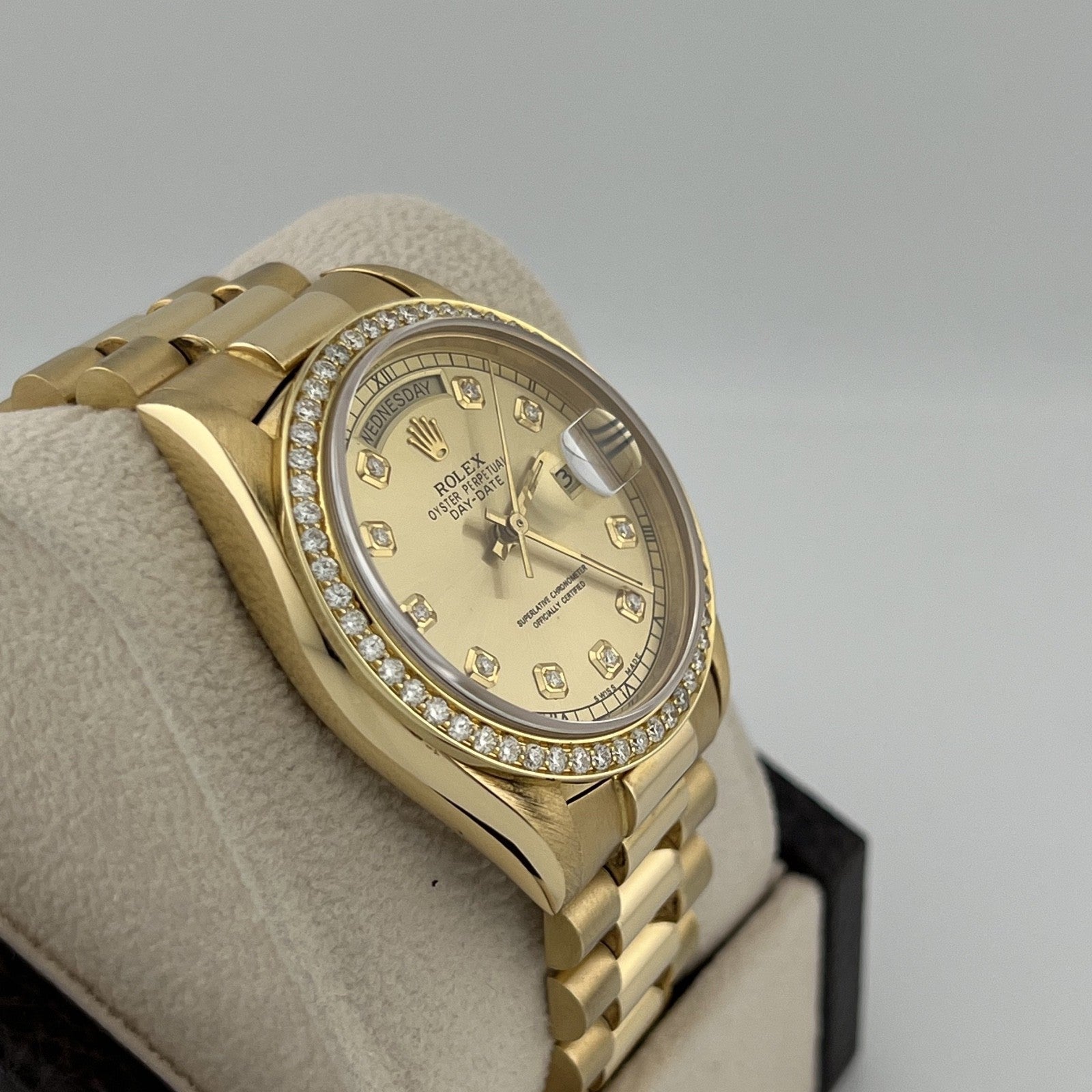Rolex Day Date President 18038 Champagne Diamond Dial 18K Yellow Gold 36mm